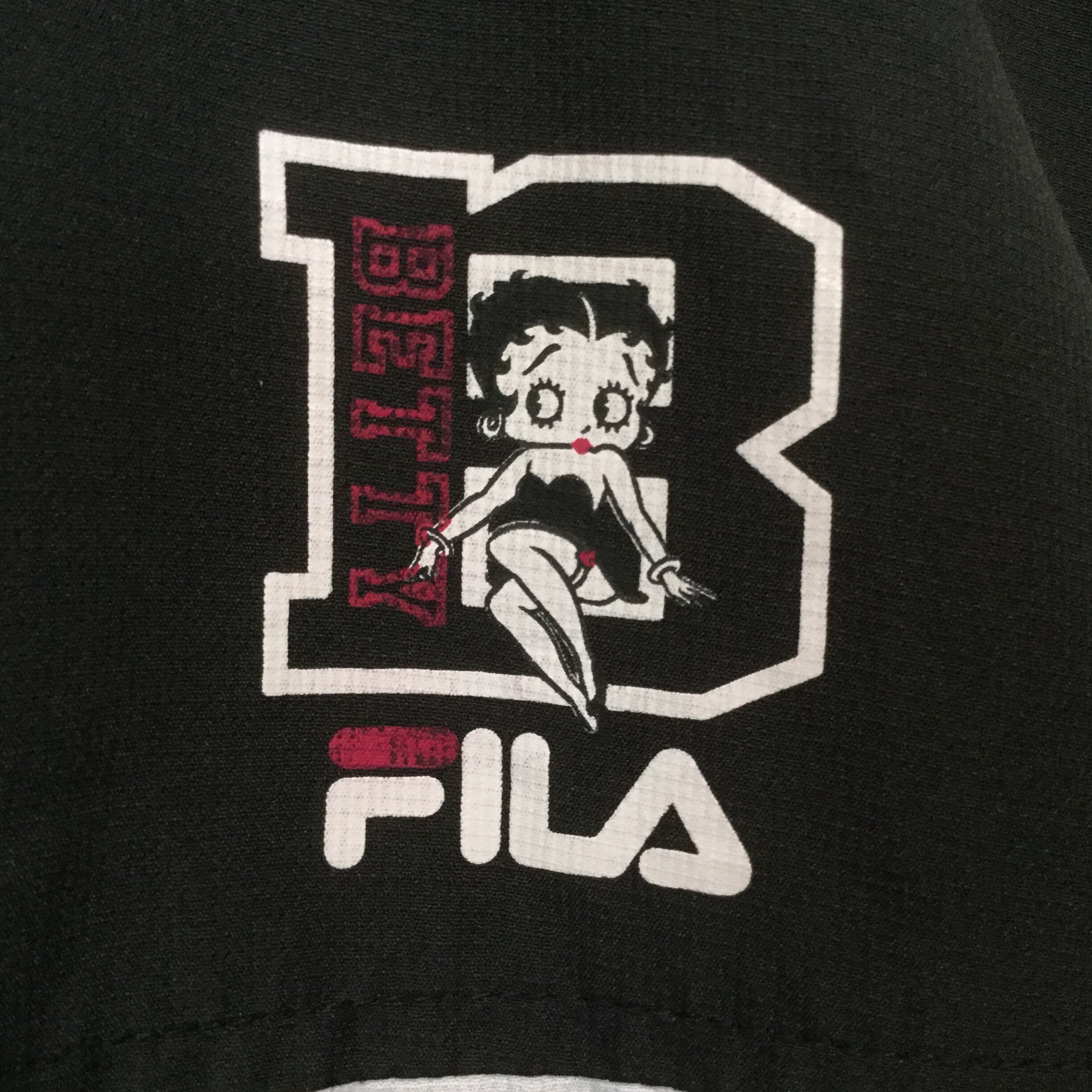 【フィラ ナイロンジャケット】 FILA ベティコラボ ビッグサイズ 4XL相当 白黒 FILA 古着 [240929-015]