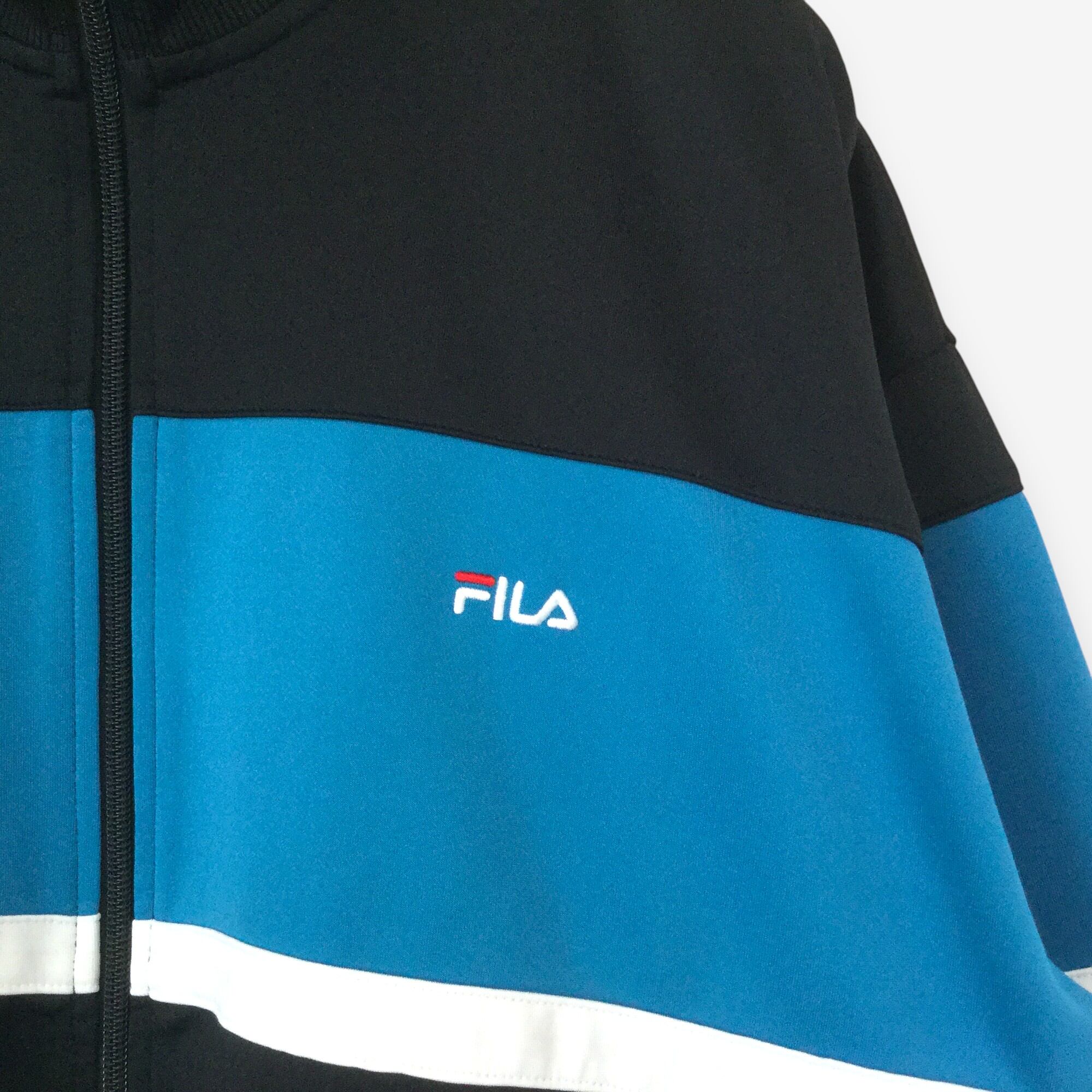 【フィラ ジャージ】 背面ロゴ刺繍 ロゴチャーム M 黒 FILA 古着 [240929-019]
