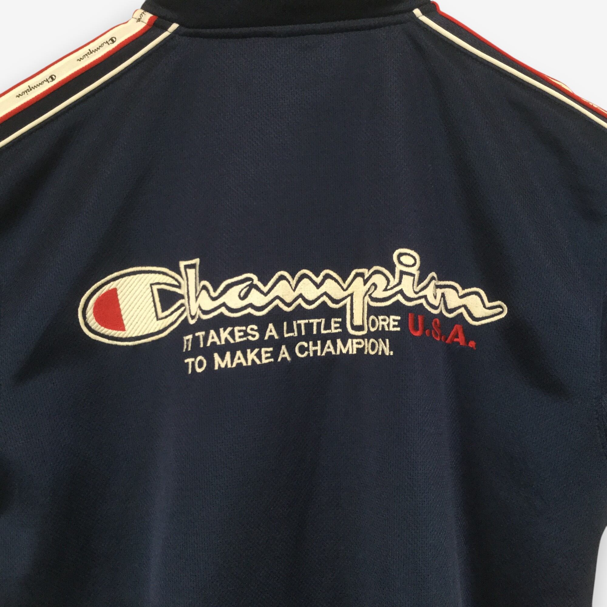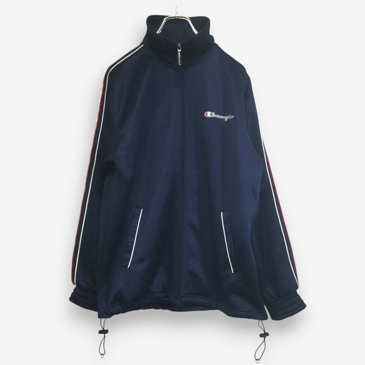 90s 三色タグ 海外サイズ サイドライン ロゴ刺繍 背面ビッグロゴ刺繍 トラックジャケット ネイビー Champion