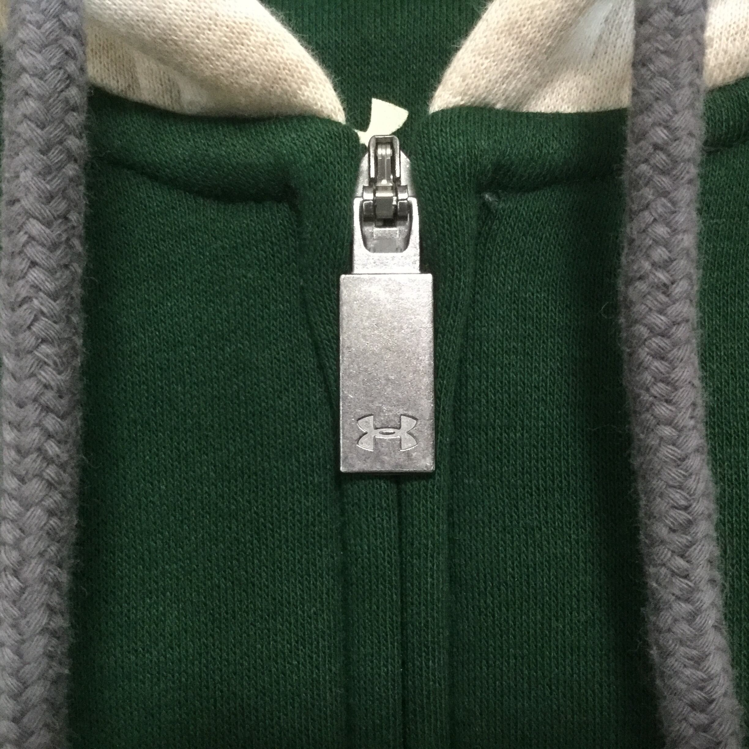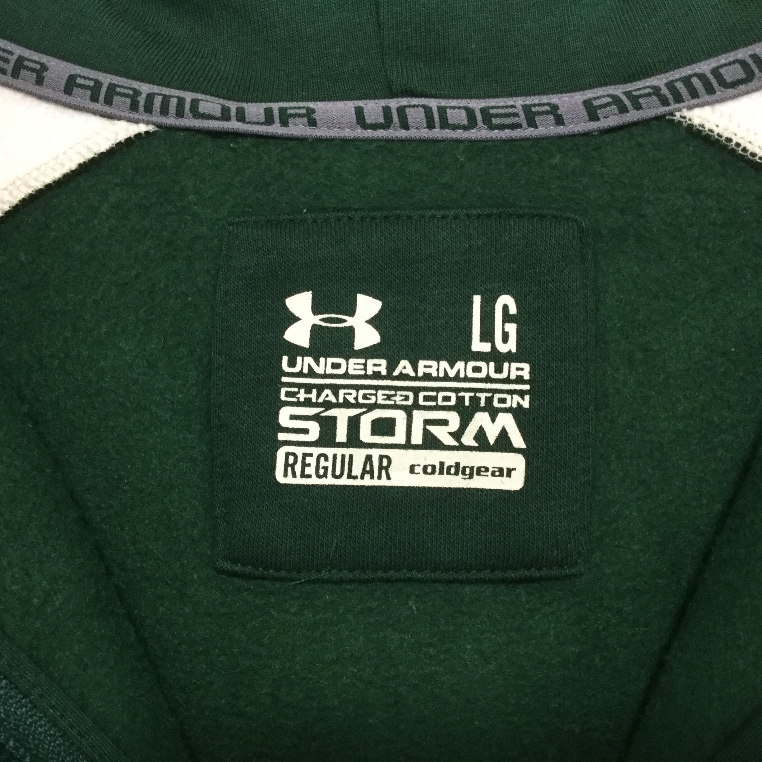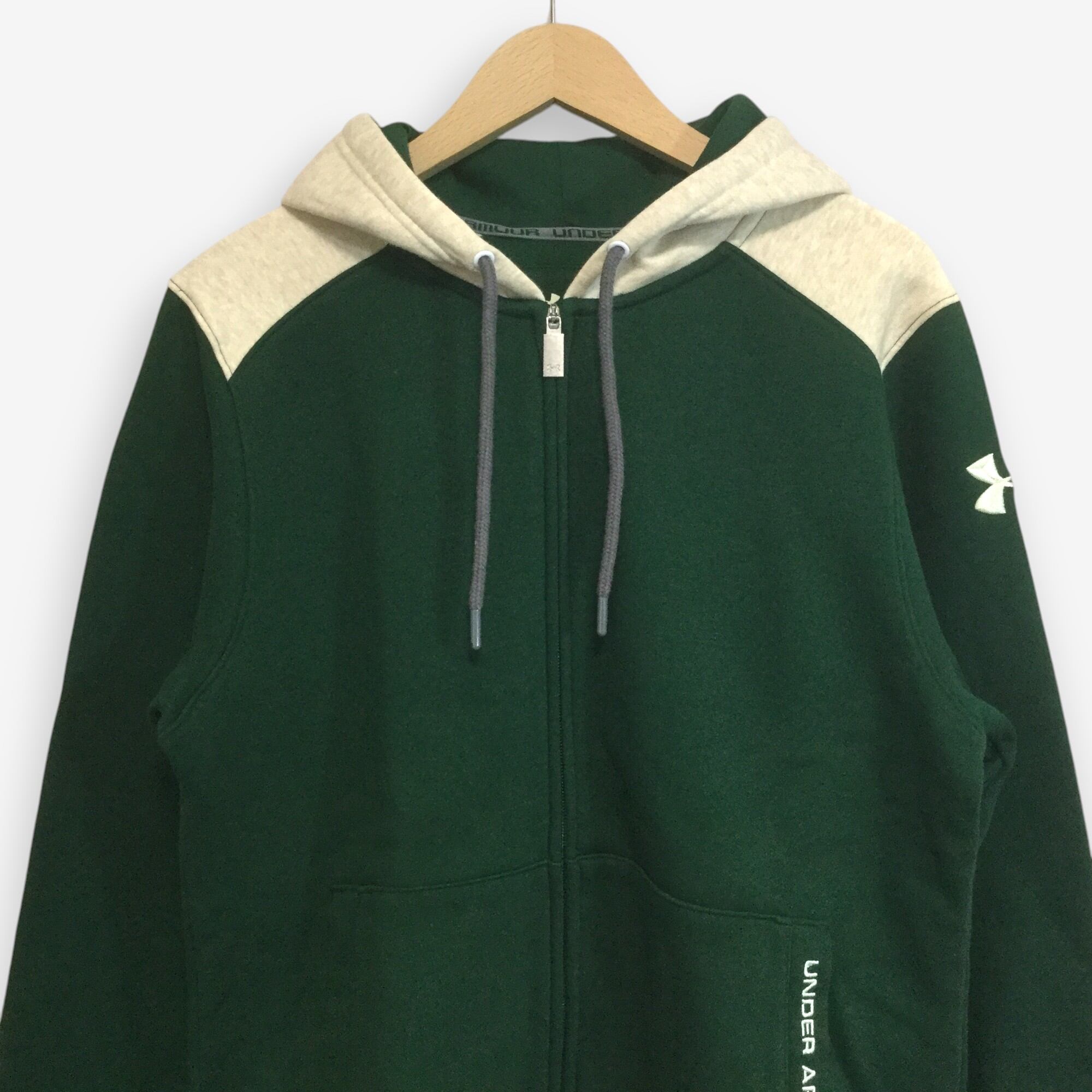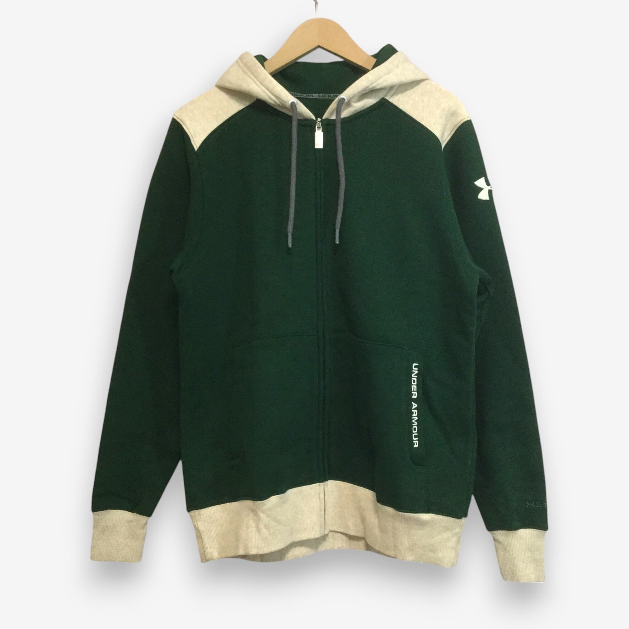 【アンダーアーマー 長袖フルジップロゴパーカー】ロゴ刺繍 ラグラン 裏起毛 プルオーバー L 緑 UNDER ARMOUR 古着 [250126-002]