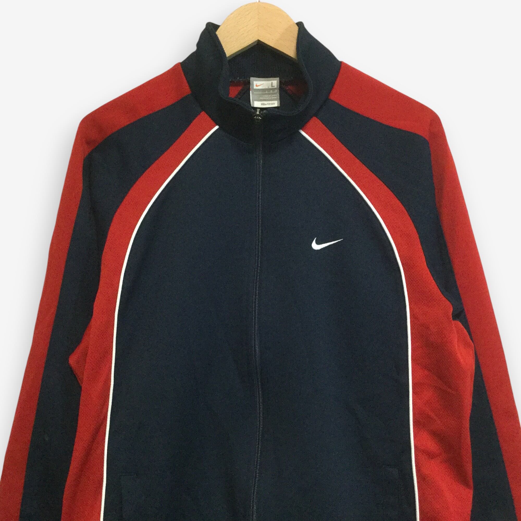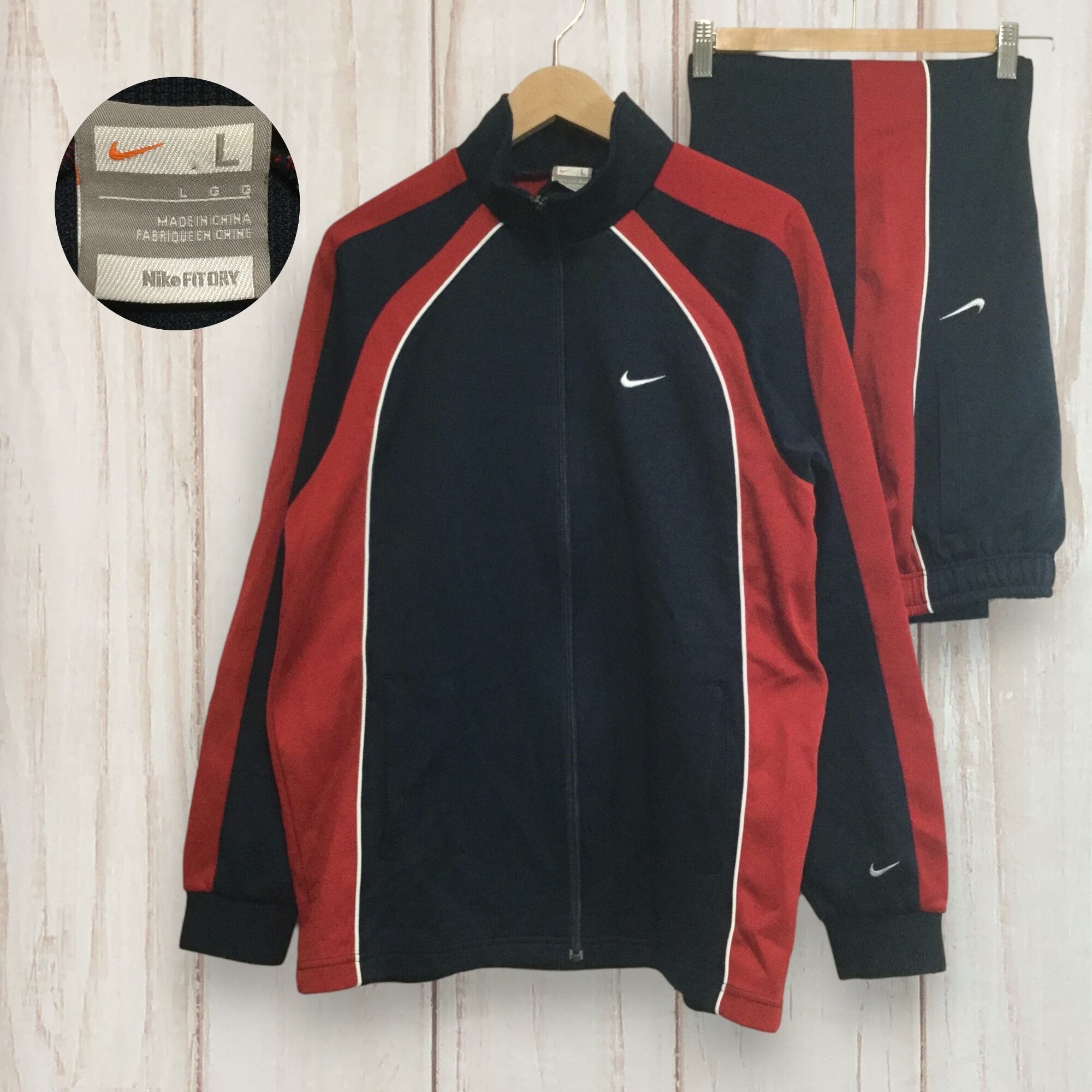 【ナイキ レトロ ジャージセットアップ】00s ロゴ刺繍 袖ロゴ L ネイビー NIKE 古着 [250208-004]
