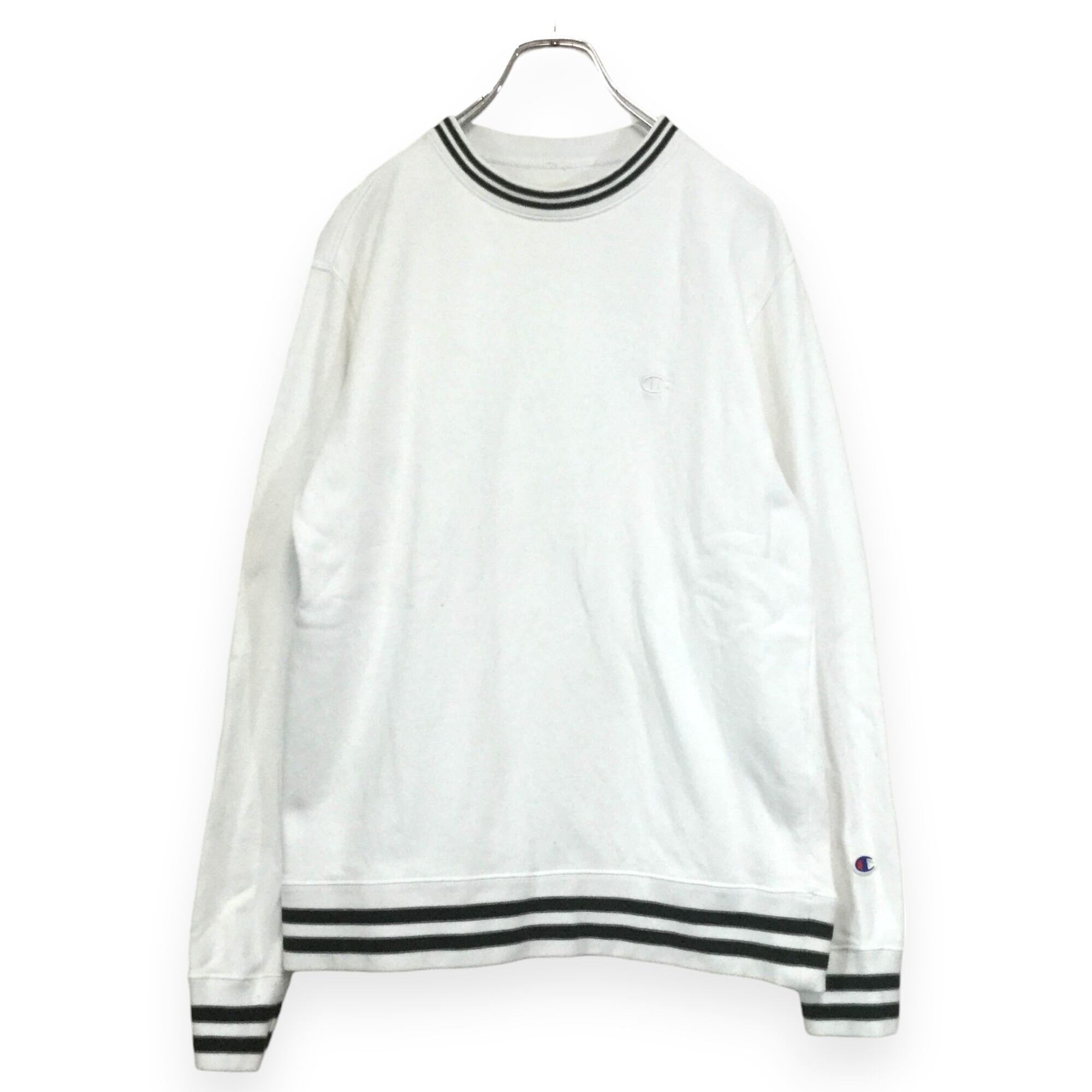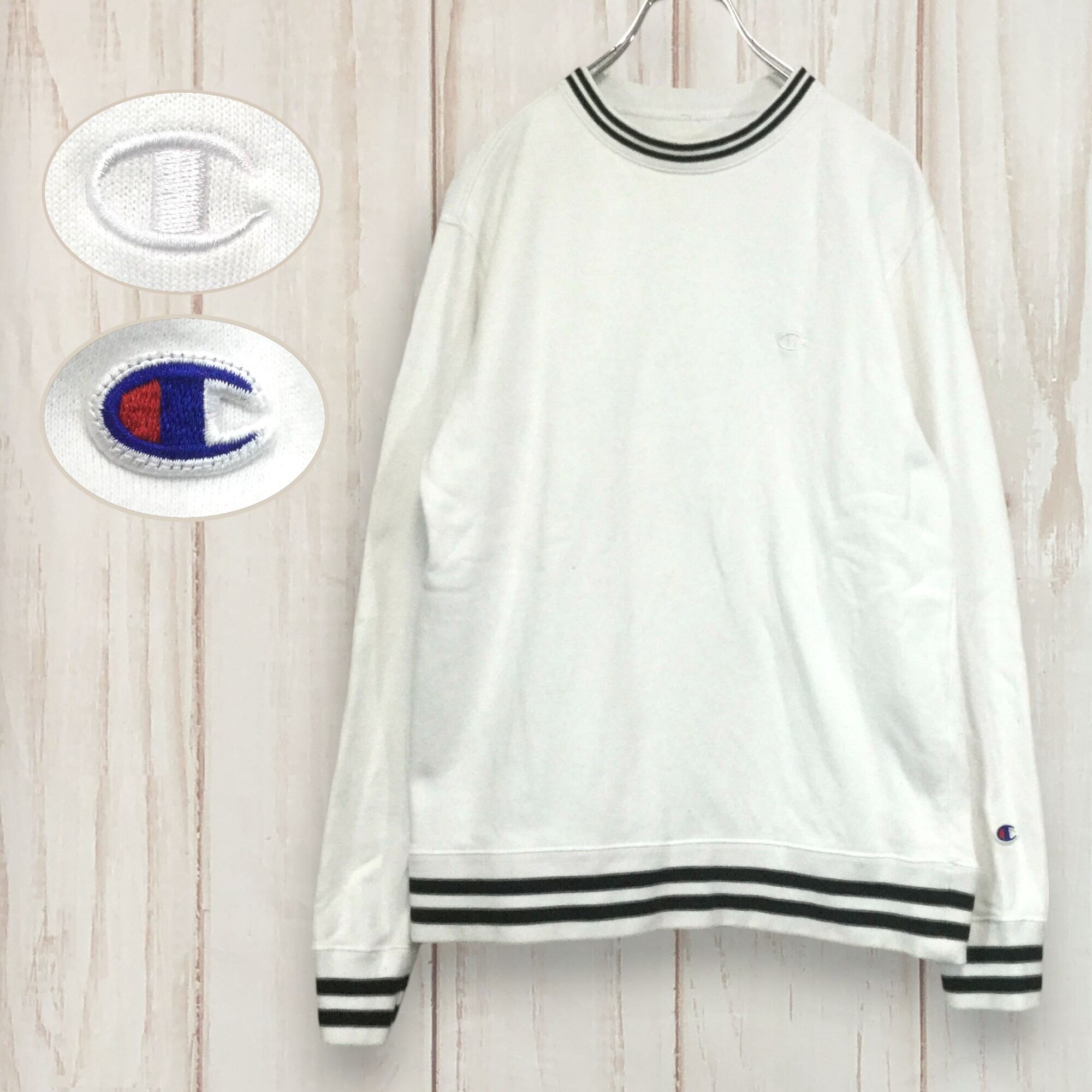 ロゴ刺繍 袖ロゴ リブライン トレーナー プルオーバー 白 Champion