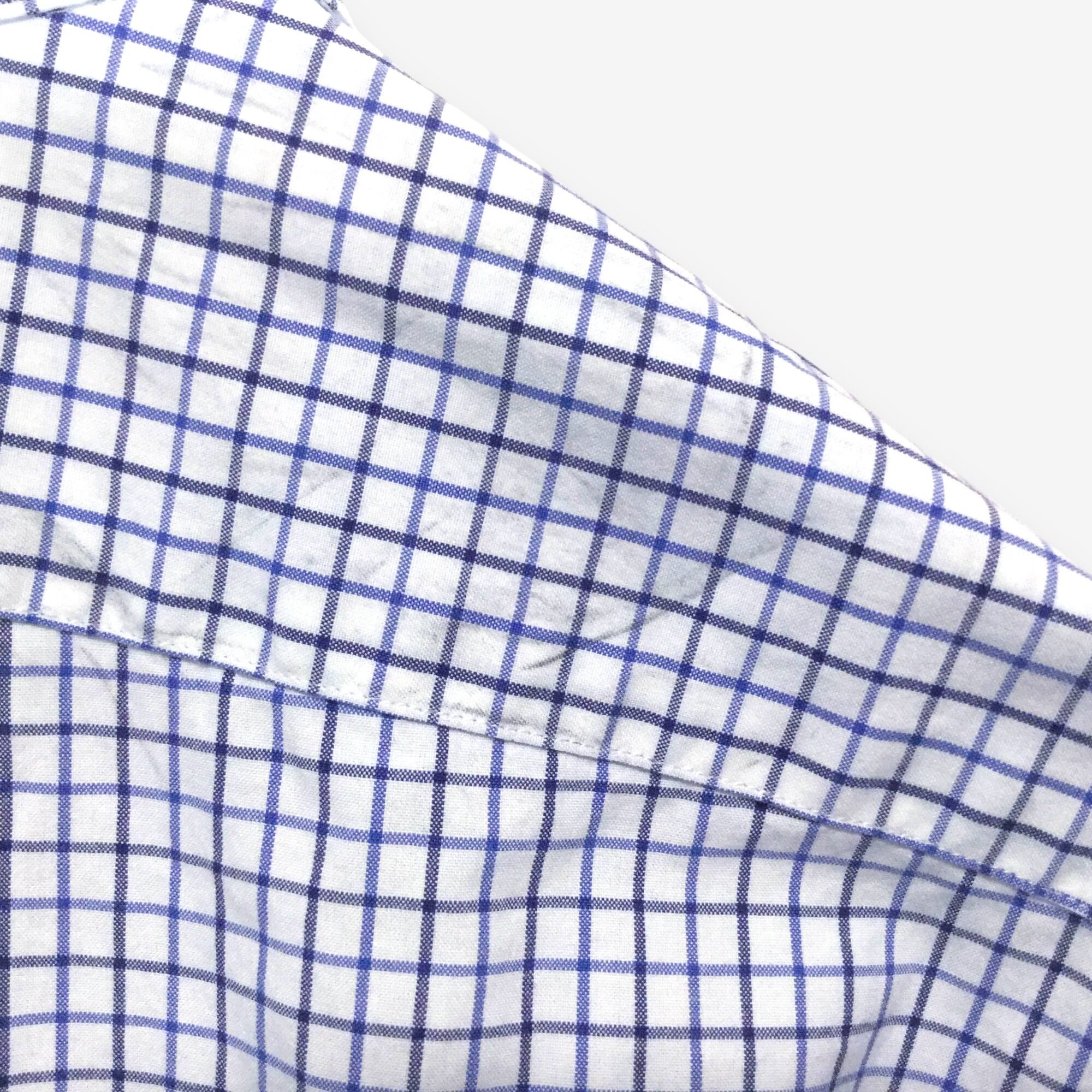 【ポロラルフローレン ロゴ刺繍 長袖シャツ】 ビッグサイズ チェック XL 白 POLO RALPH LAUREN 古着 [241019-018]