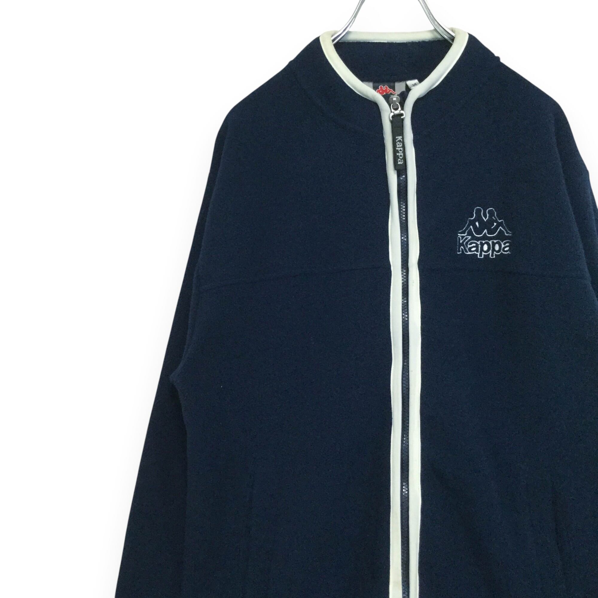 【90s-00s カッパ 背面ビッグロゴ フリースジャケット】ヴィンテージ ロゴ刺繍 M ネイビー Kappa 古着 [220124-022]