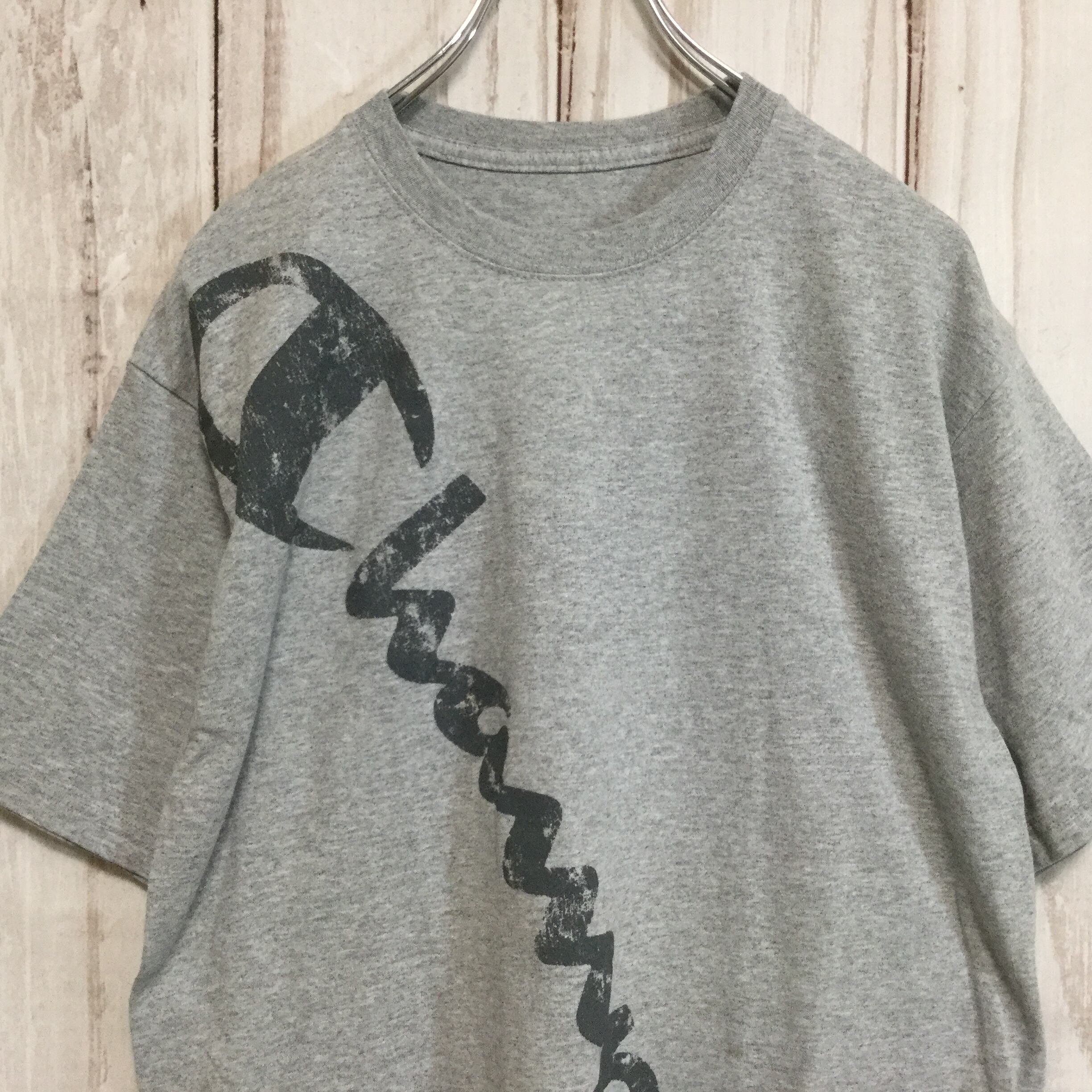 【チャンピオン 半袖ビッグロゴTシャツ】袖ロゴ刺繡 M グレー Champion 古着 [220420-036]