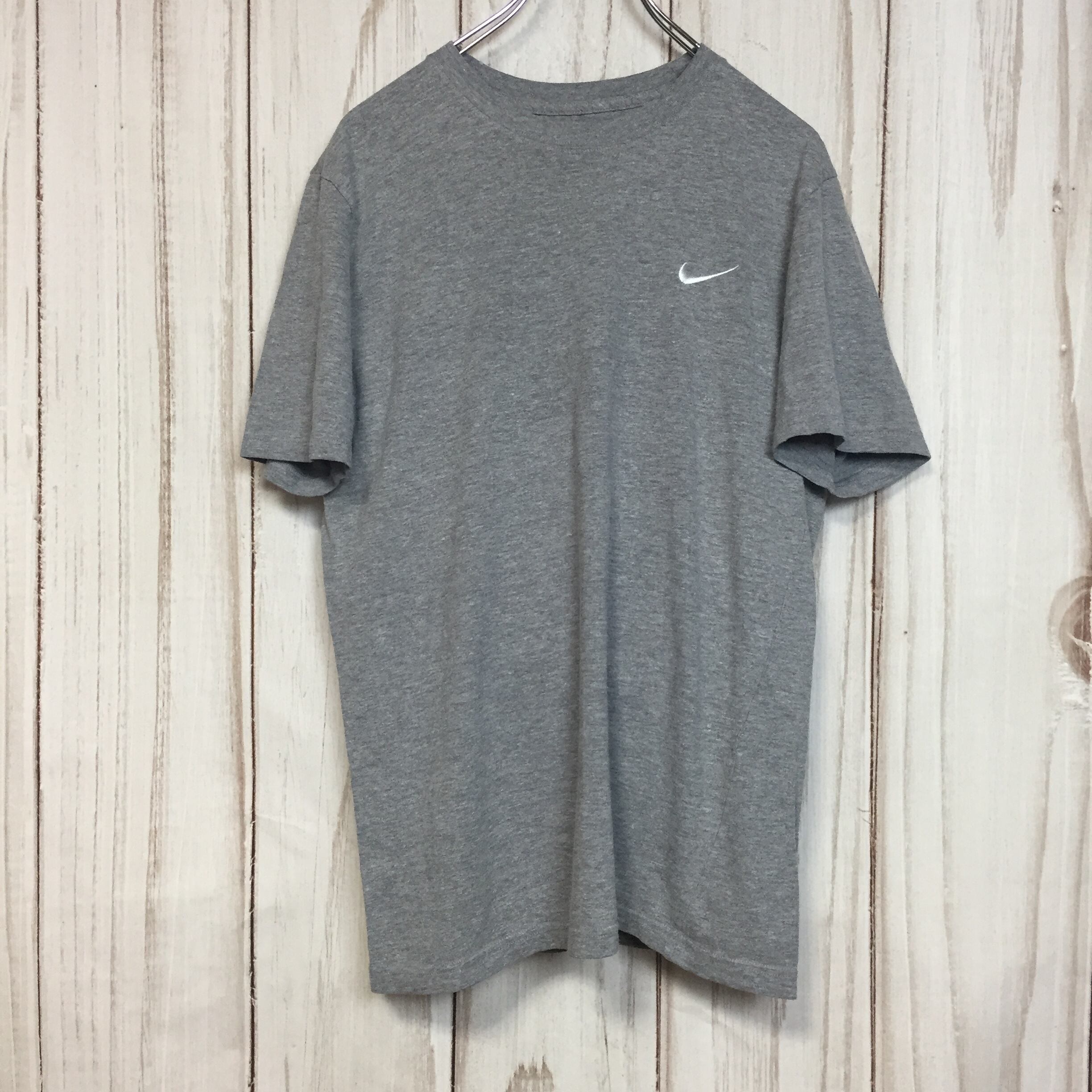 【ナイキ 半袖ロゴTシャツ】ロゴ刺繡 スウッシュ 定番 M グレー NIKE 古着 [220420-055]