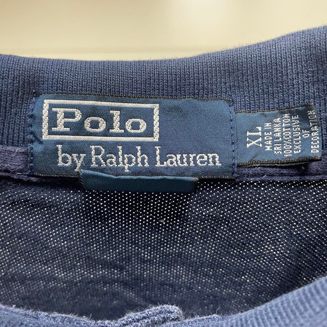 【ポロラルフローレン 長袖ポロシャツ】 エンブレム刺繍 ナンバーワッペン ビッグサイズ XL ネイビー 古着 [220809-002]