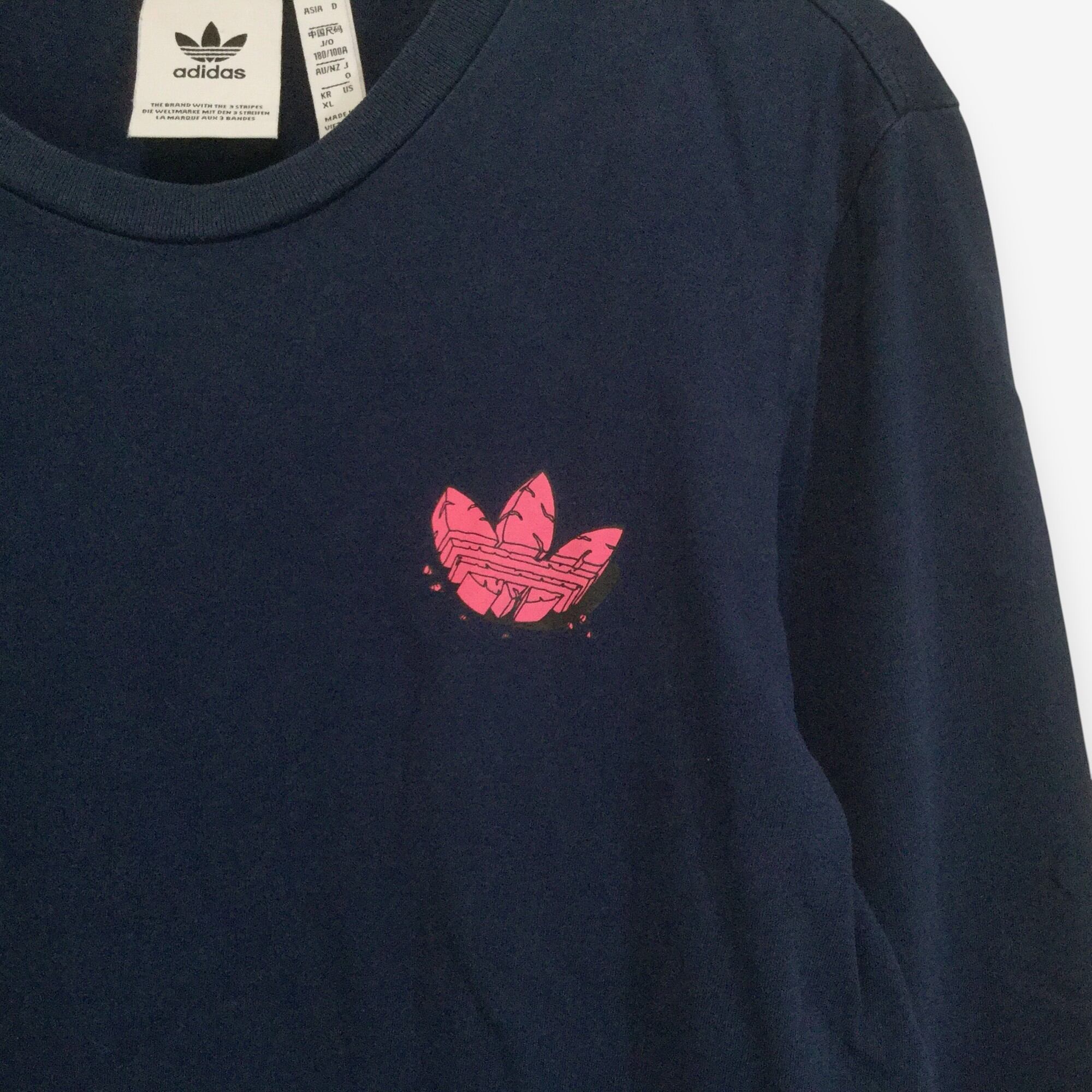 変わりロゴプリント 袖ロゴ ネイビー adidas