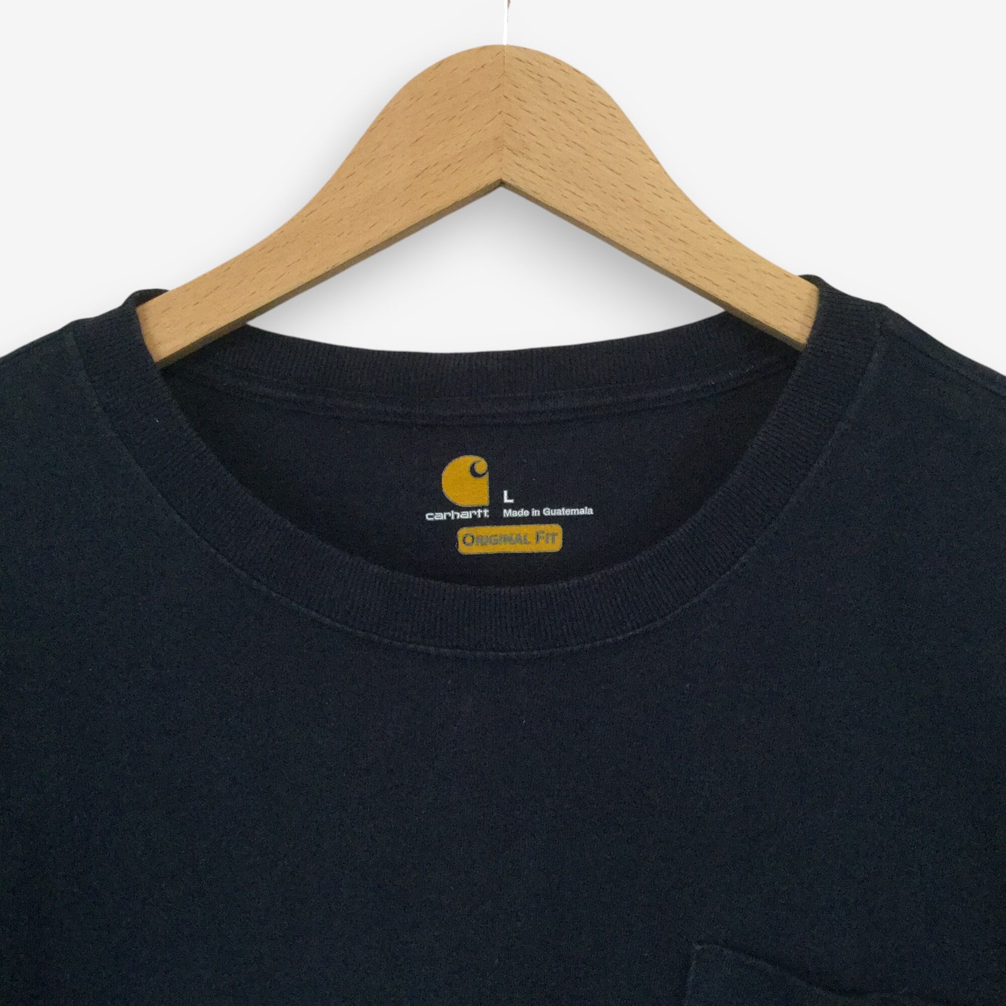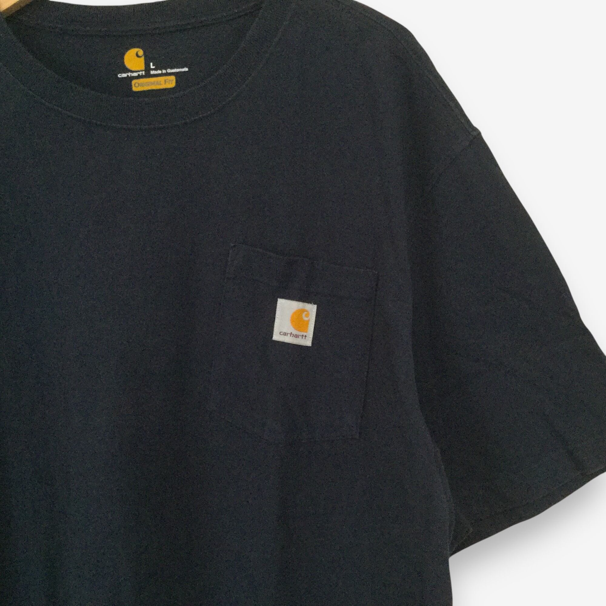 【カーハート 半袖ロゴTシャツ】 海外サイズ ポケット 2XL相当 ネイビー Carhartt 古着 [250414-032]