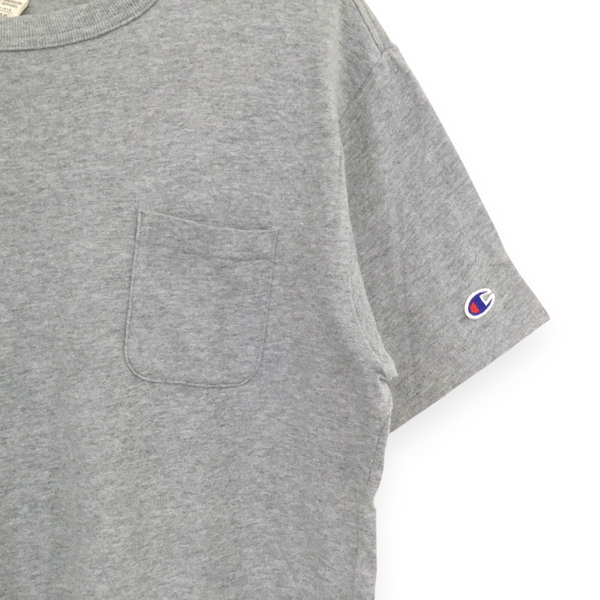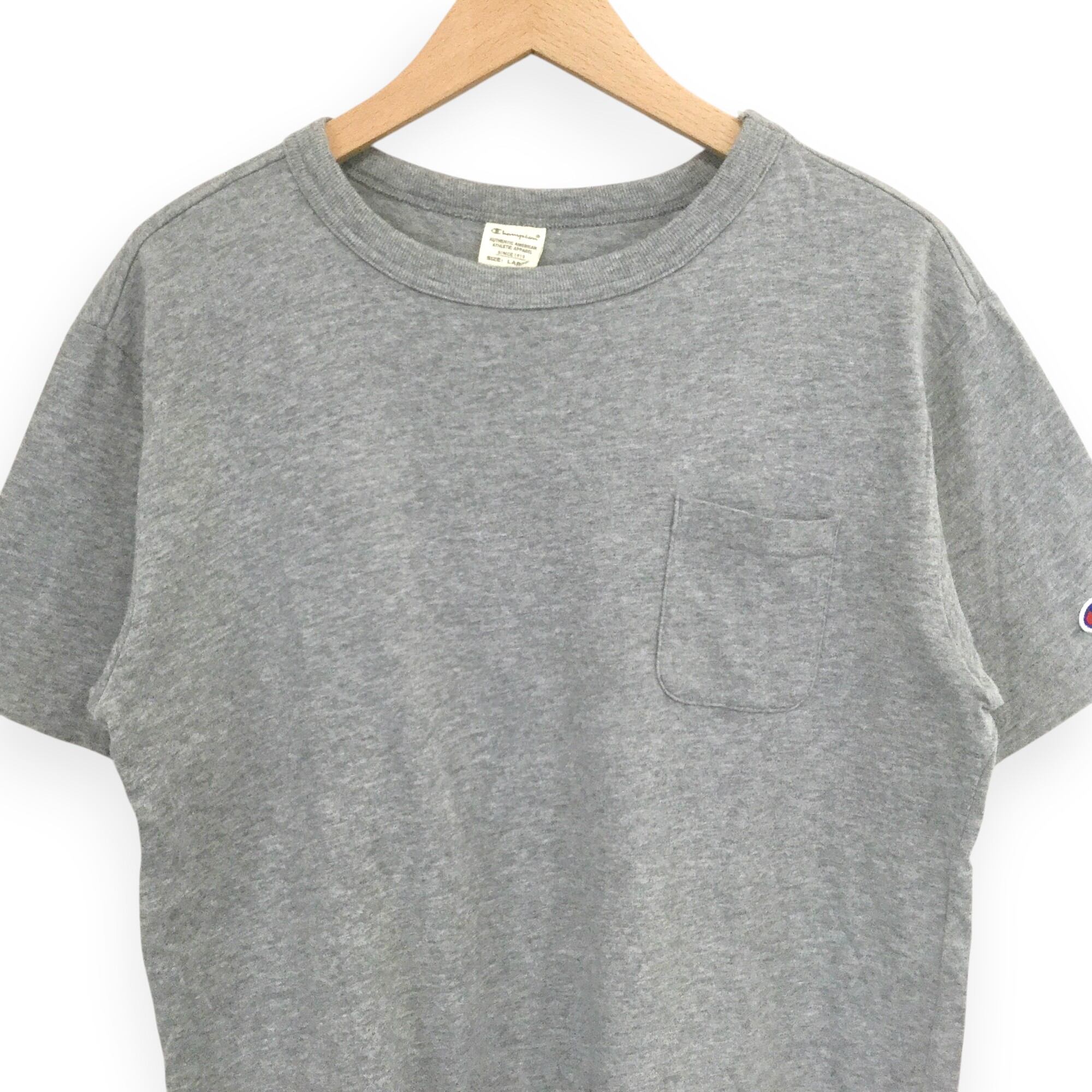 【チャンピオン 半袖Tシャツ】 ポケット 袖ロゴ L グレー Champion 古着 メンズ [250506-025]