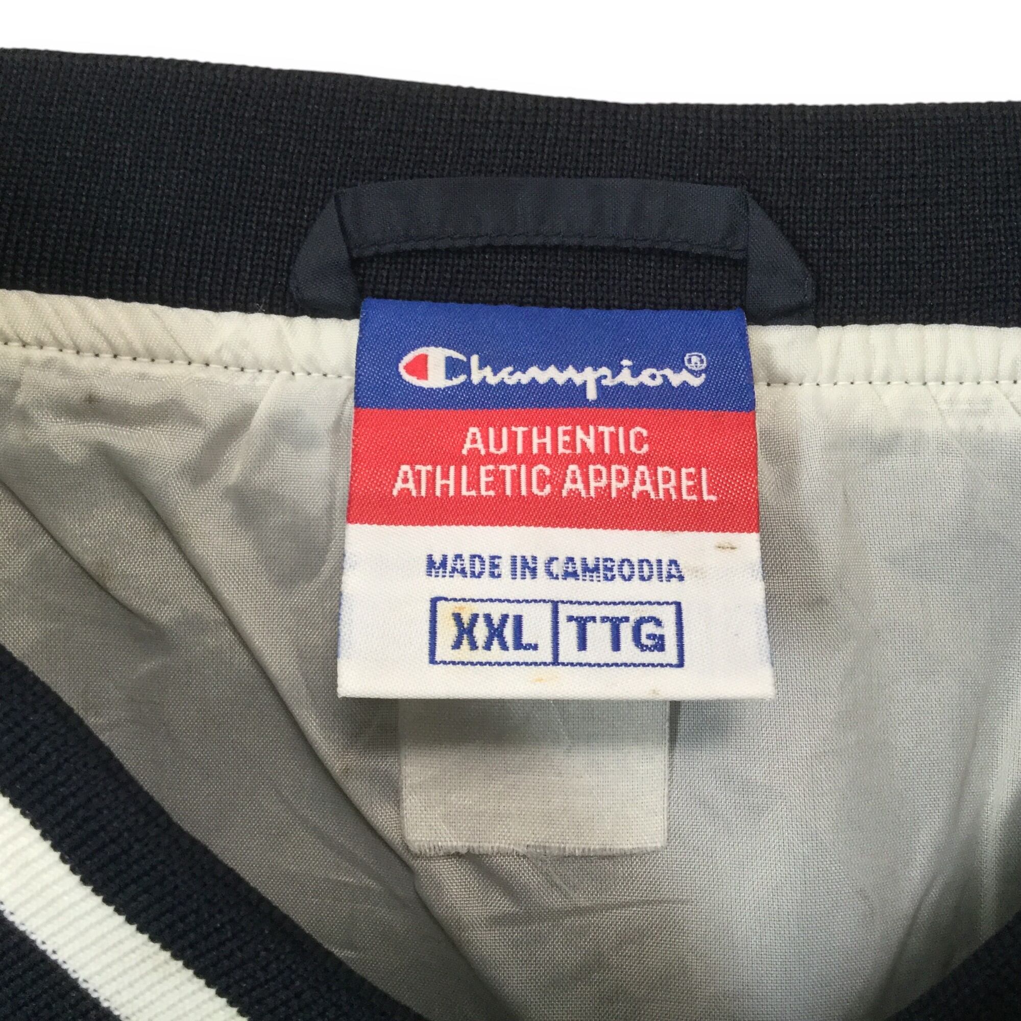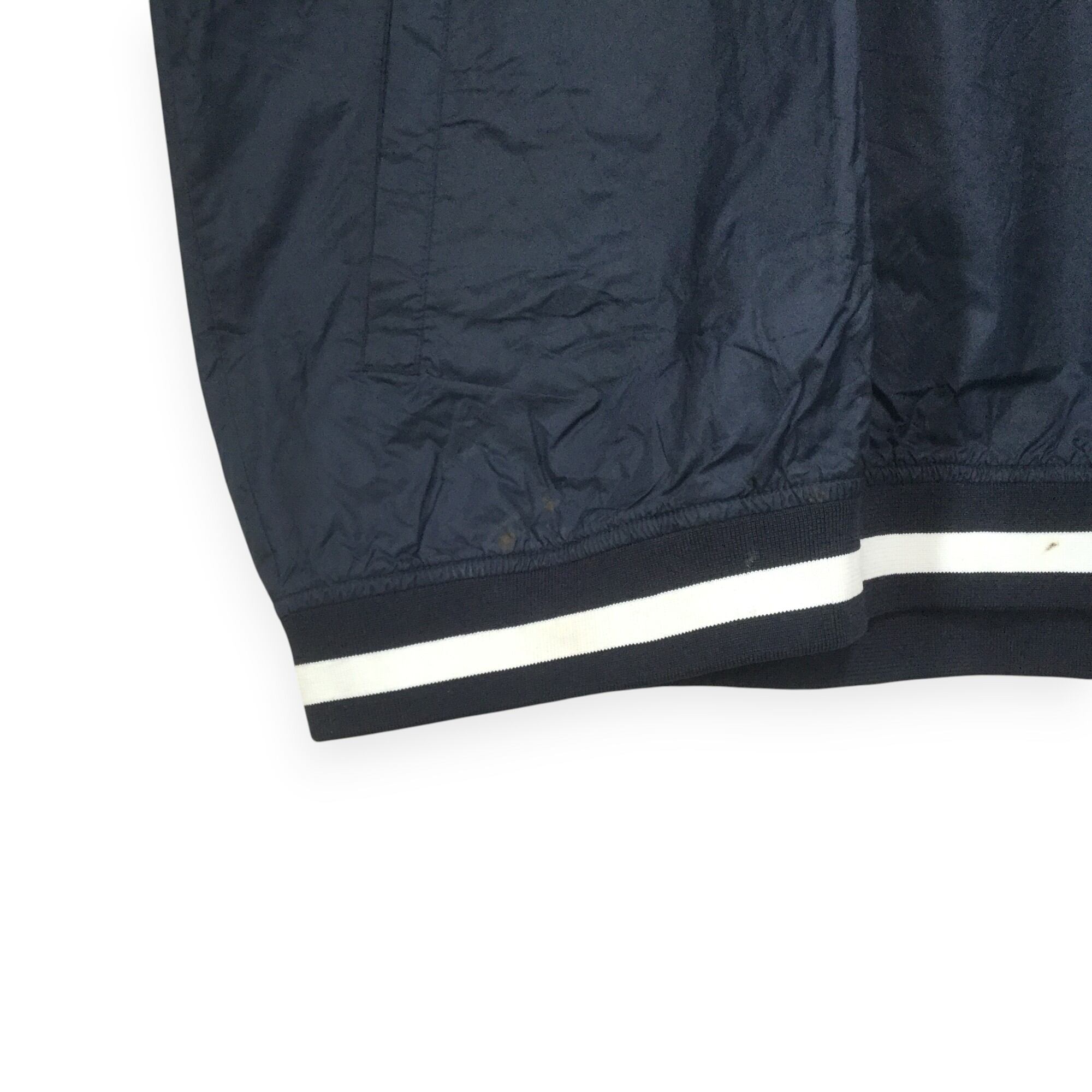 【チャンピオン ナイロンプルオーバー】 Vネック 超ビッグサイズ 3XL相当 ネイビー Champion 古着 メンズ [241110-006]