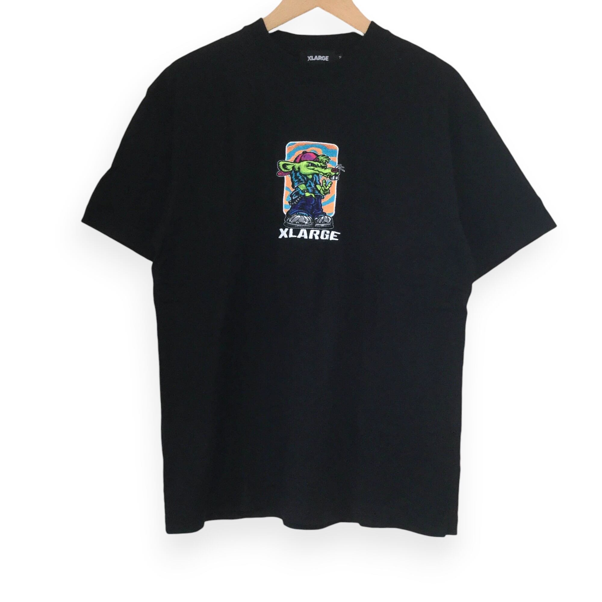 【エクストララージ 半袖Tシャツ】 刺繍 キャラクターデザイン M 黒 X-LARGE 古着 メンズ [250530-007]