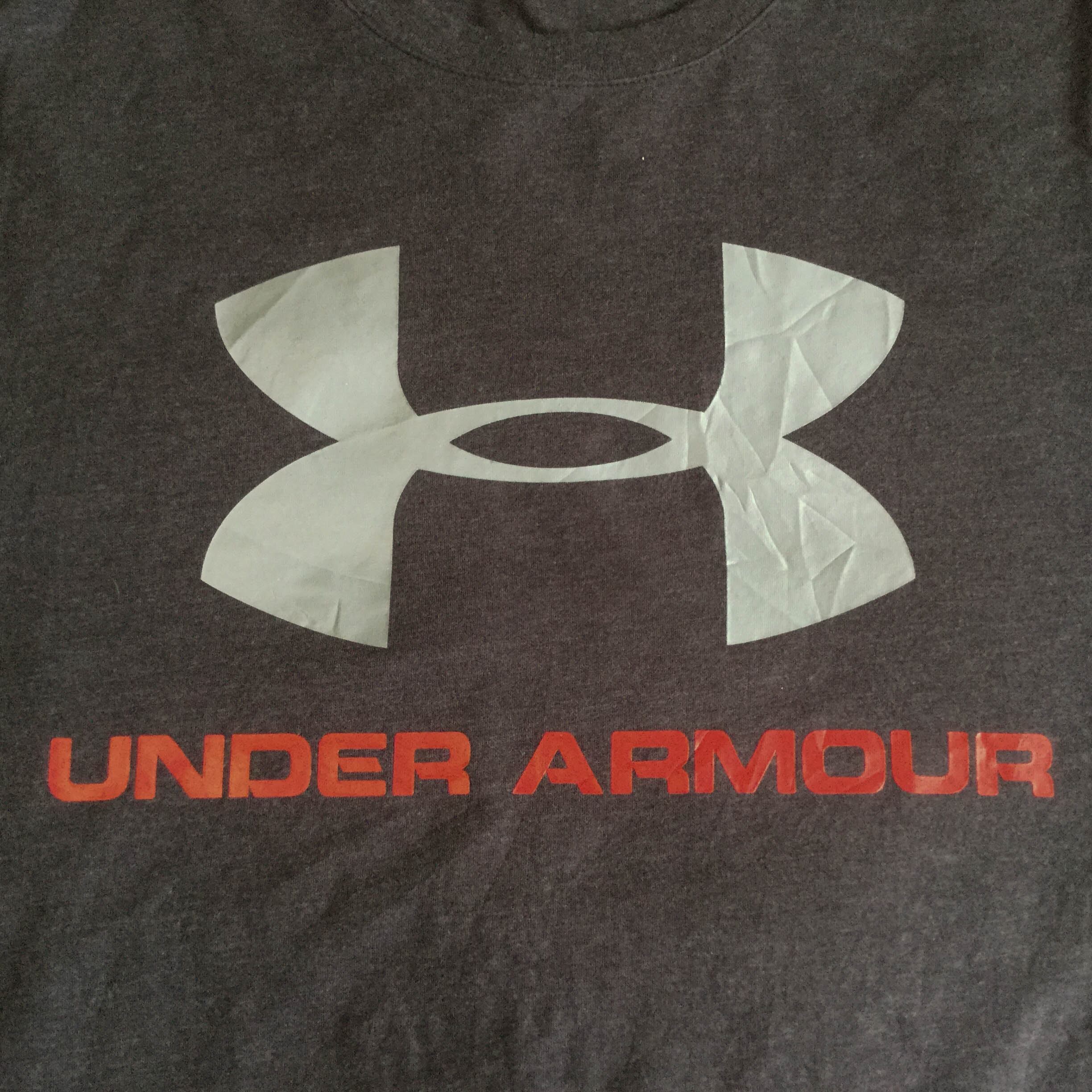 【アンダーアーマー 半袖ビッグロゴTシャツ】 ビッグサイズ 2XL相当 グレー UNDER ARMOUR 古着 メンズ[250530-018]