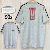 【アディダス 90s 背面プリント 半袖ロゴTシャツ】 スリーライン L グレー adidas 古着 メンズ [250627-002]