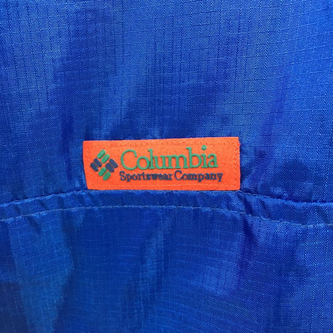 古着 Columbia コロンビア ナイロンジャケット L ジャマイカ製 撥水加工 ブルー グリーン レッド アウトドア 90s [220208-001]