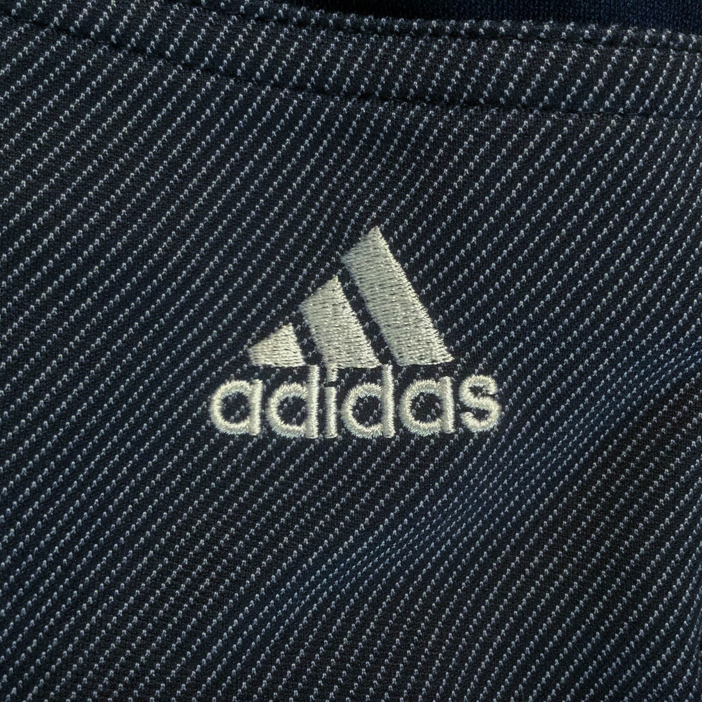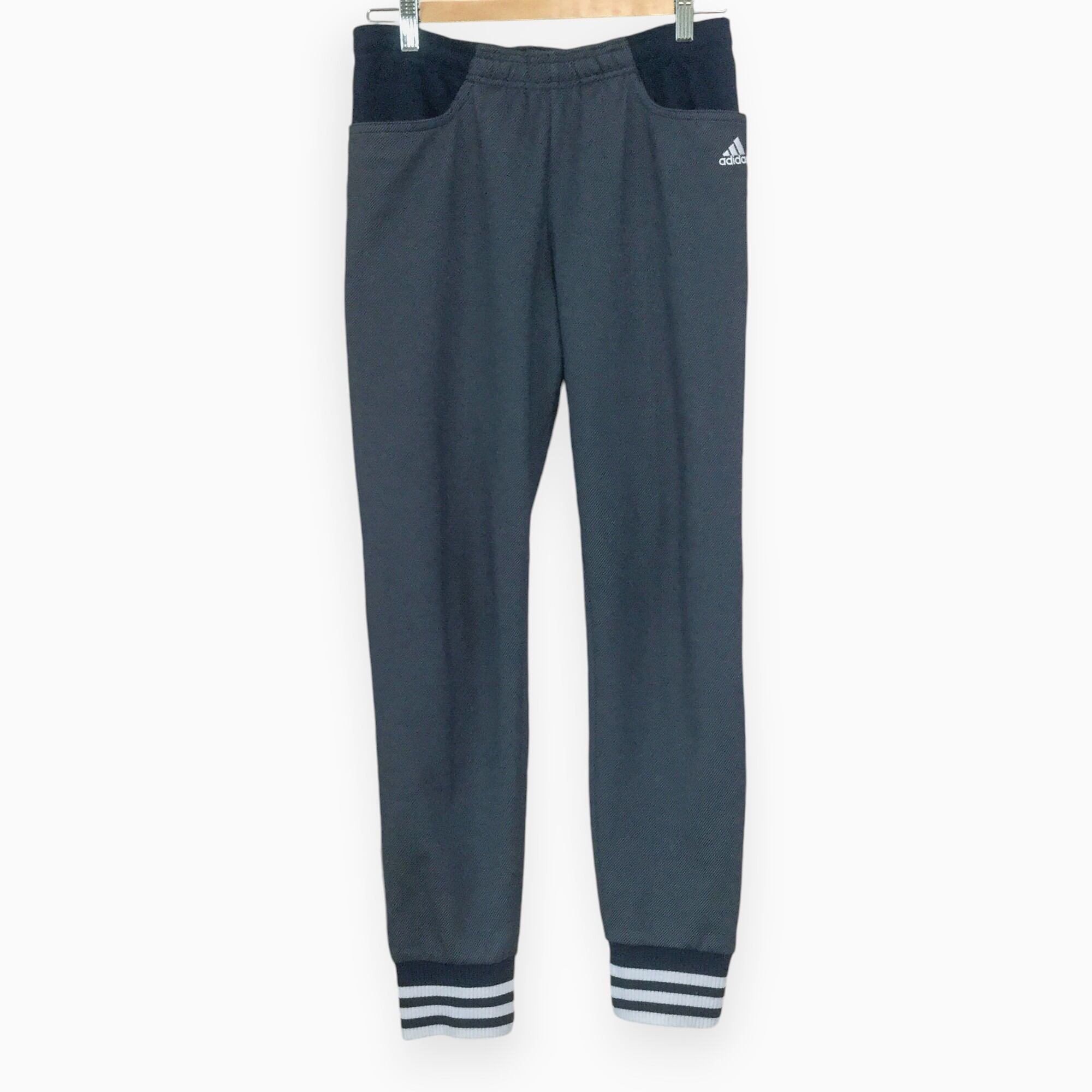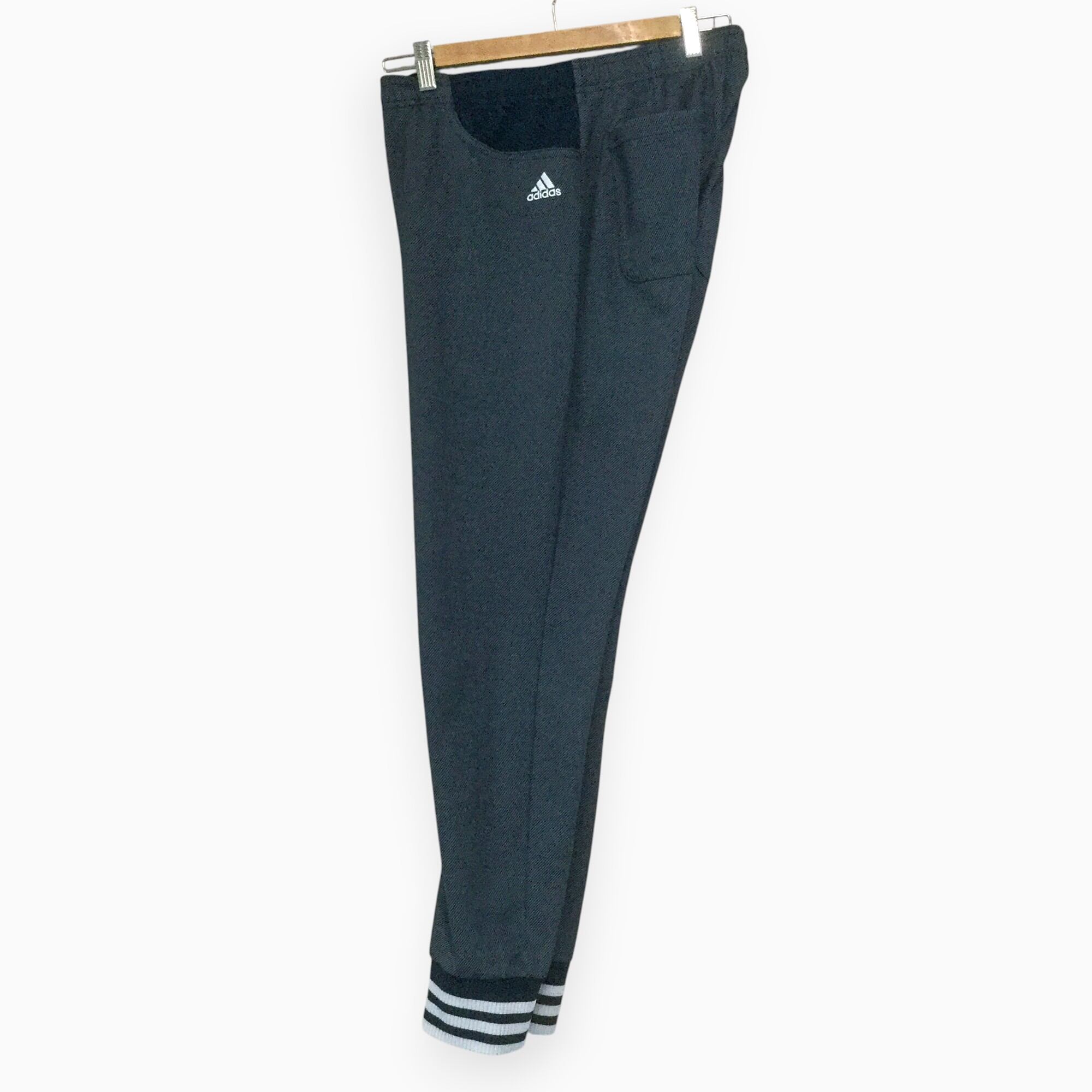 古着 アディダス adidas ジャージ下 ロゴ刺繍 スリーライン ドローコード レディース 3ストライプ L ネイビー