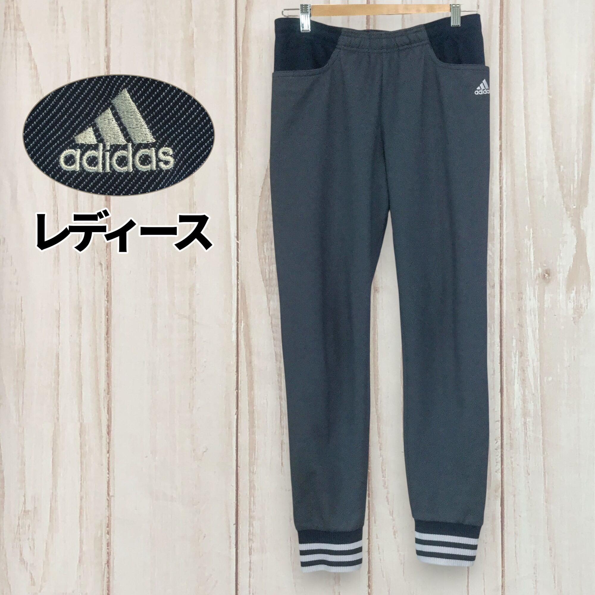 アディダス adidas ネイビー ジャージ下 レディース L 3ストライプ スポーツ ロゴ刺繍 スリーライン ドローコード