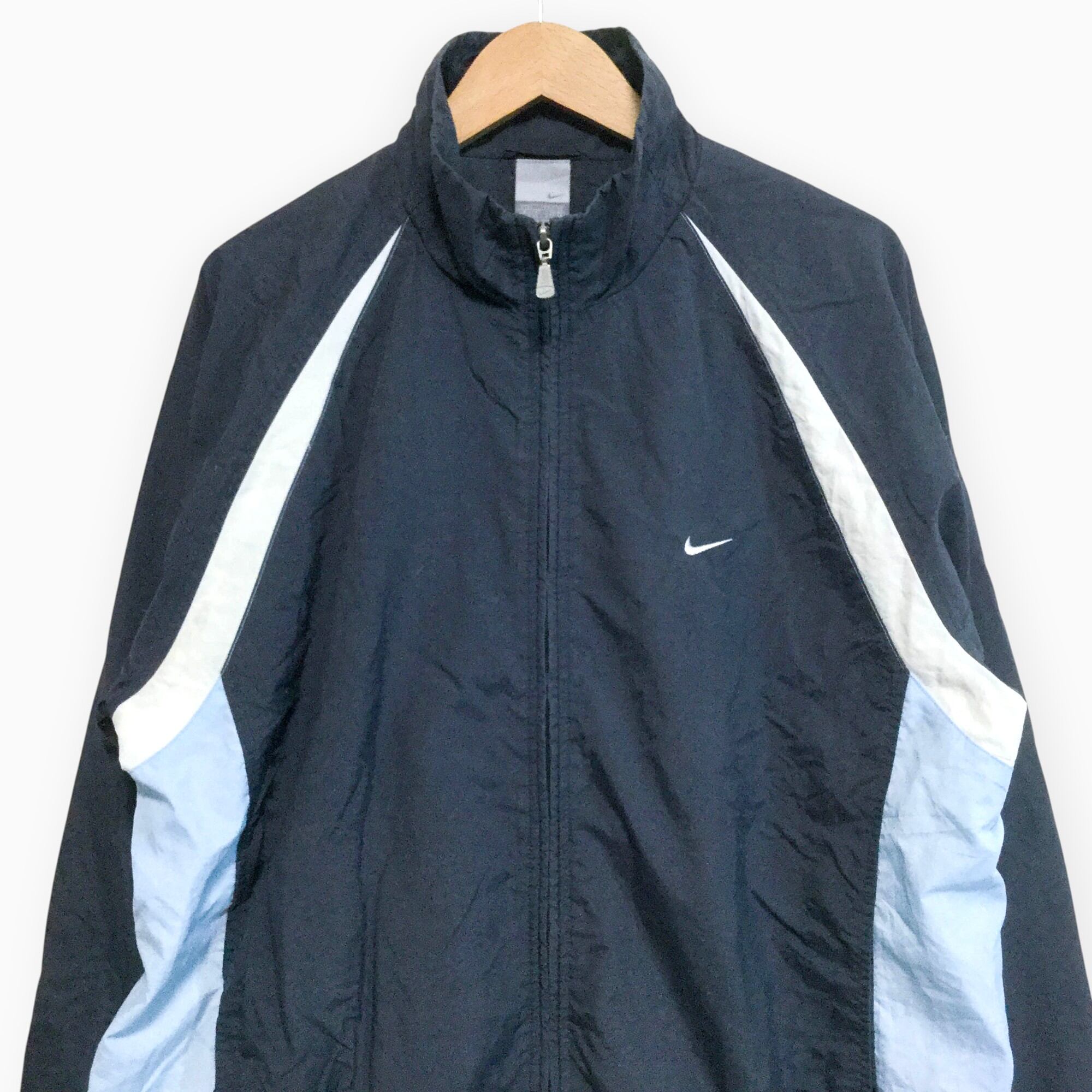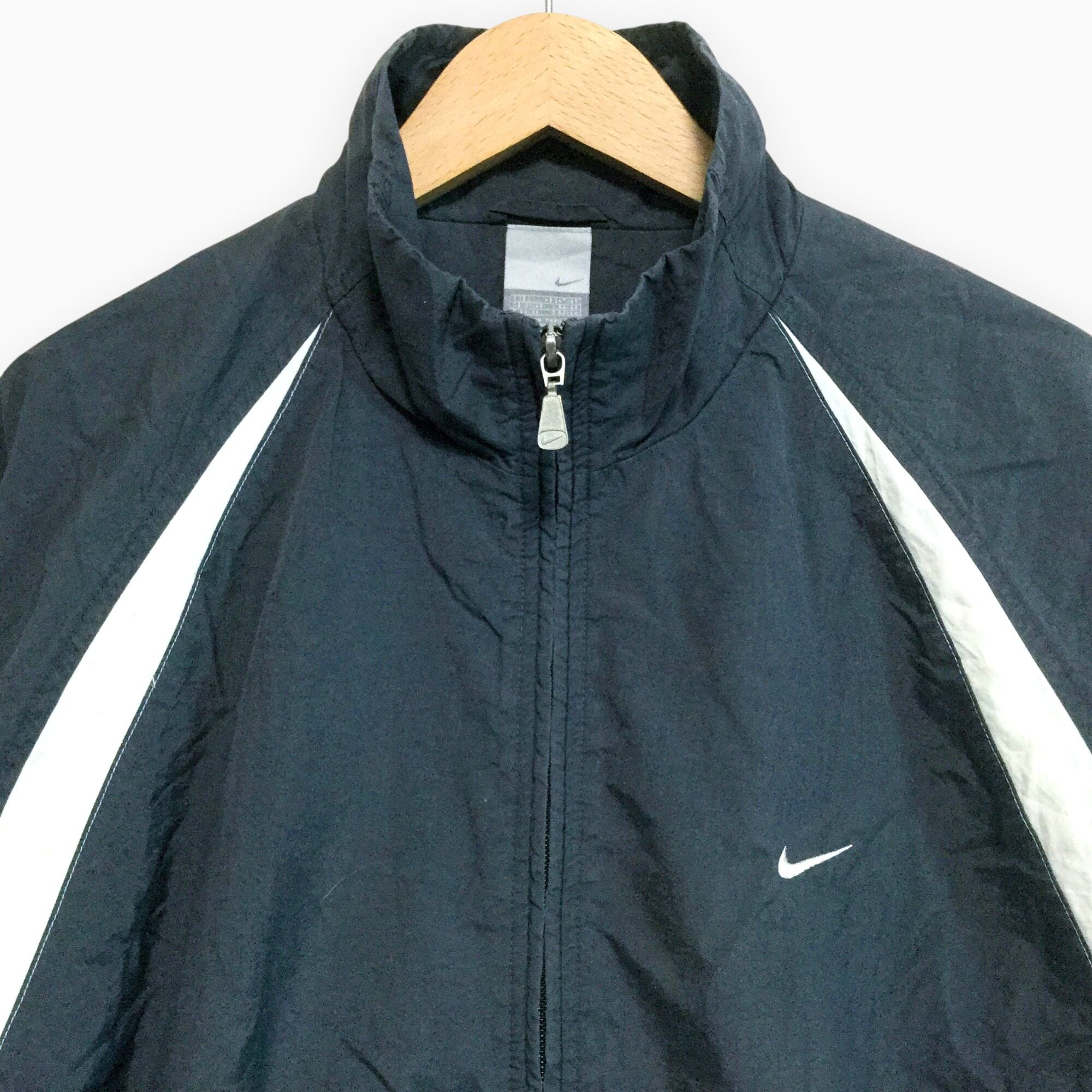 ナイキ NIKE ナイロンジャケット 00s 刺繍スウッシュ ワンポイント ラグラン トラックジャケット 切替デザイン バイカラー スポーツウェア DRI-FIT フルジップ ロゴチャーム ビッグサイズ 古着