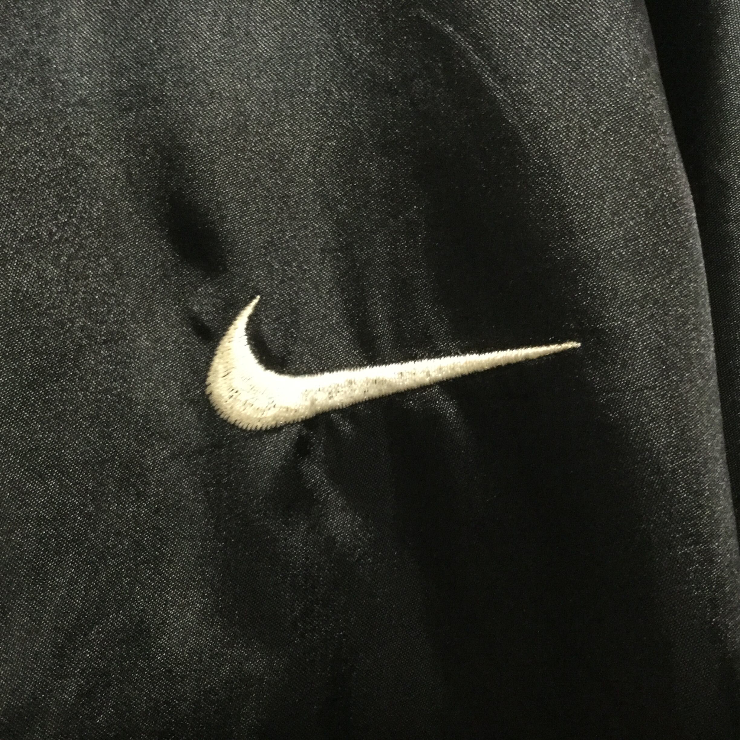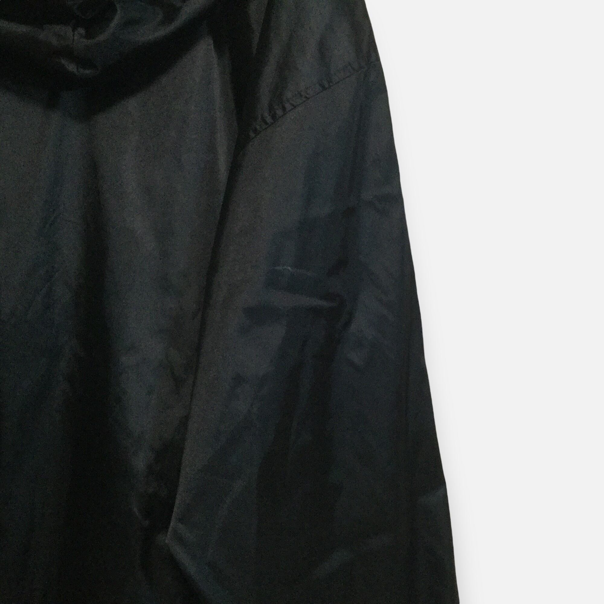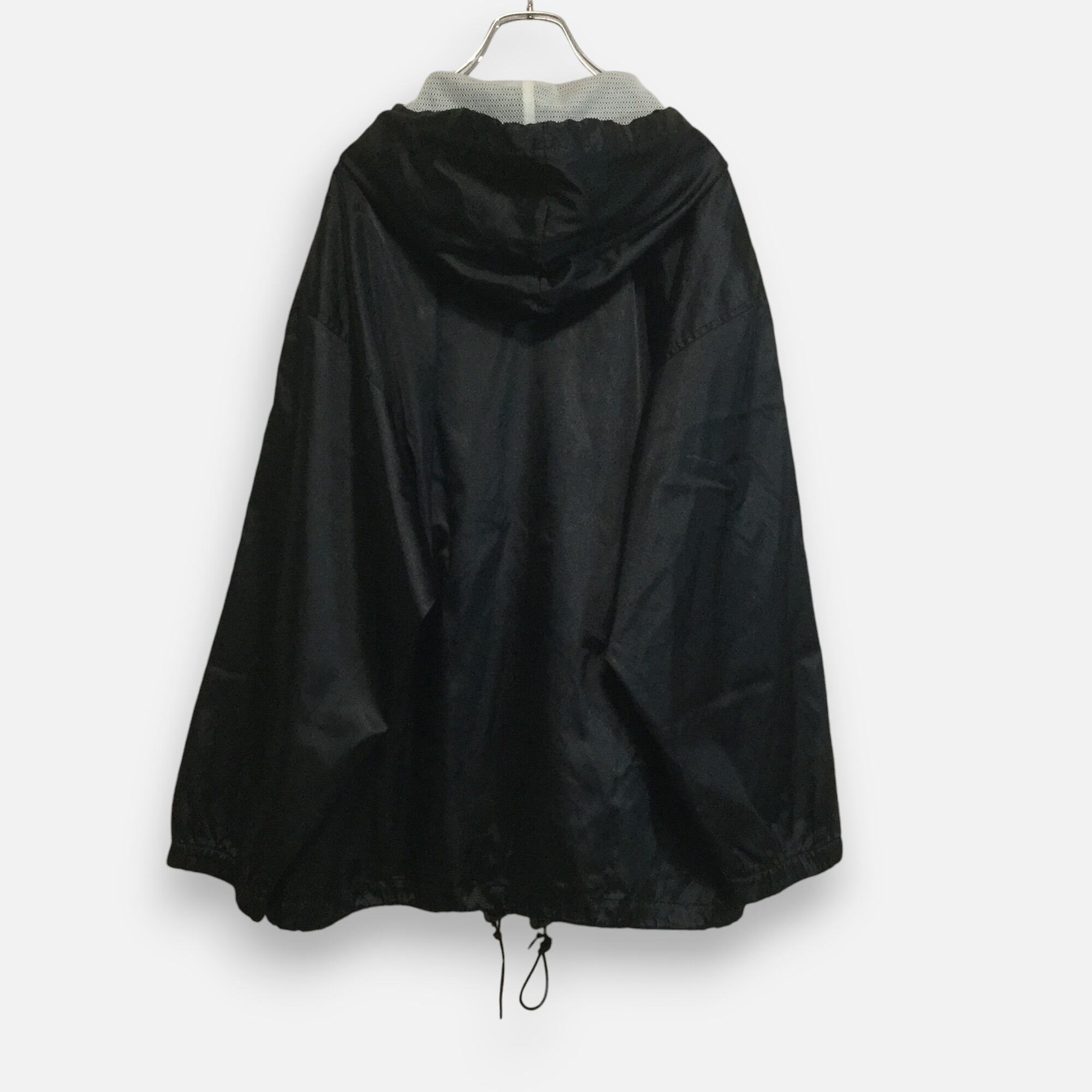 古着 ナイキ NIKE ナイロンジャケット 90s 銀タグ 刺繍スウッシュ フード ロゴチャーム ブラック L