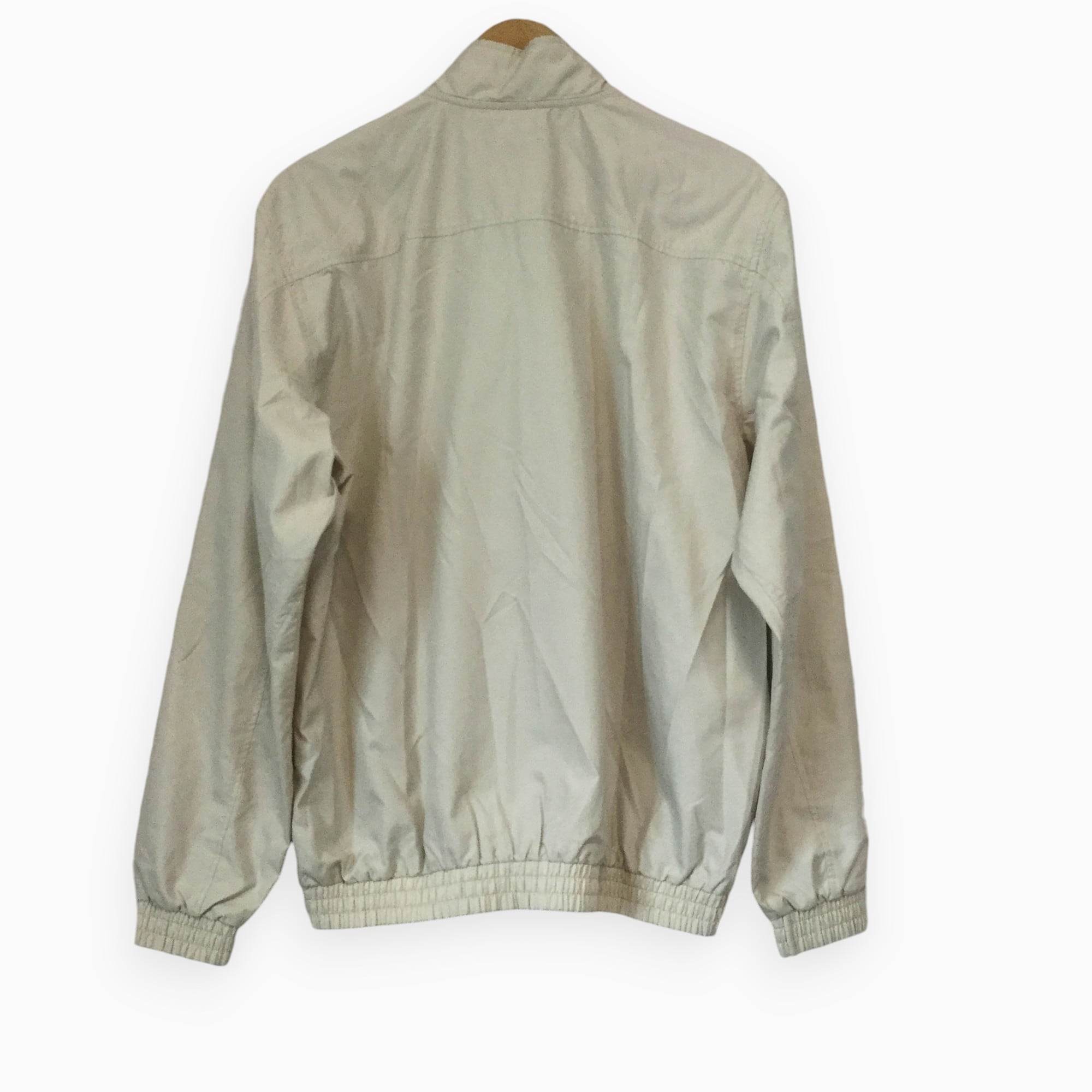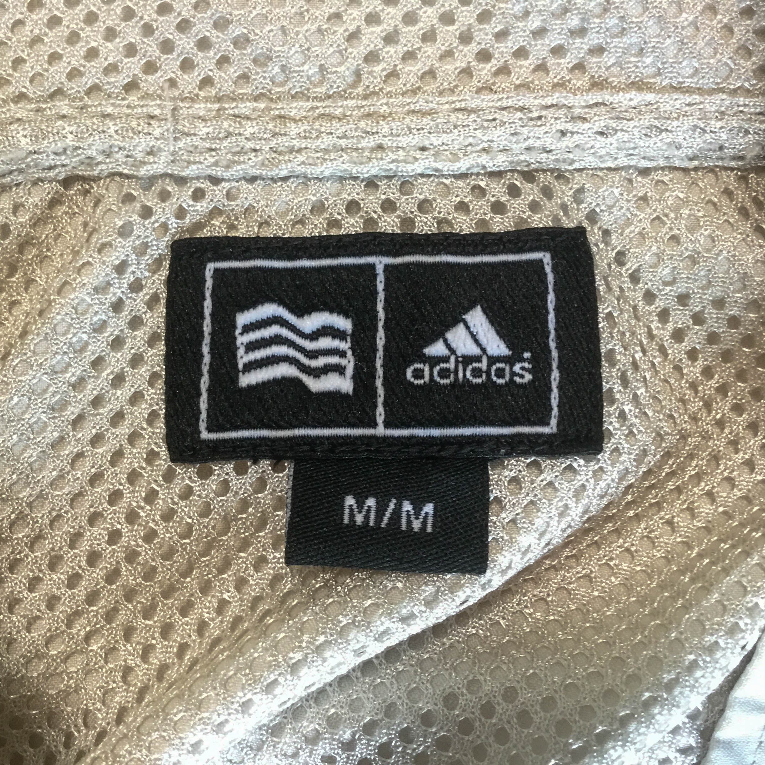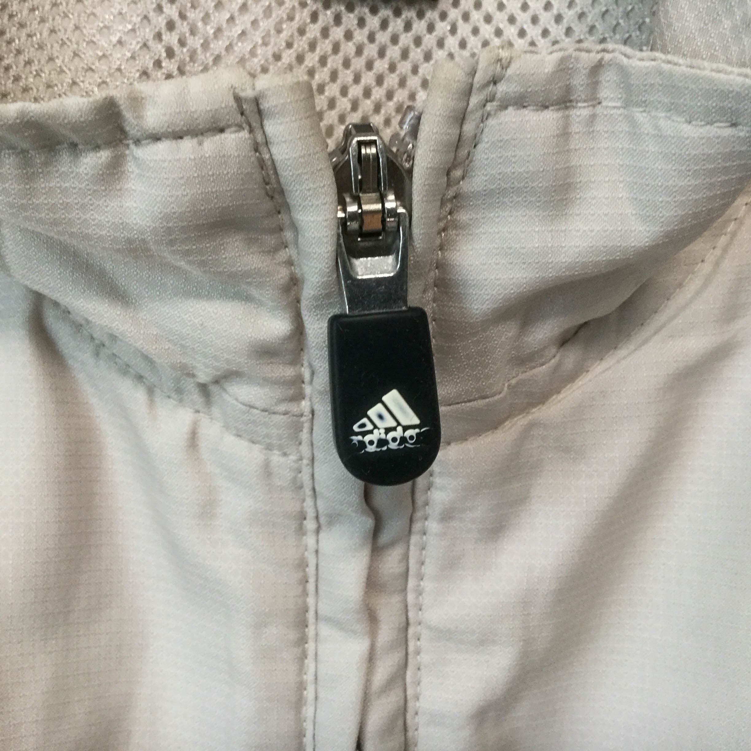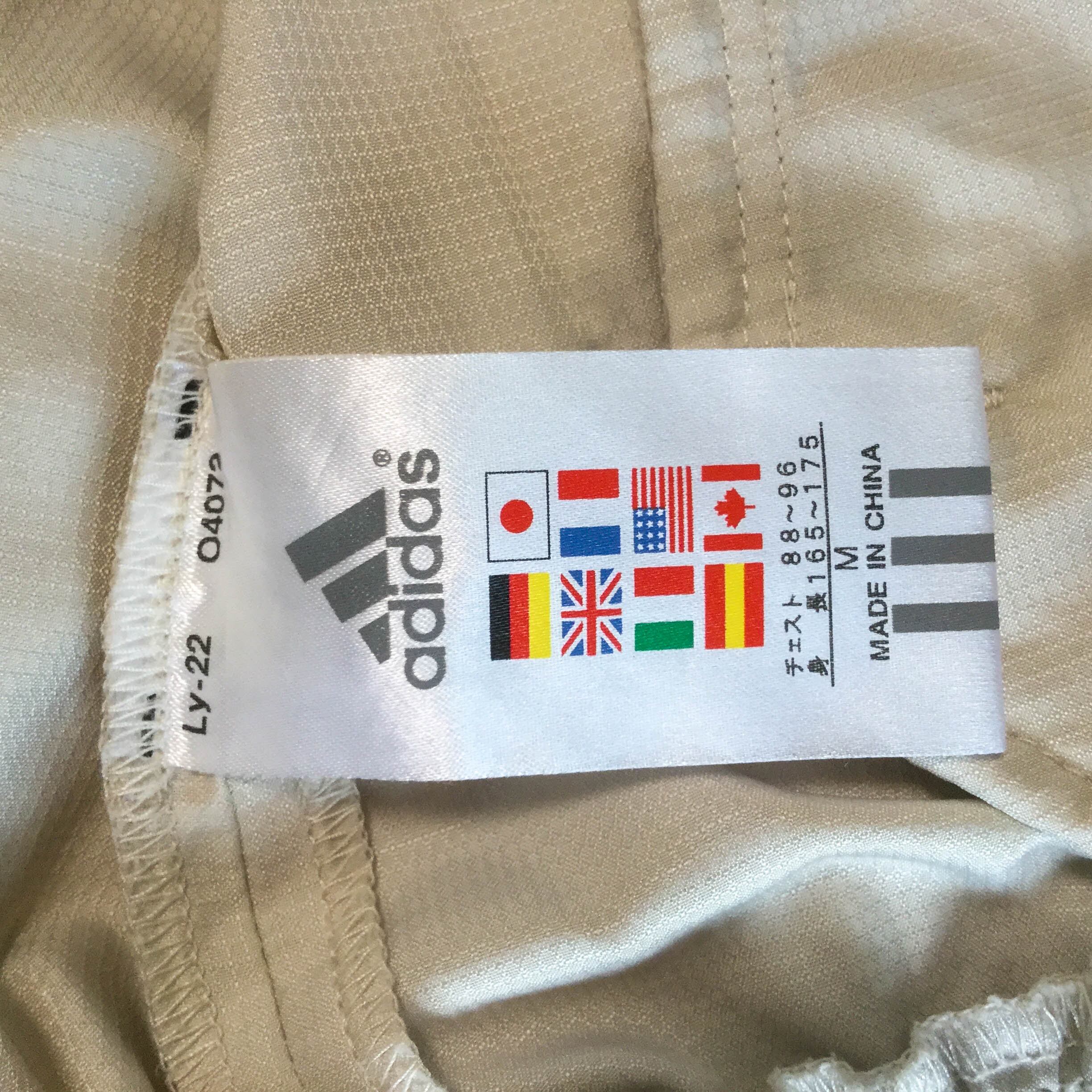 【アディダス ポリジャケット】 ロゴ刺繍 スリーライン 00s M ベージュ adidas 古着 メンズ [250627-017]