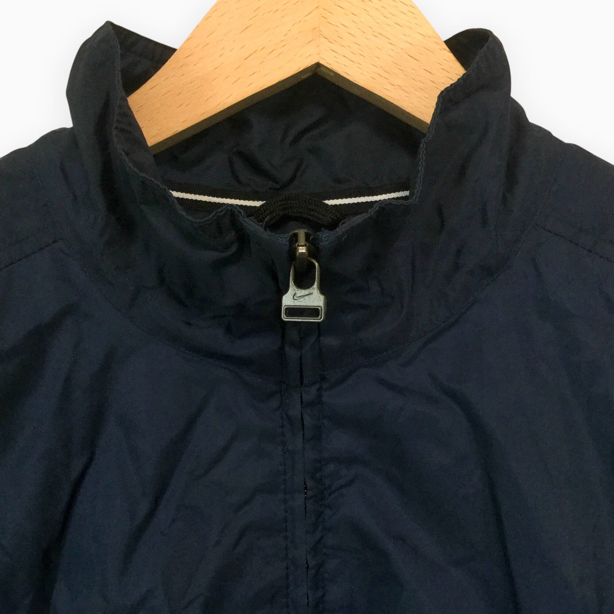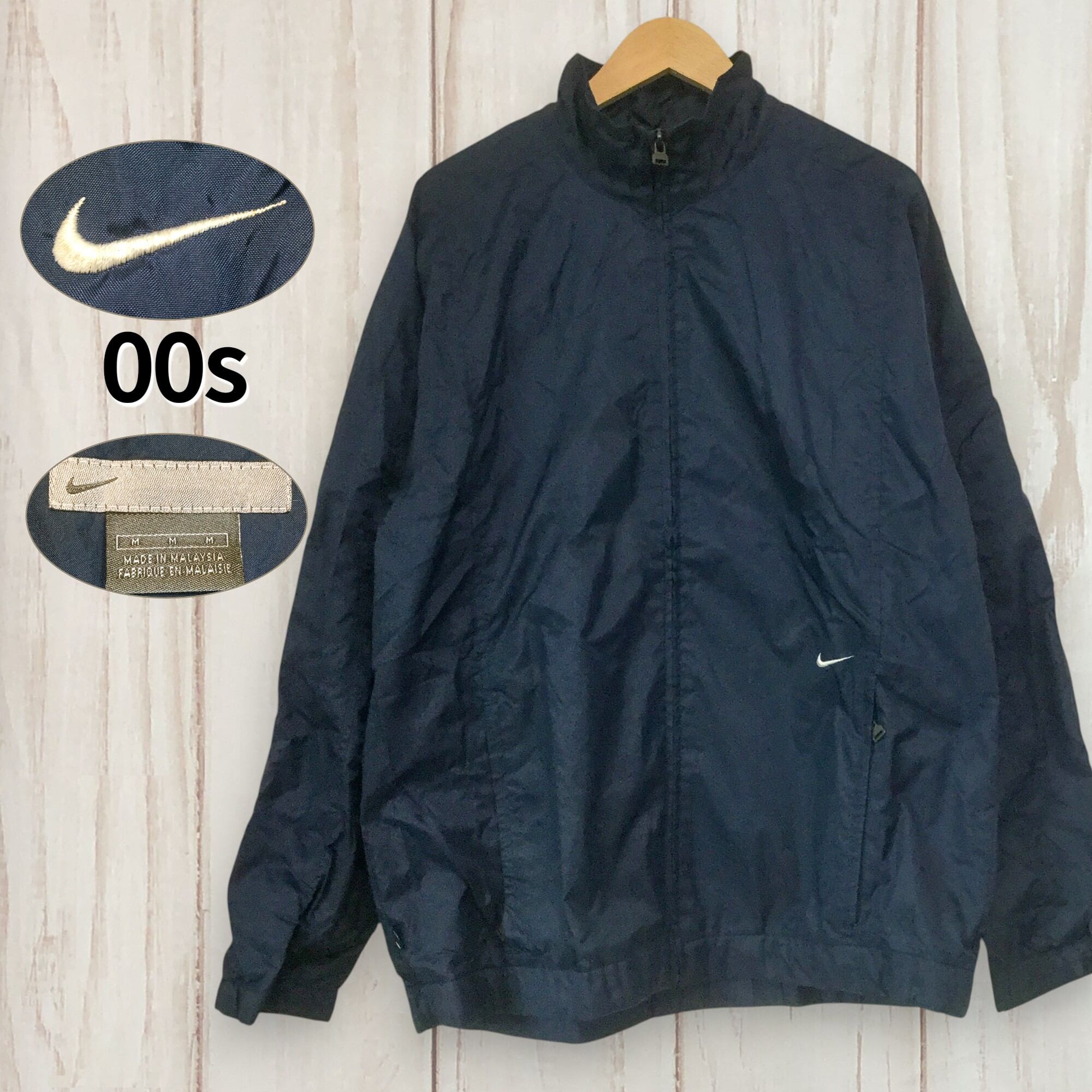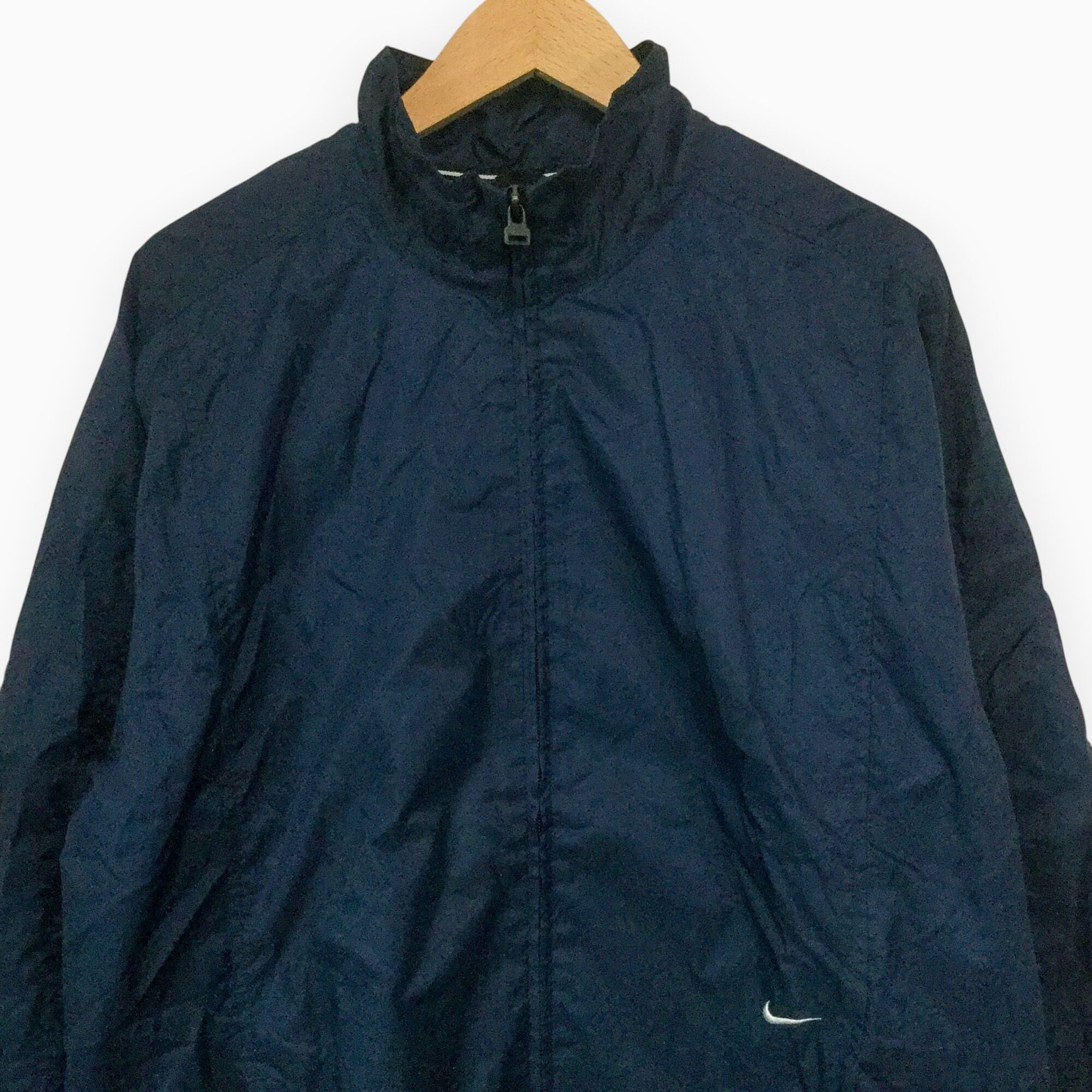 【ナイキ ナイロンジャケット】 00s シンプル ロゴ刺繍 スポーツジャケット M相当 ネイビー NIKE 古着 メンズ [250627-020]