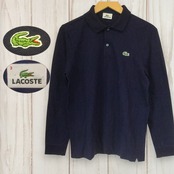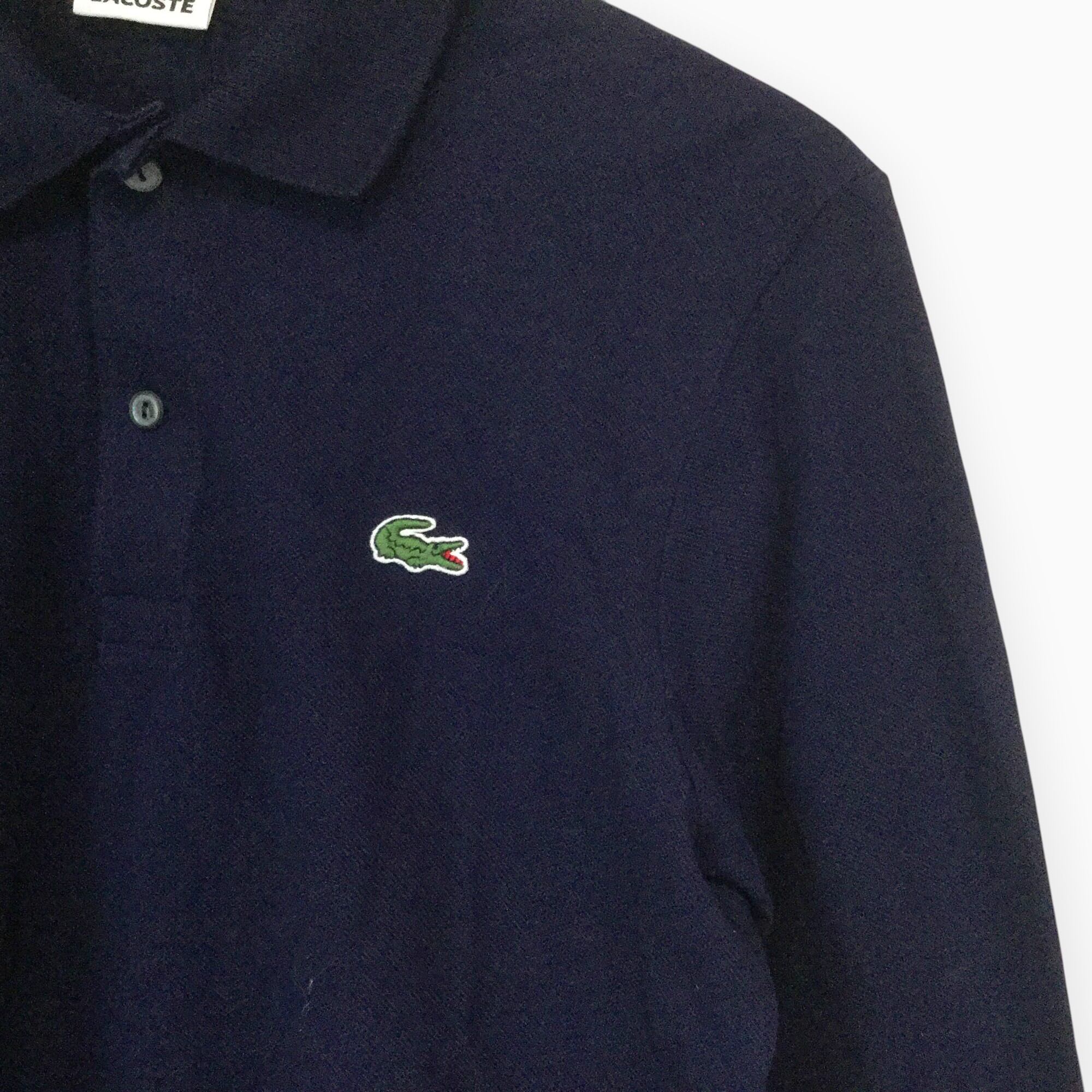 【長袖ロゴ刺繍ポロシャツ】ファブリカ 正規品 日本製 M相当 ネイビー 古着 メンズ [250627-024]
