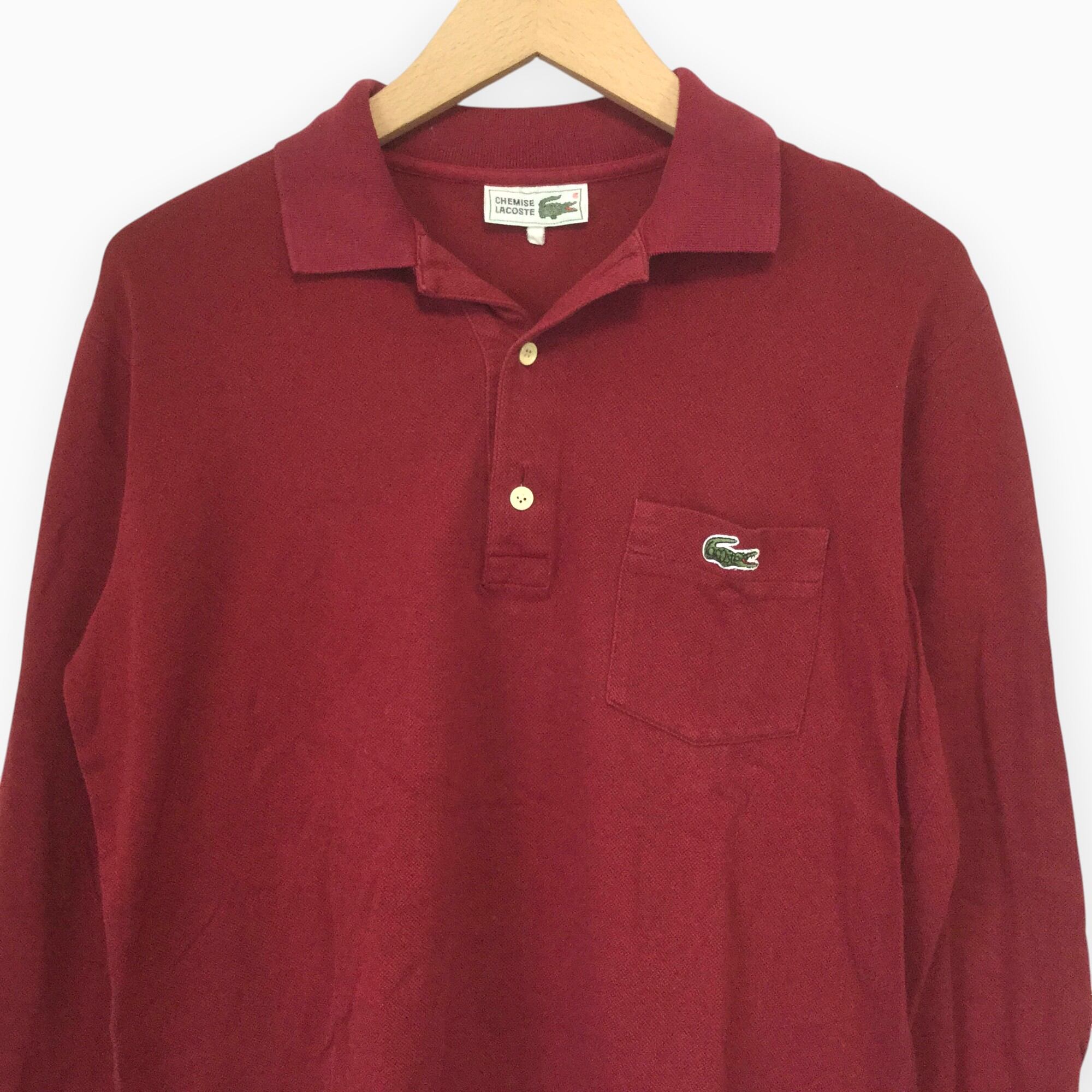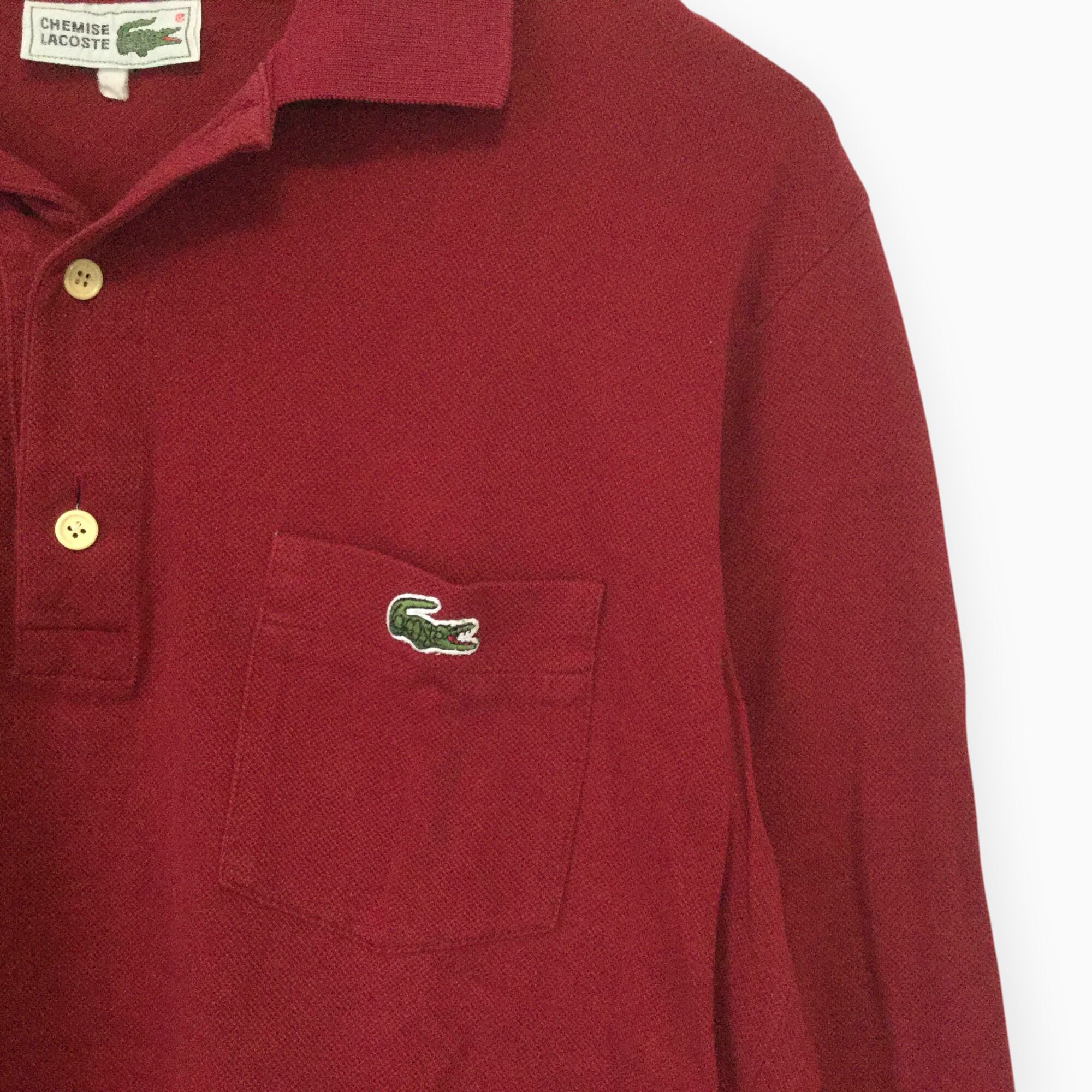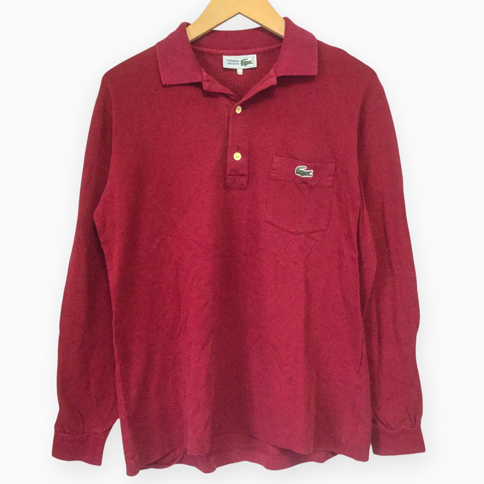【ラコステ 長袖ロゴ刺繍ポロシャツ】 90s CHEMISE LACOSTE L相当 エンジ LACOSTE 古着 メンズ [250627-025]