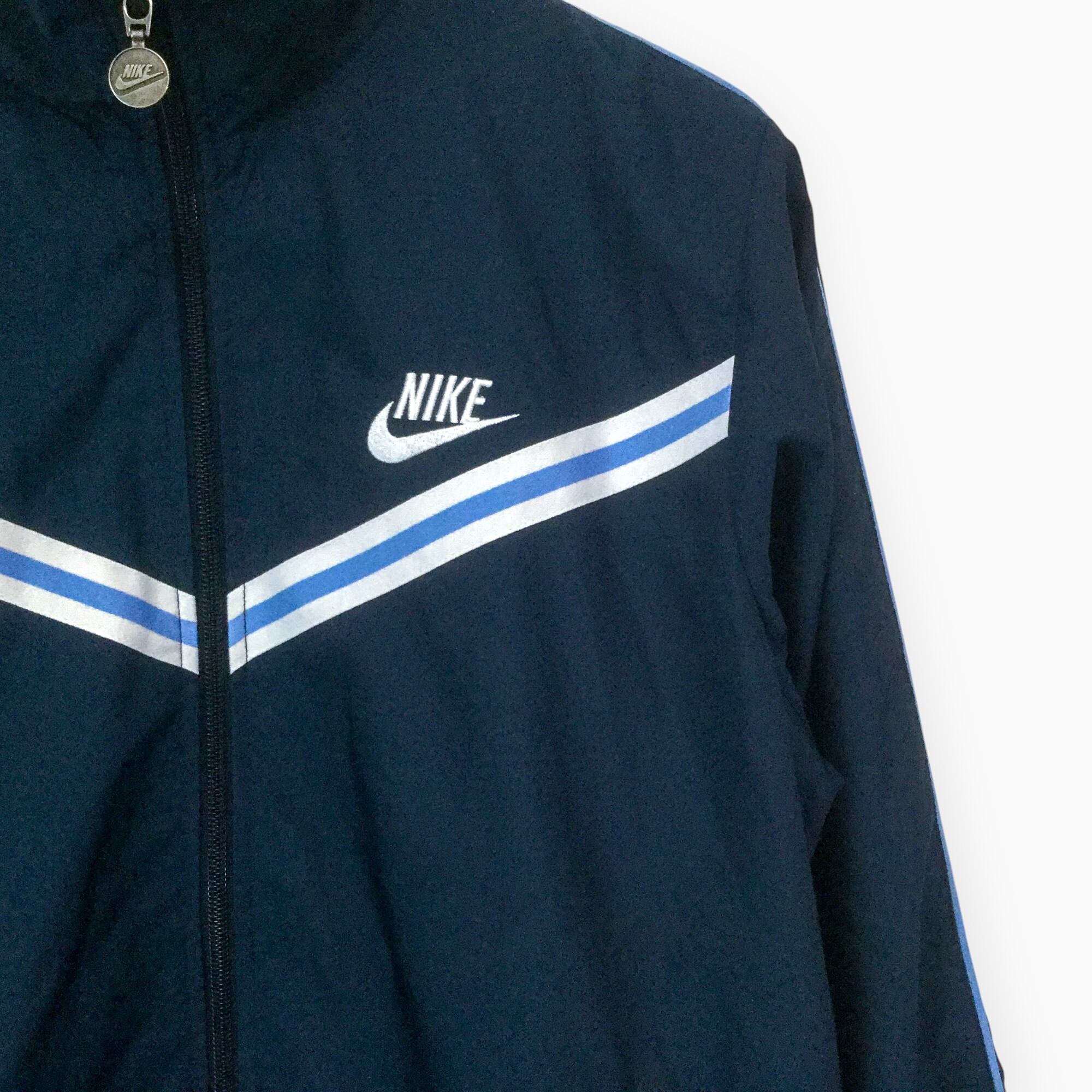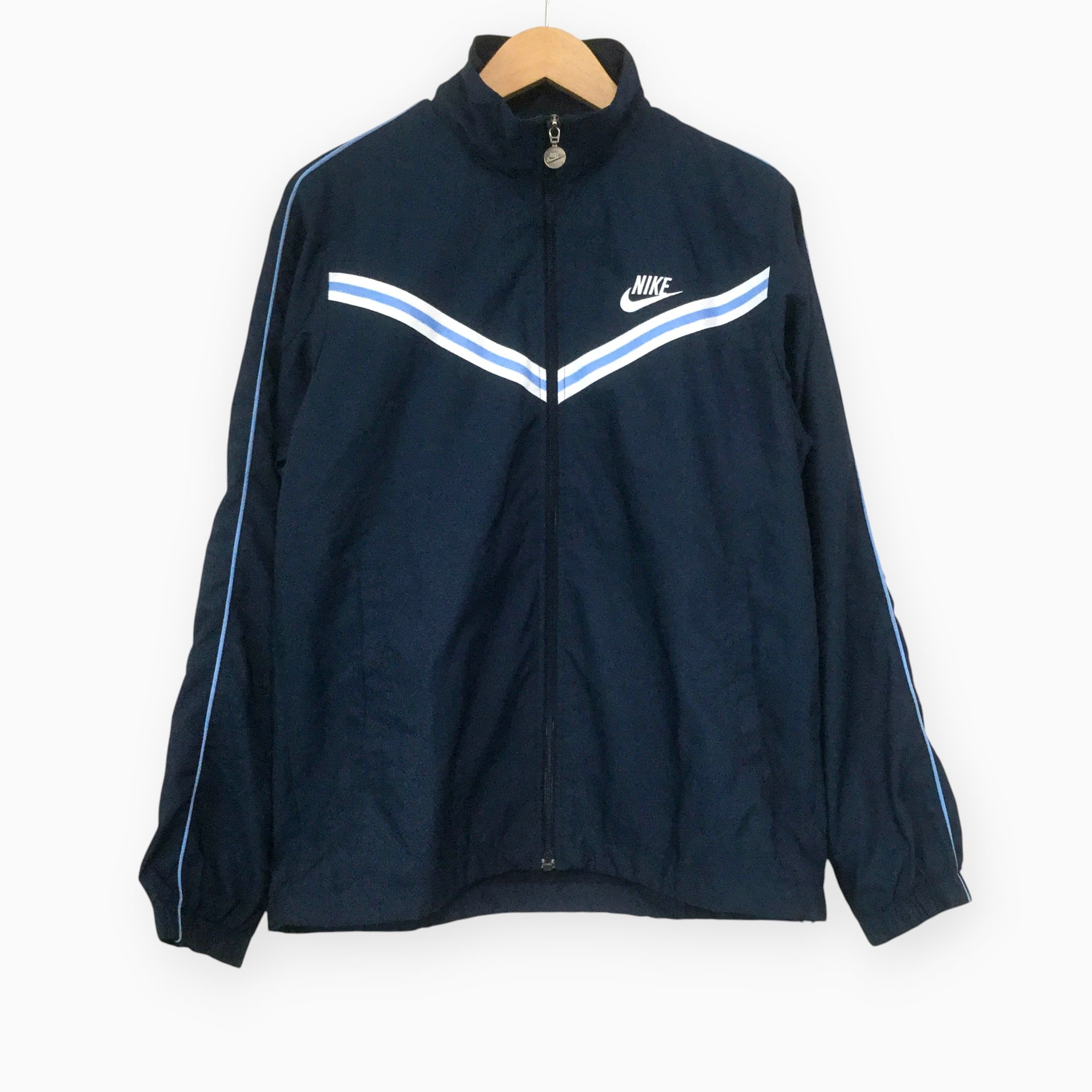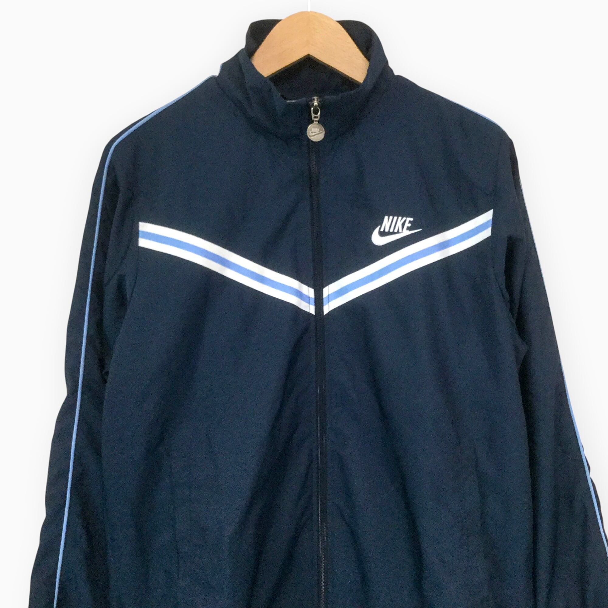 古着 ナイキ NIKE ポリジャケット 00s ロゴ刺繍 ZIPロゴ ネイビー フルジップ トラックジャケット M