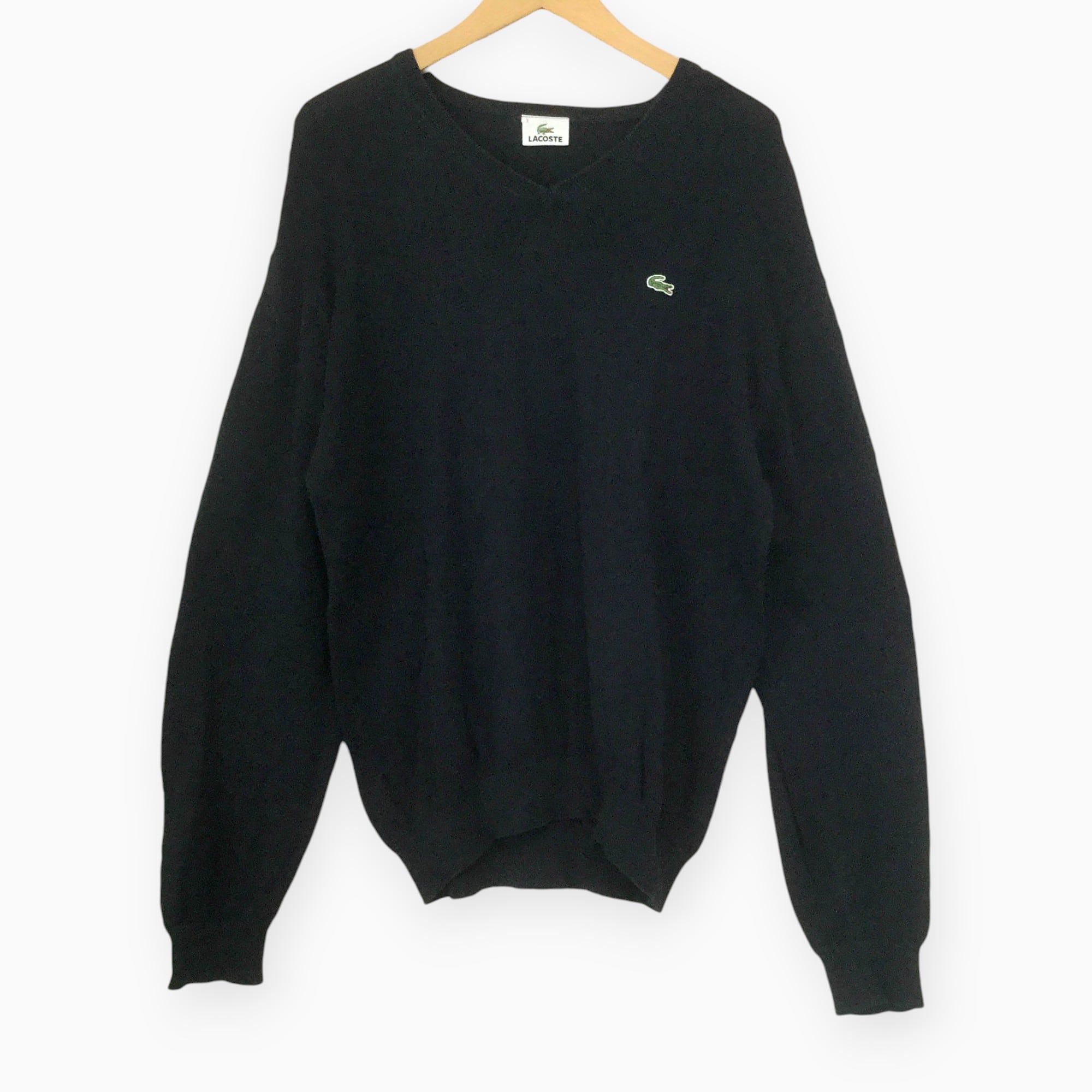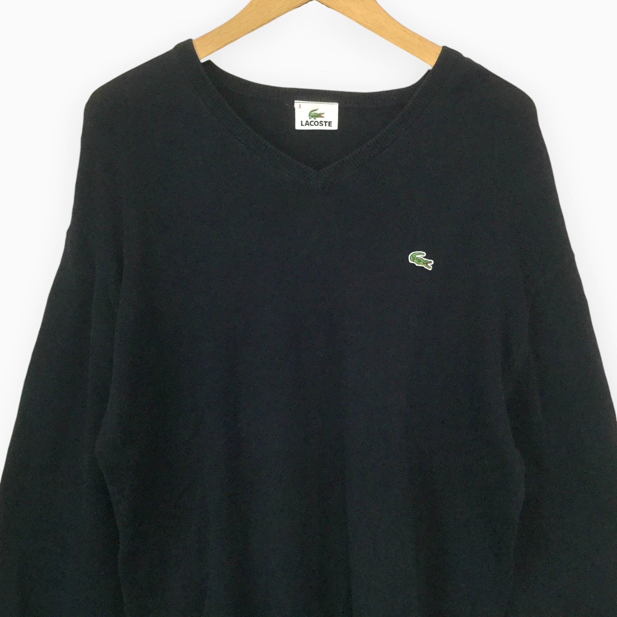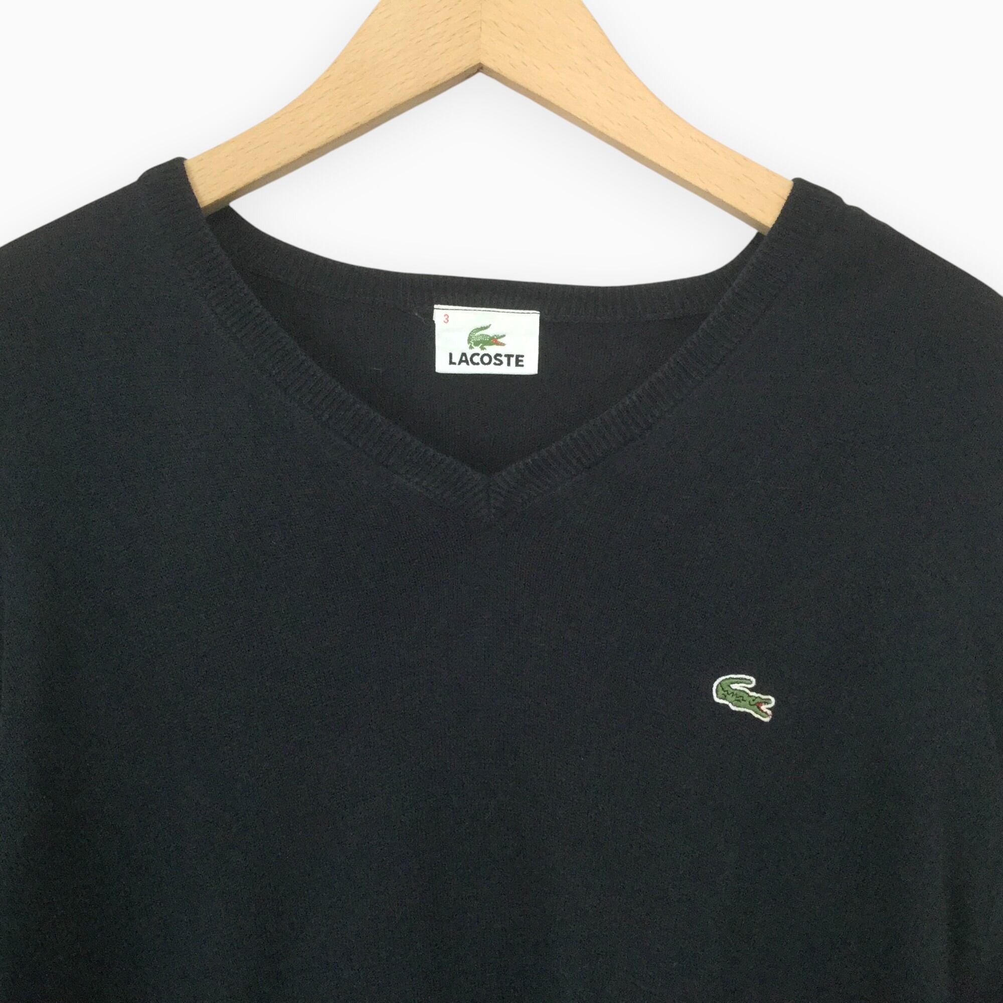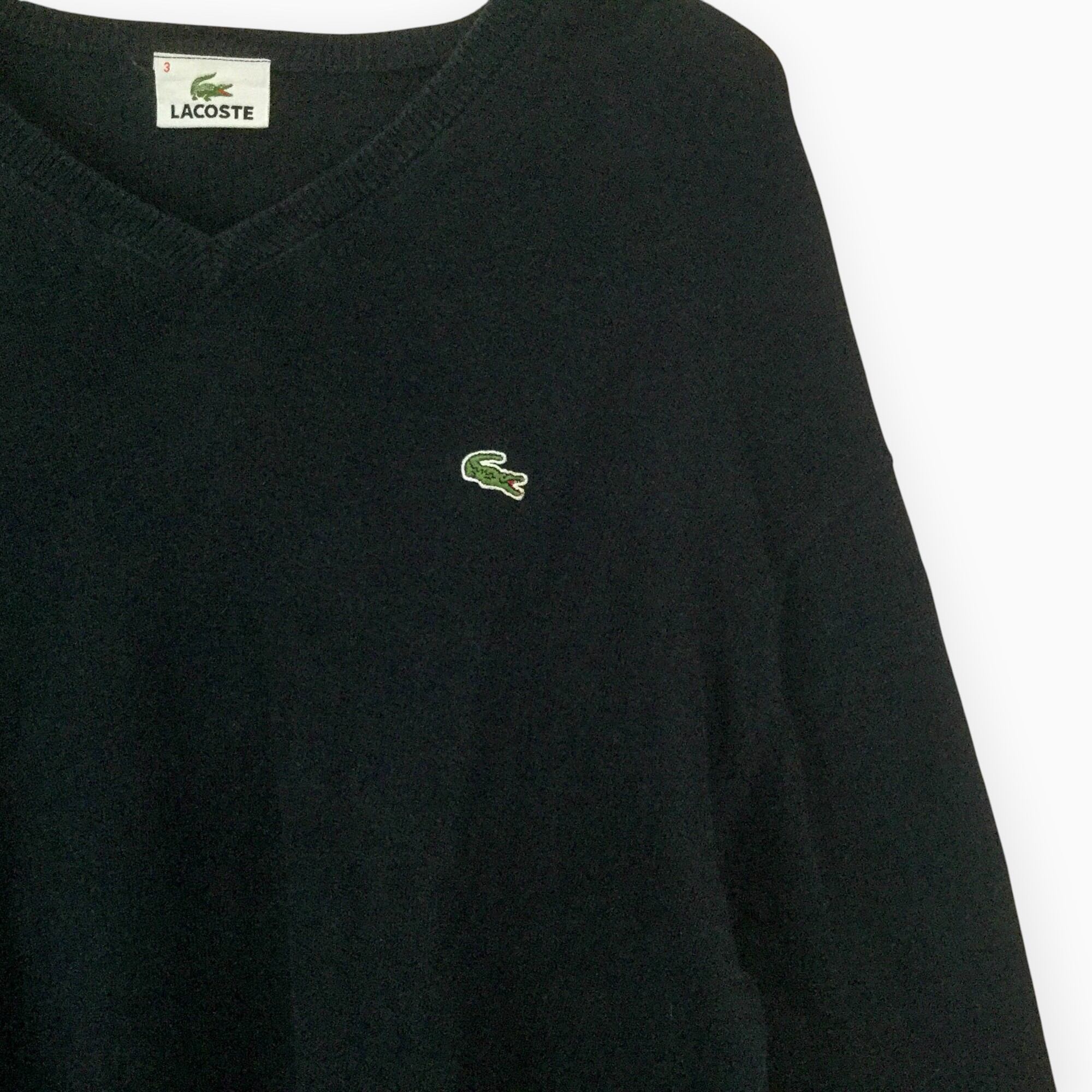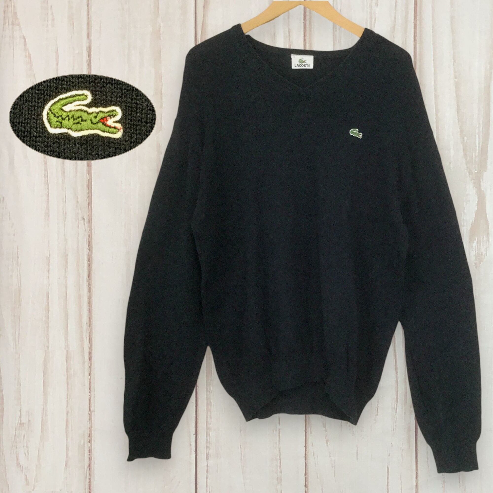 古着 ラコステ LACOSTE 長袖Vネックニット 定番 ワニロゴ DEVANRAY 輸入古着 Vネック M相当 ネイビー