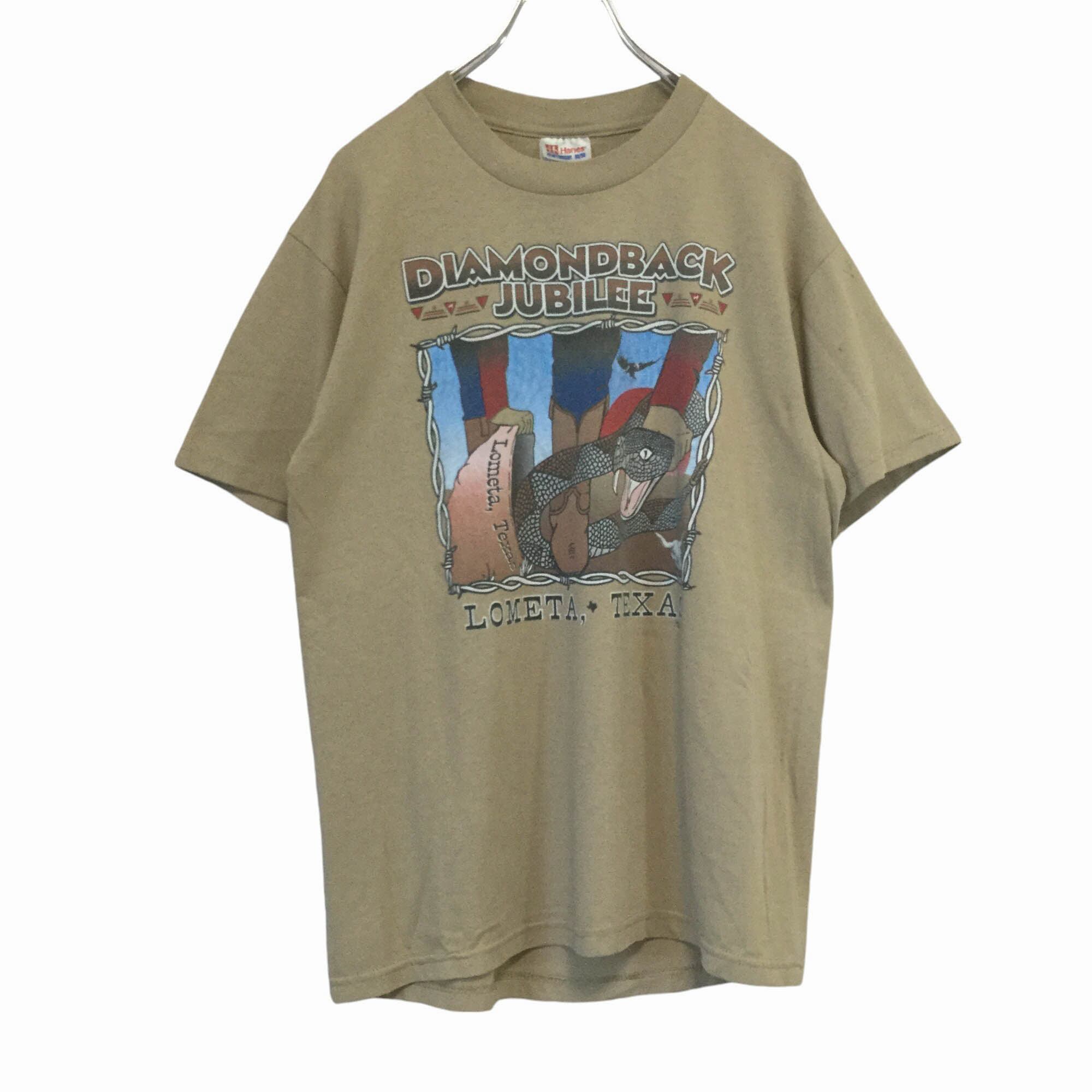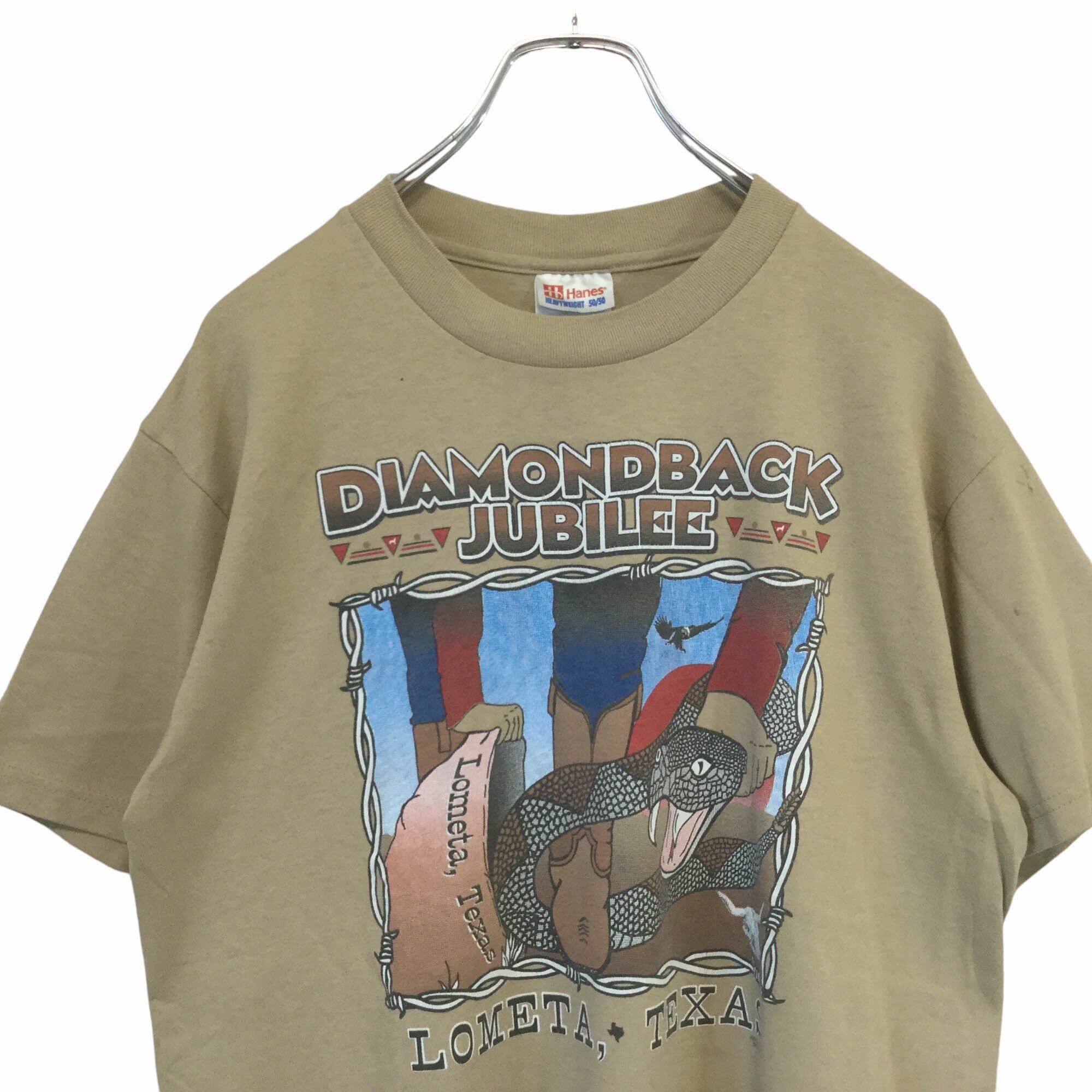 ヘインズ Hanes プリントTシャツ ダイヤモンドバック ジュビリー 記念T ガラガラヘビ イラスト ベージュ 丸胴 半袖 Mサイズ メンズ アメリカ イベントT 古着 カジュアル ヘビイラスト お祭りT