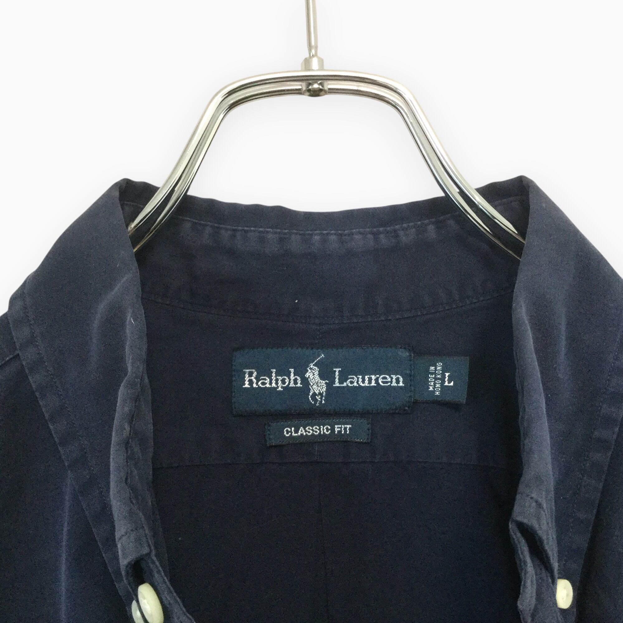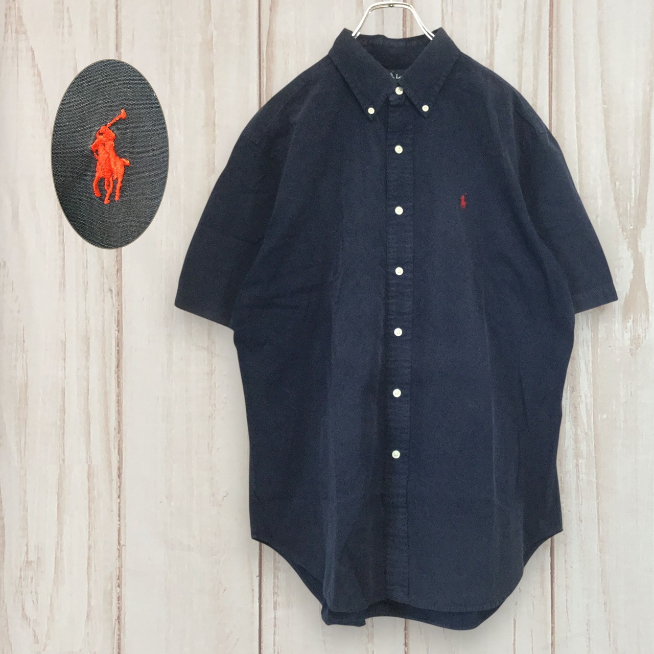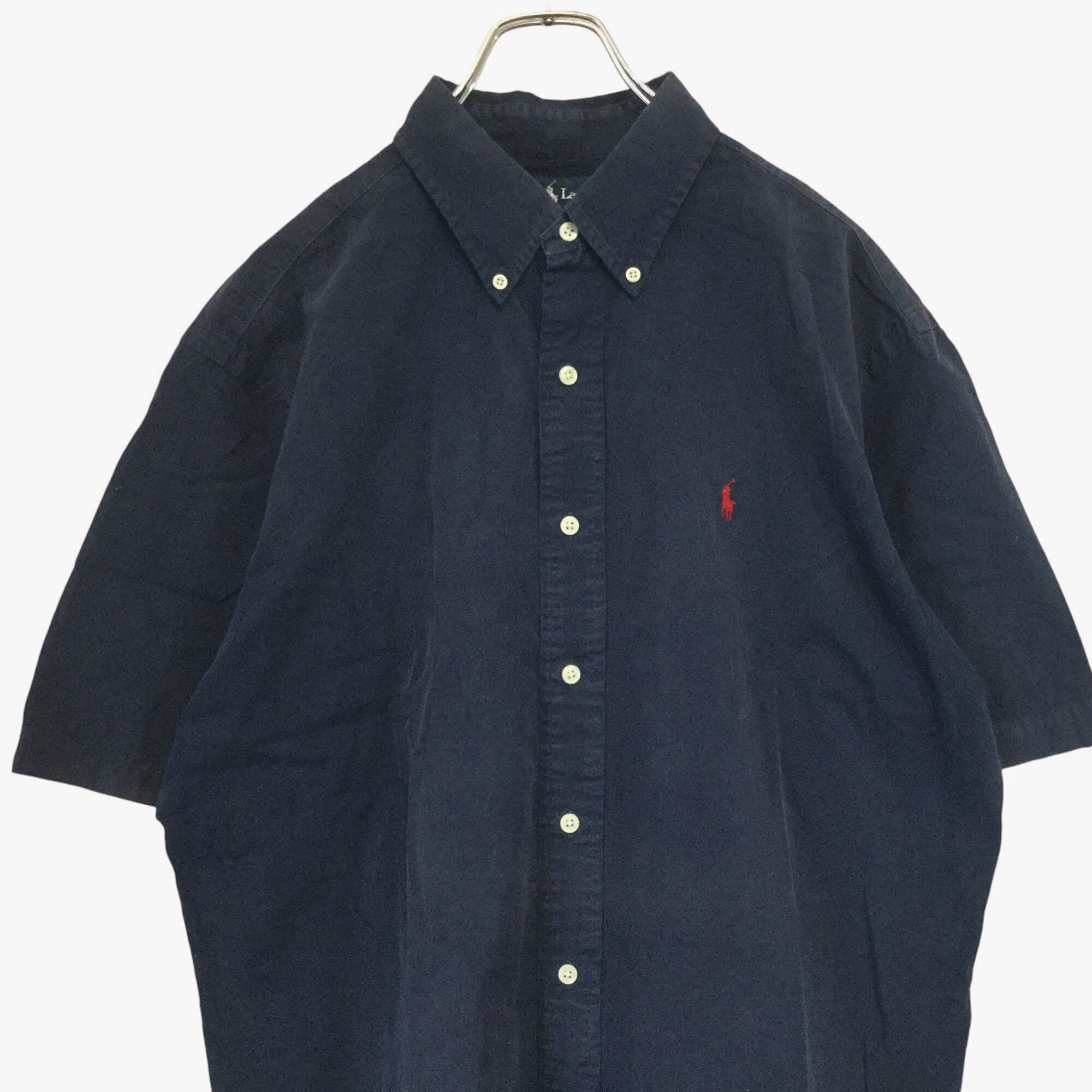 古着 ポロラルフローレン POLO RALPH LAUREN 半袖シャツ 半袖シャツ ボタンダウン ワンポイント L ネイビー