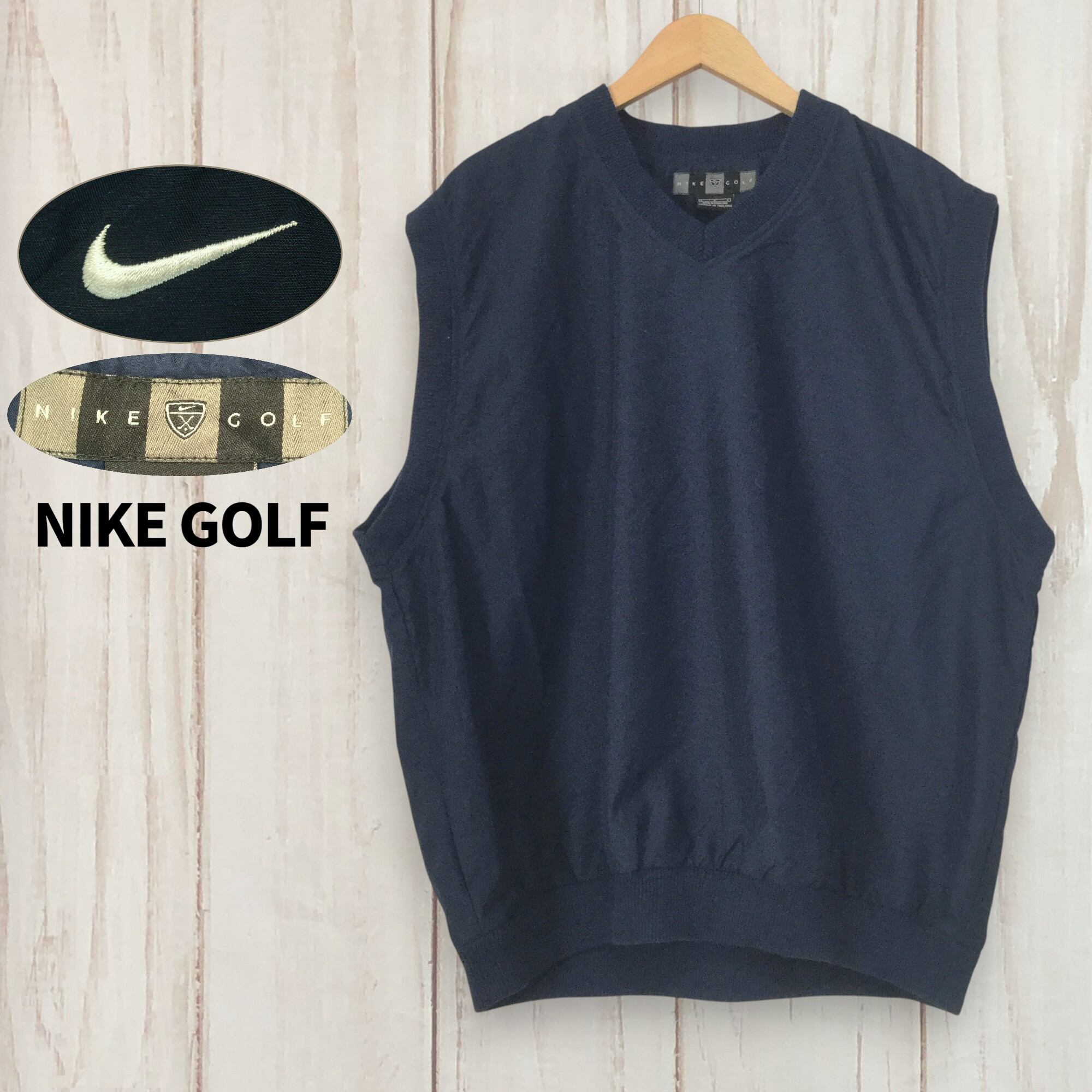 古着 ナイキゴルフ Nike Golf スポーツベスト スポーツベスト 海外M 紺 ロゴ 刺繍 ポリエステル L相当 ネイビー