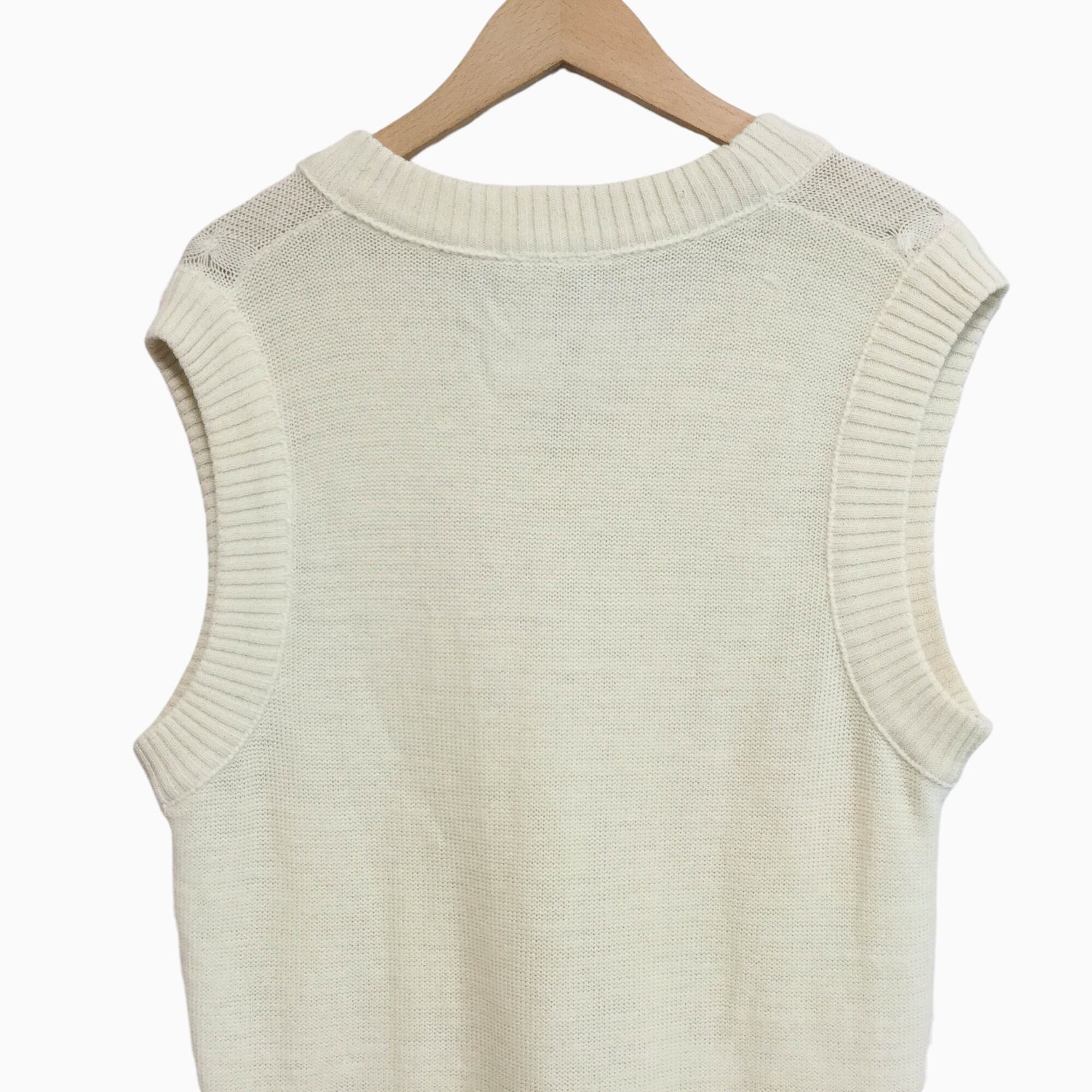 古着 ラコステ LACOSTE Vネックベスト フランス製 フランス製 ヴィンテージ フレラコ Vネック XL相当 アイボリー