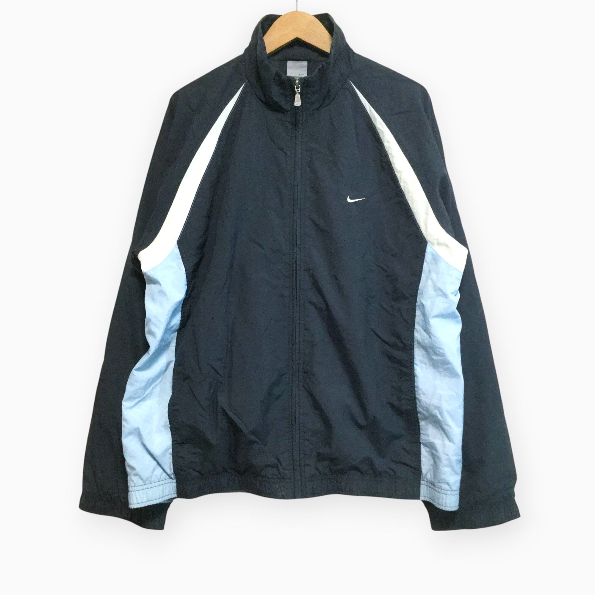 ナイキ NIKE ナイロンジャケット 00s 刺繍スウッシュ ワンポイント ラグラン トラックジャケット 切替デザイン バイカラー スポーツウェア DRI-FIT フルジップ ロゴチャーム ビッグサイズ 古着
