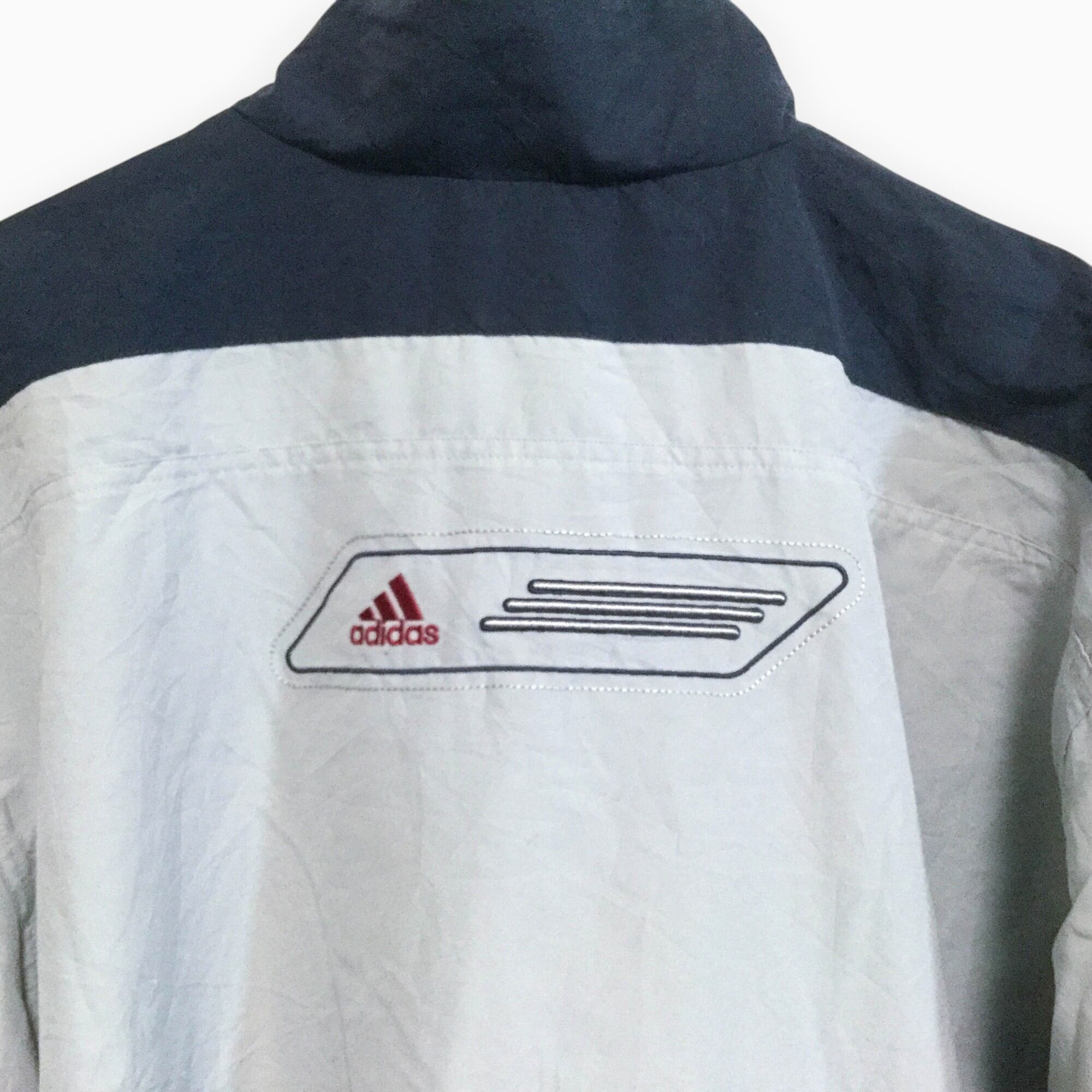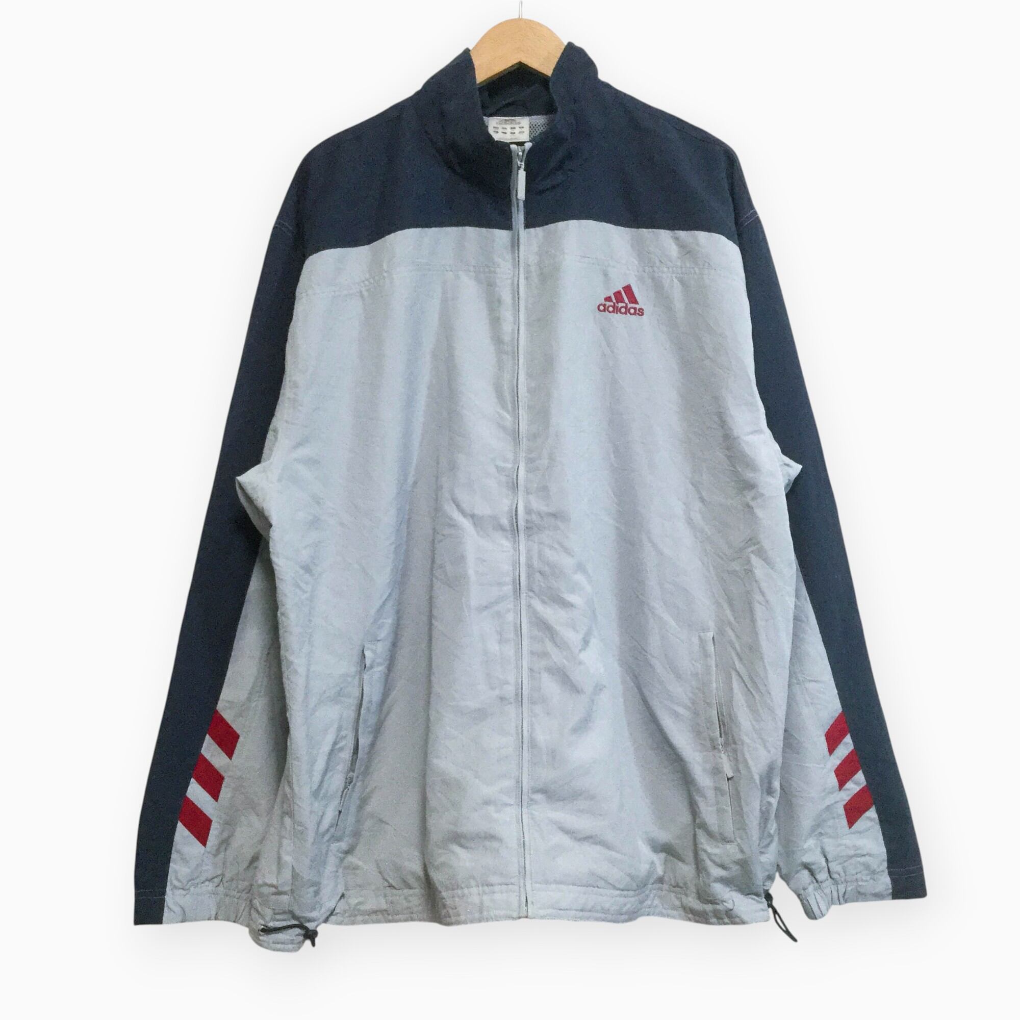 古着 アディダス adidas 00年代 ポリジャケット ポリジャケット ビッグサイズ 背面刺繍 フルジップ 3XL相当 グレー