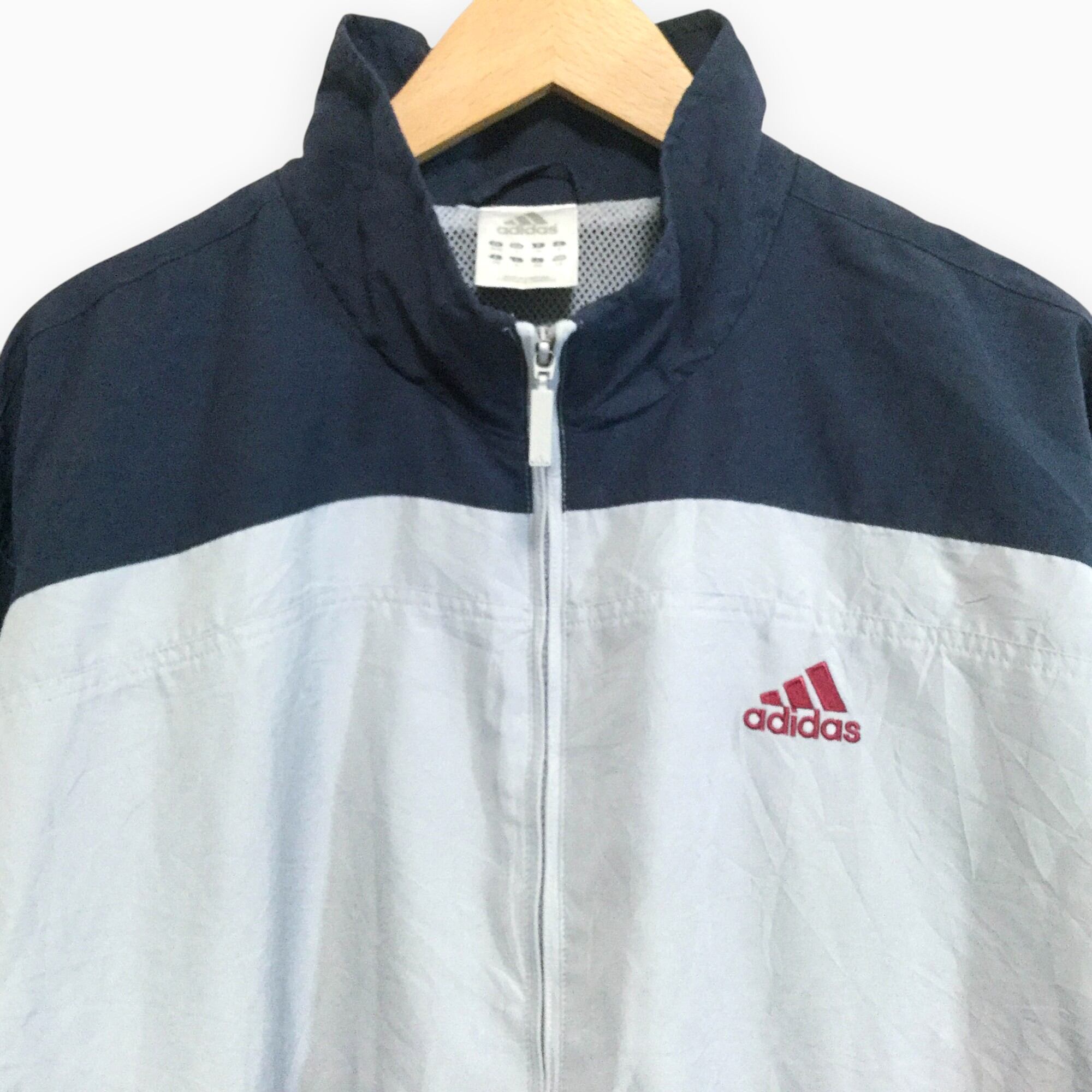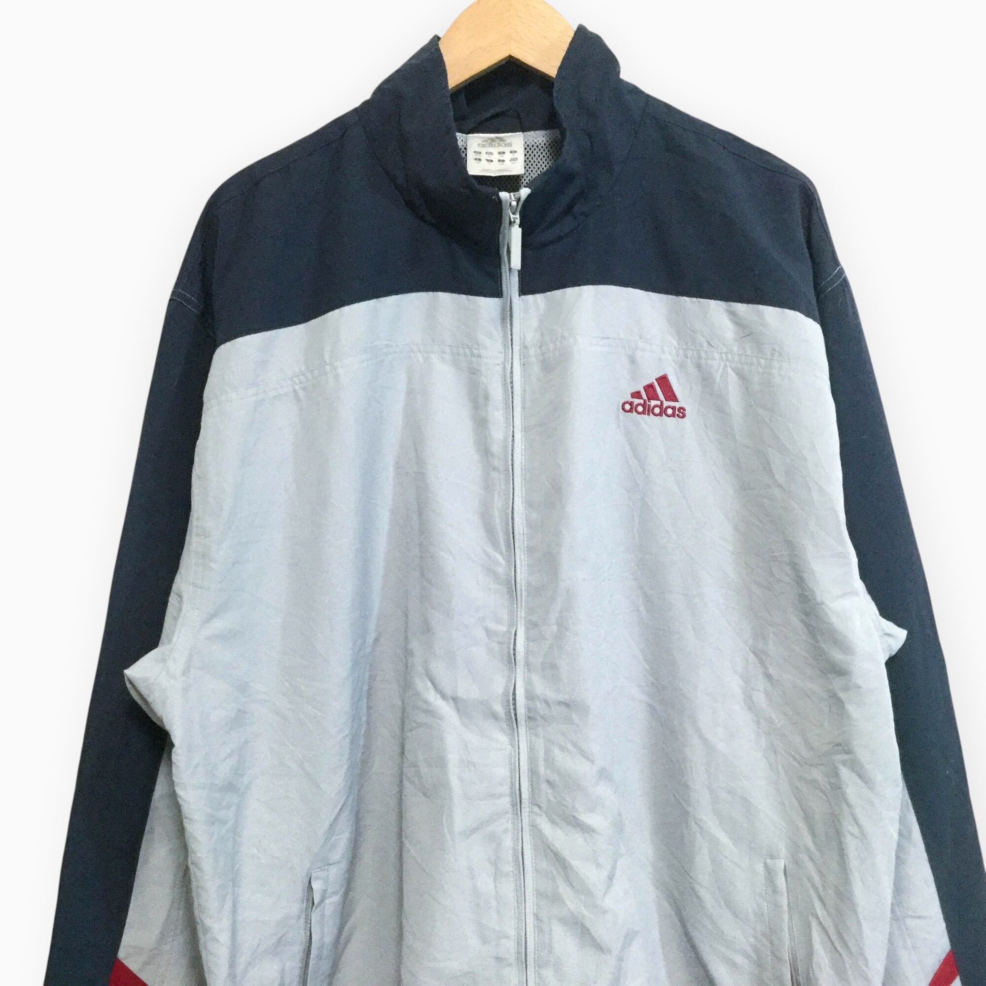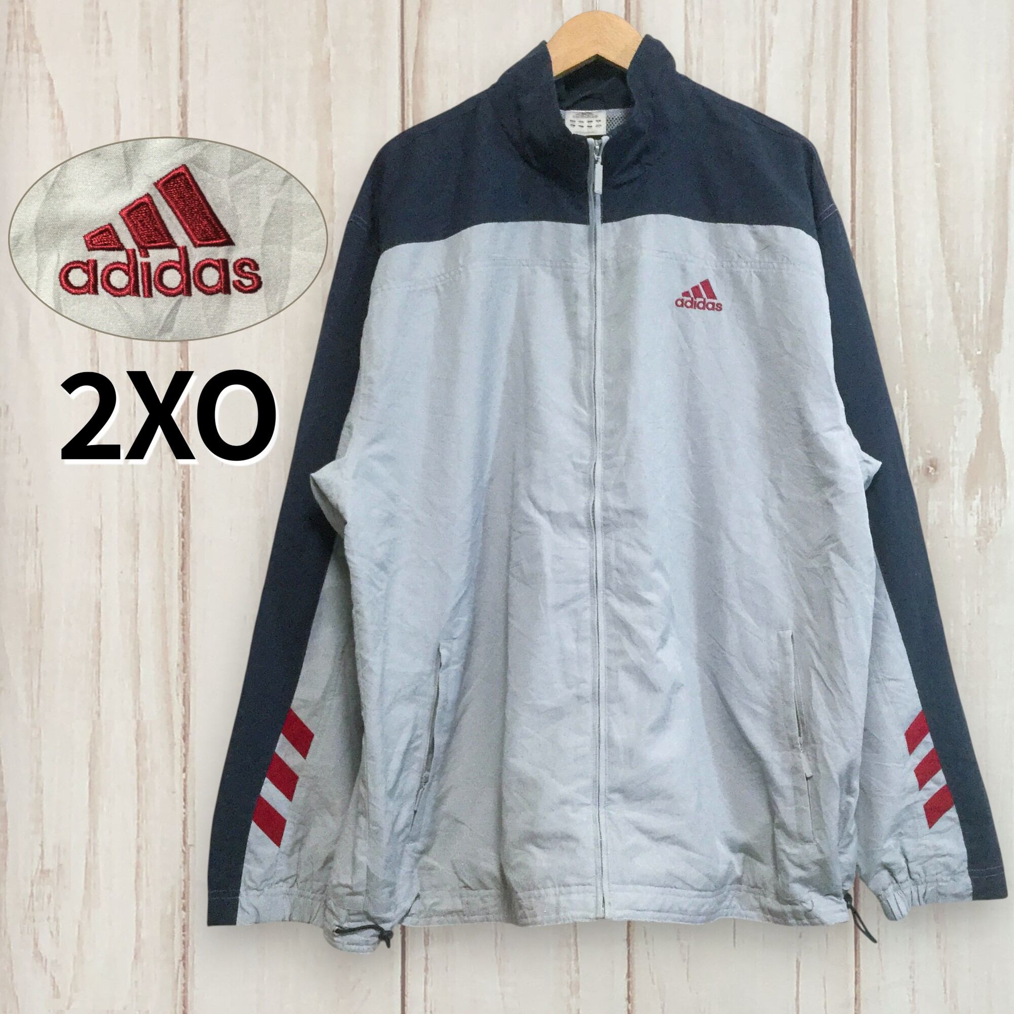 アディダス adidas グレー 00年代 ロゴ刺繍 ポリジャケット メンズ 2XO ビッグサイズ 背面刺繍 フルジップ スポーツミックス トラックジャケット 古着 軽量 アウター