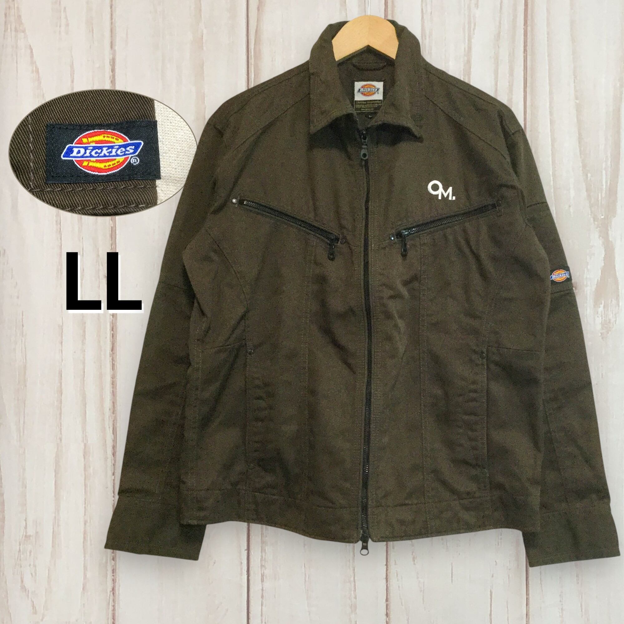 ディッキーズ Dickies 茶 美品 ジップアップ ジャケット メンズ LL ブラウン ワーク ストリート 無地 シンプル アウター 古着 ポリコットン ライトアウター