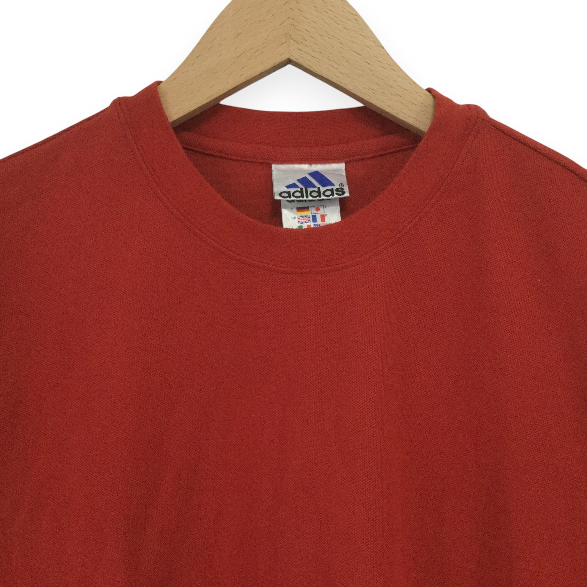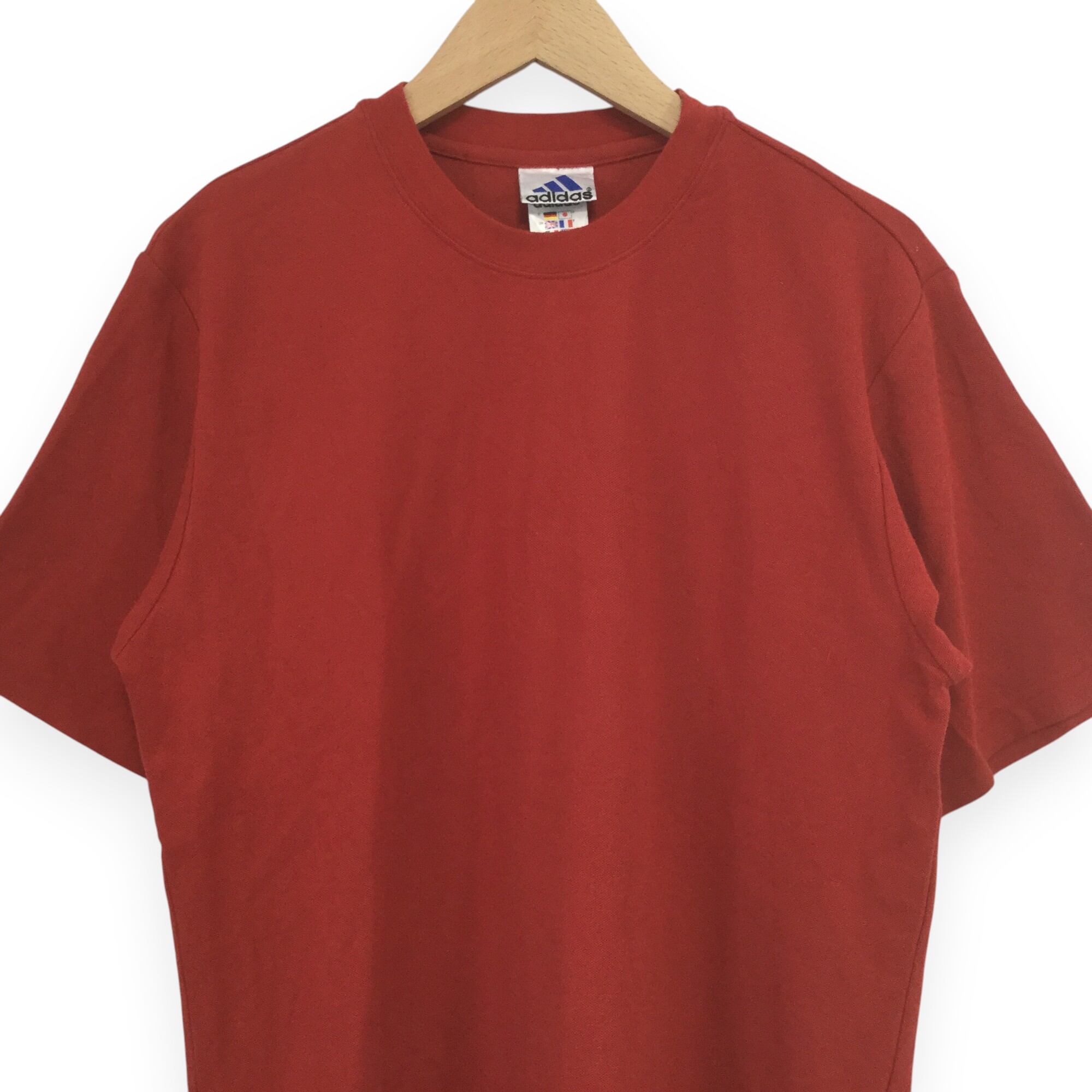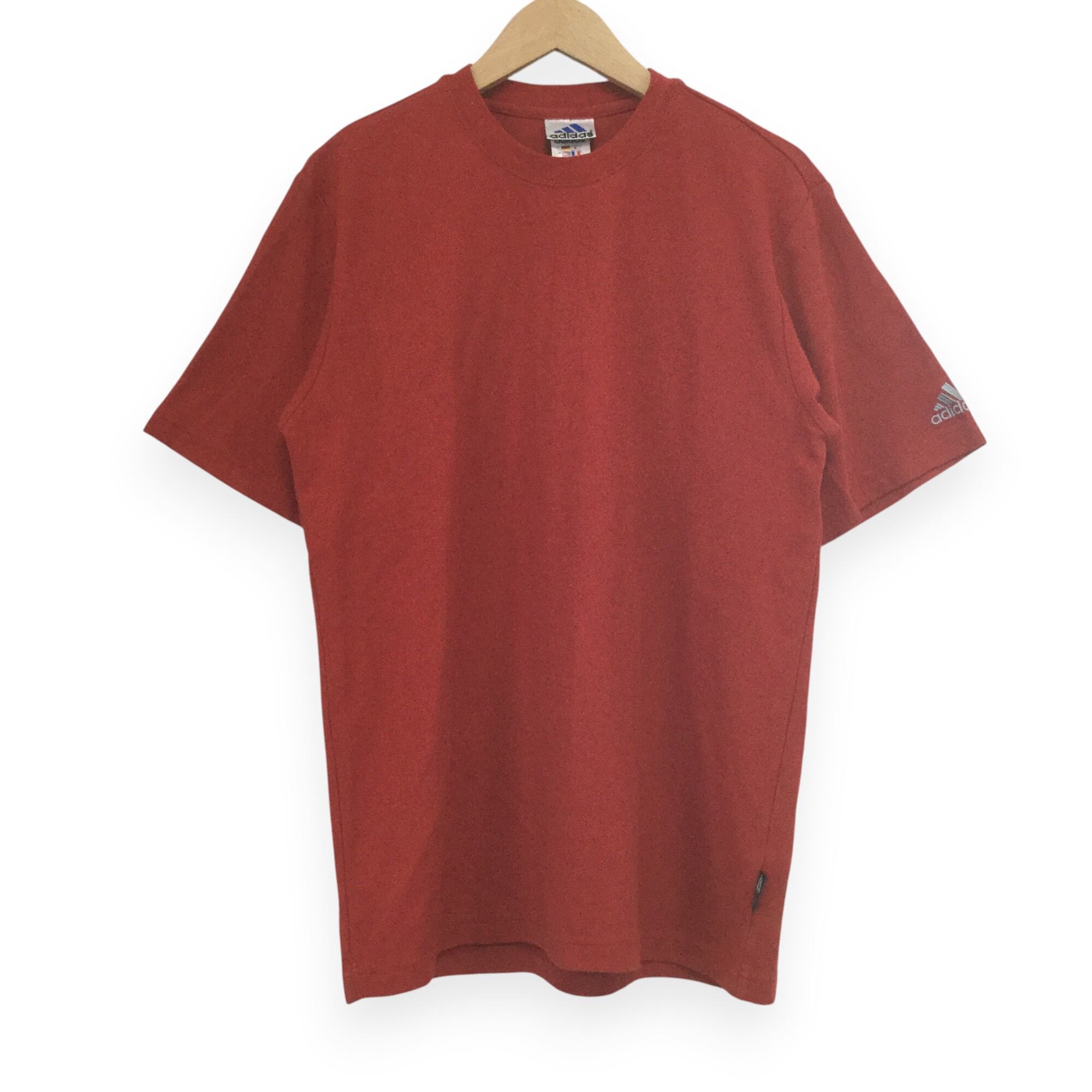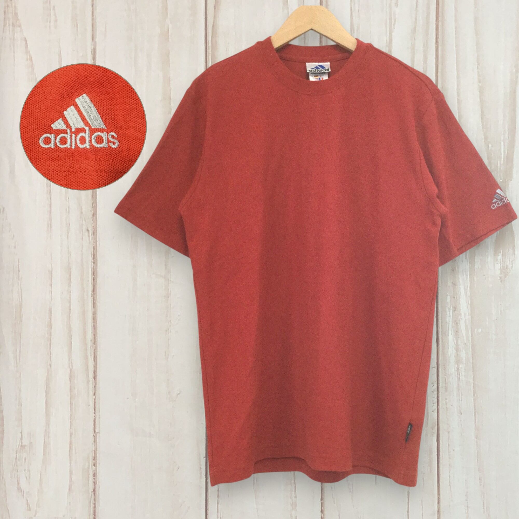 【アディダス 半袖ロゴTシャツ】 鹿の子生地 00s L 赤 adidas 古着 メンズ [250506-021]