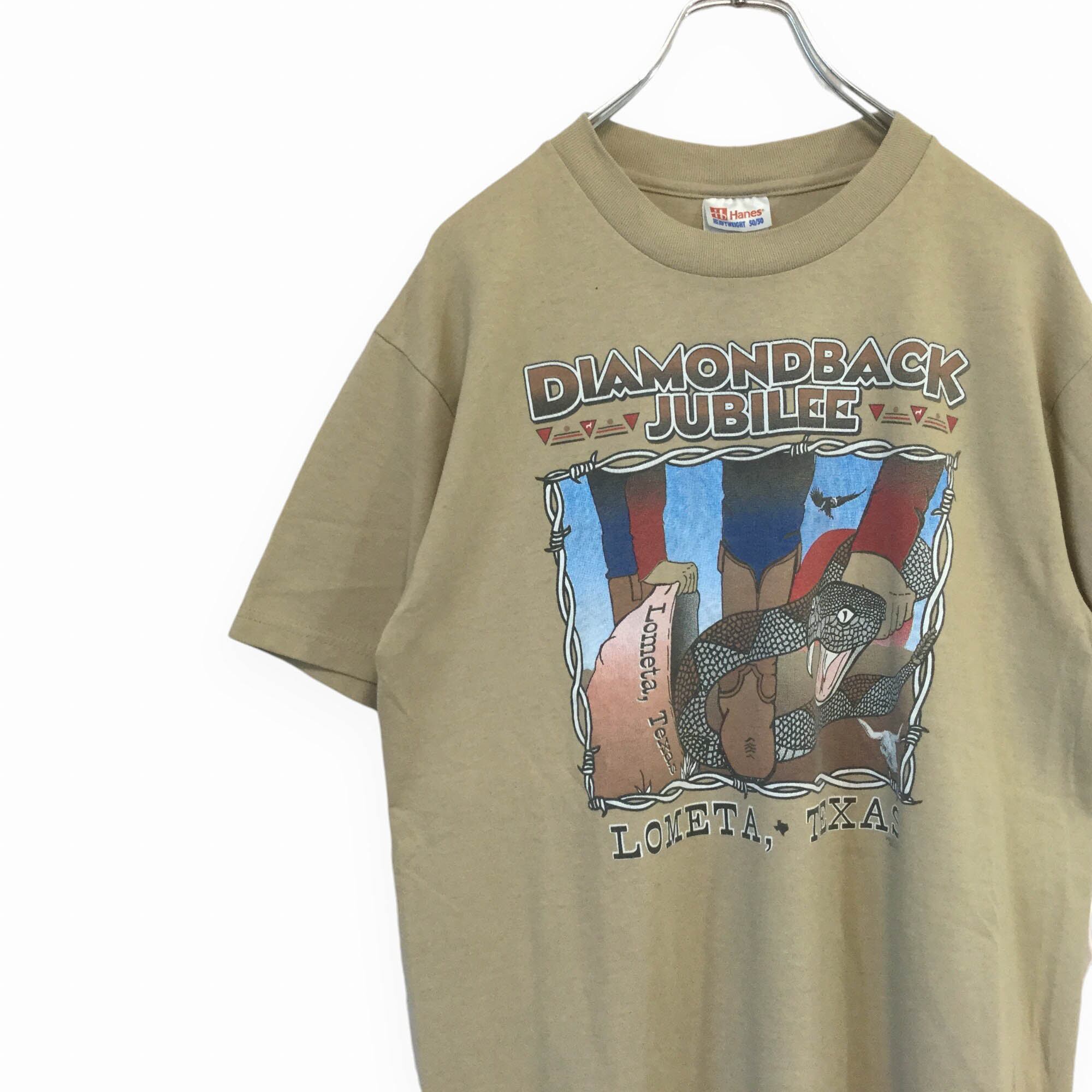 ヘインズ Hanes プリントTシャツ ダイヤモンドバック ジュビリー 記念T ガラガラヘビ イラスト ベージュ 丸胴 半袖 Mサイズ メンズ アメリカ イベントT 古着 カジュアル ヘビイラスト お祭りT