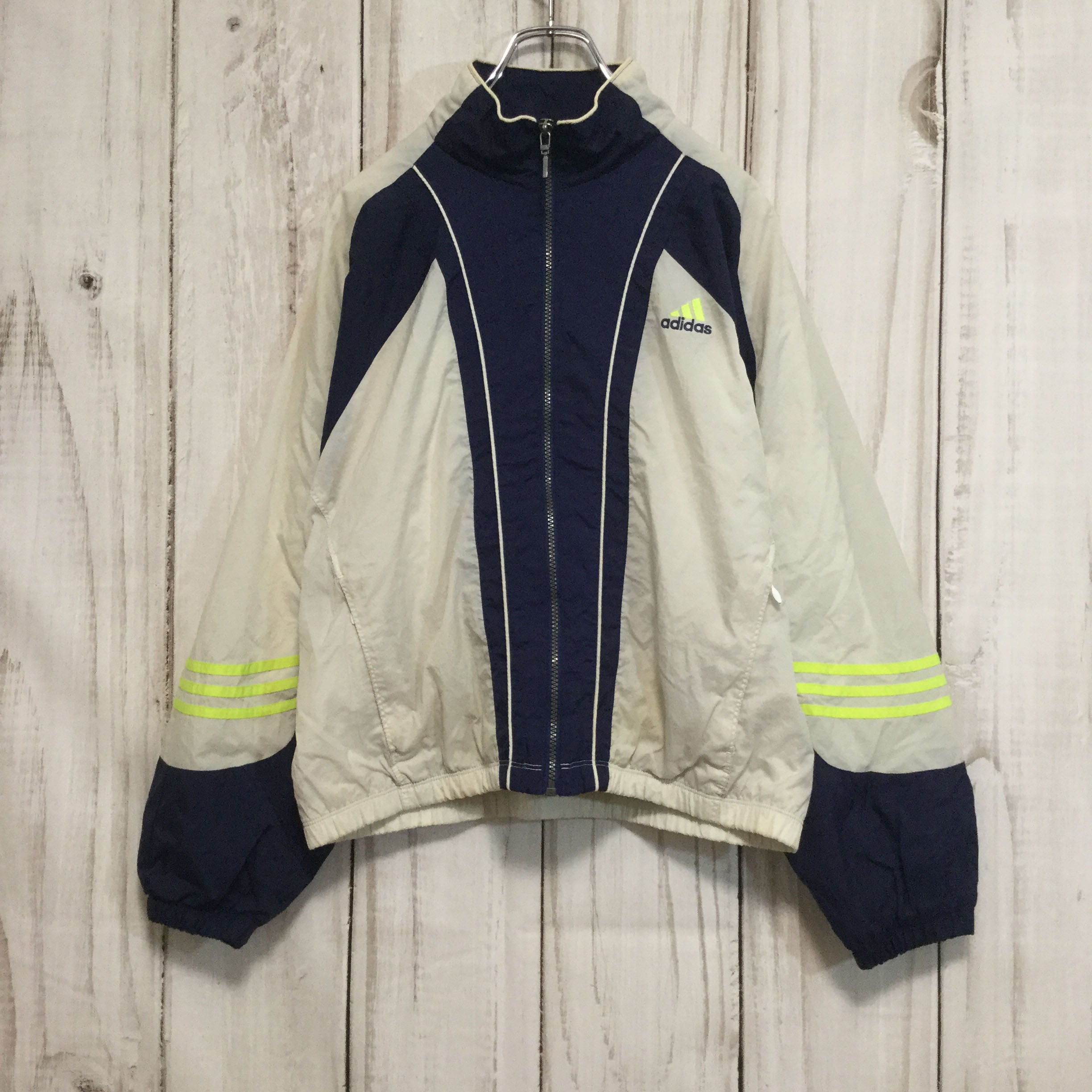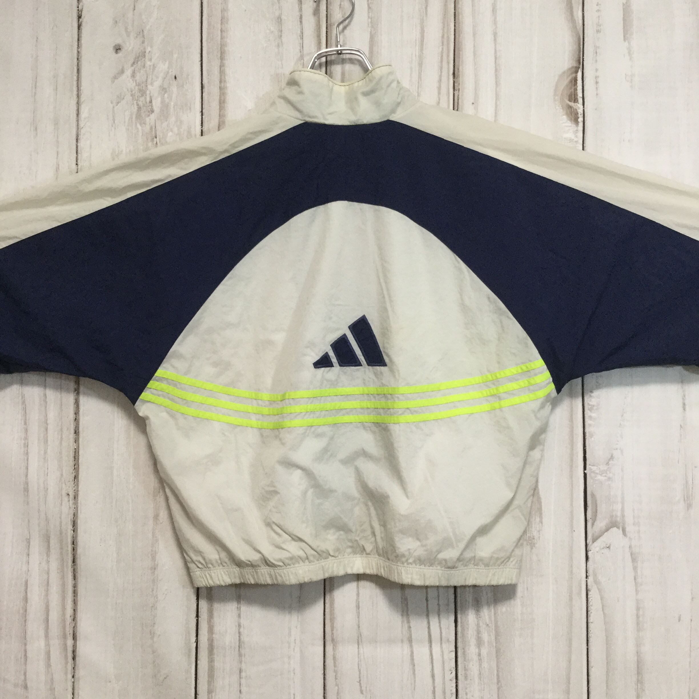 【アディダス ナイロンジャケット】90s ロゴ刺繍 背面ビッグロゴ M 白 adidas 古着 [240104-019]