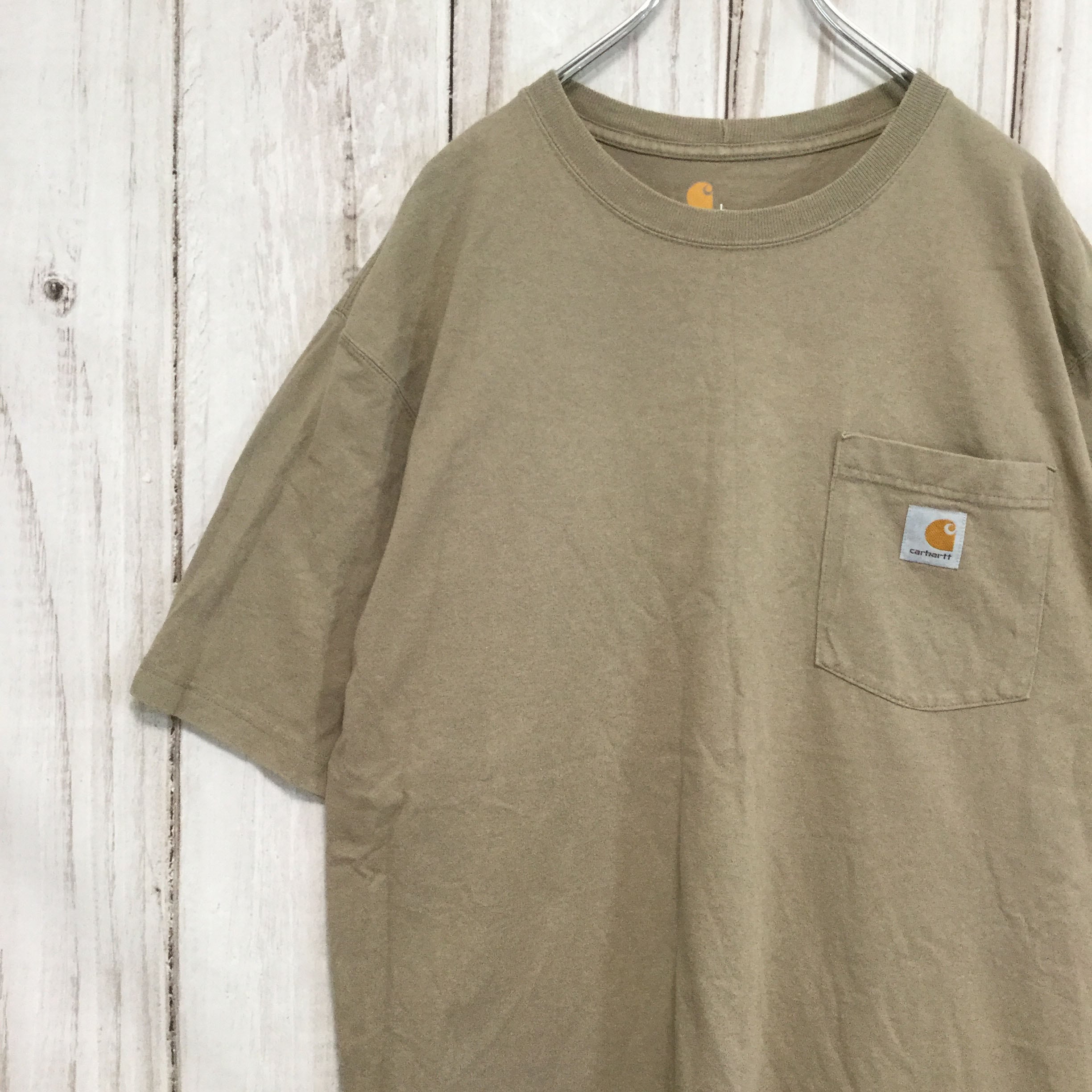 【カーハート 半袖Tシャツ】ロゴワッペン XL相当 ベージュ Carhartt 古着 [240211-024]