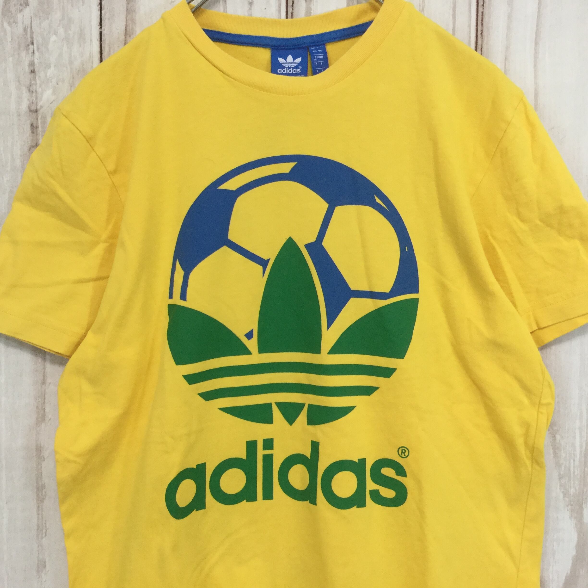 【アディダス 半袖ビッグロゴTシャツ】トレフォイル M 黄 adidas 古着 [240613-018]