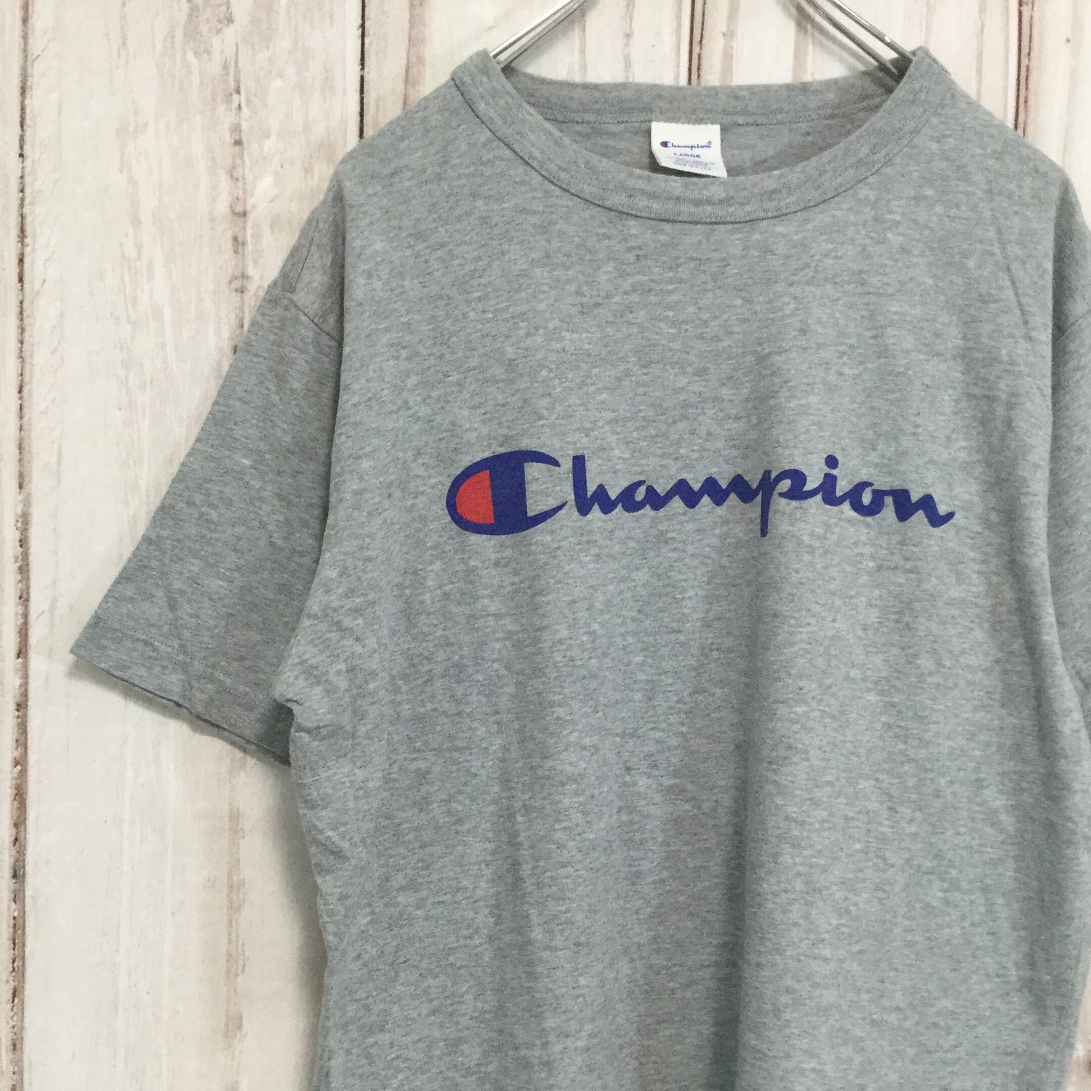 【チャンピオン 半袖ビッグロゴTシャツ】袖Cロゴ L グレー Champion 古着 [240613-026]