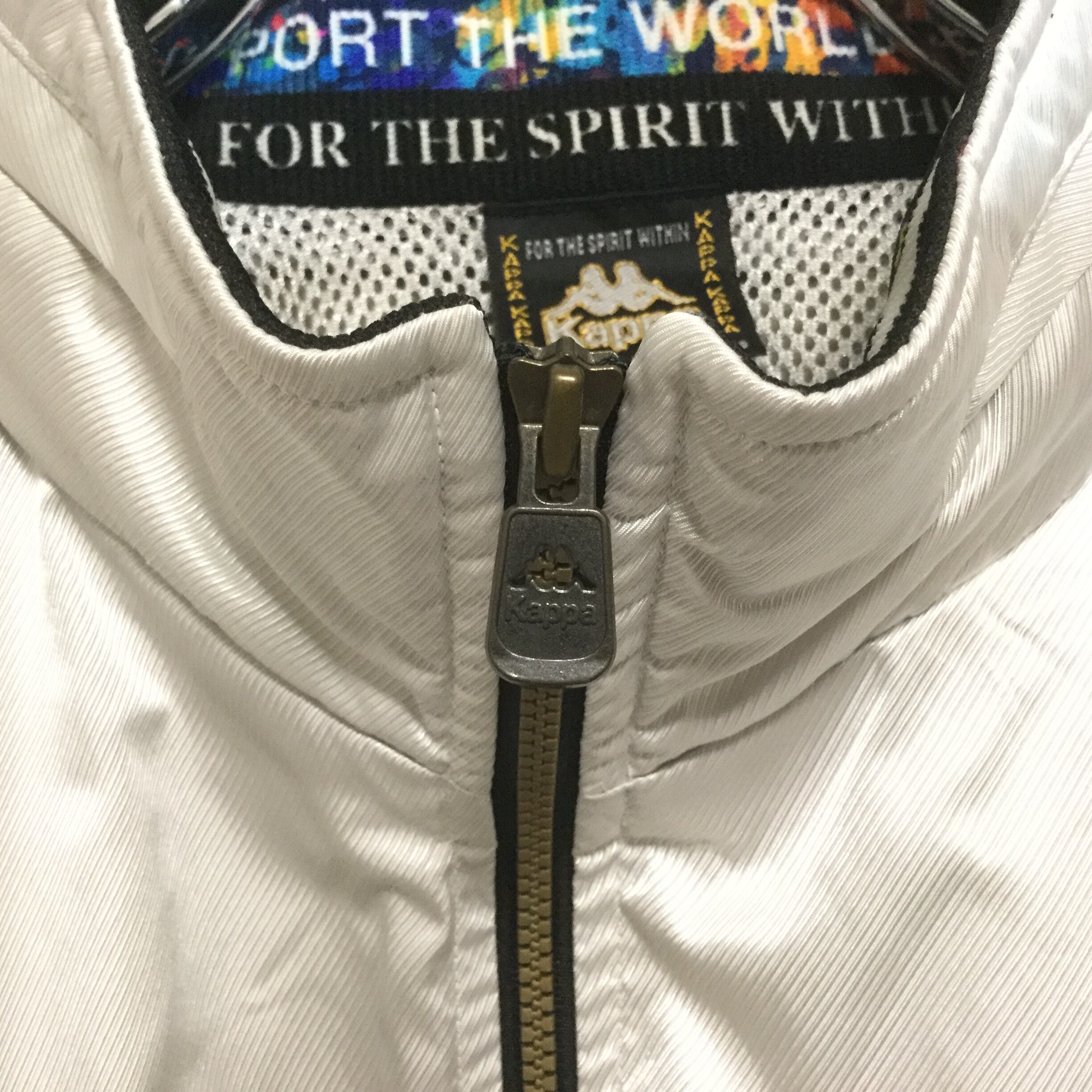 【カッパ 90s ポリジャケット】刺繍ロゴ 太アーム ビッグサイズ ロゴチャーム ヴィンテージ ビンテージ 2XL相当 白 Kappa 古着
