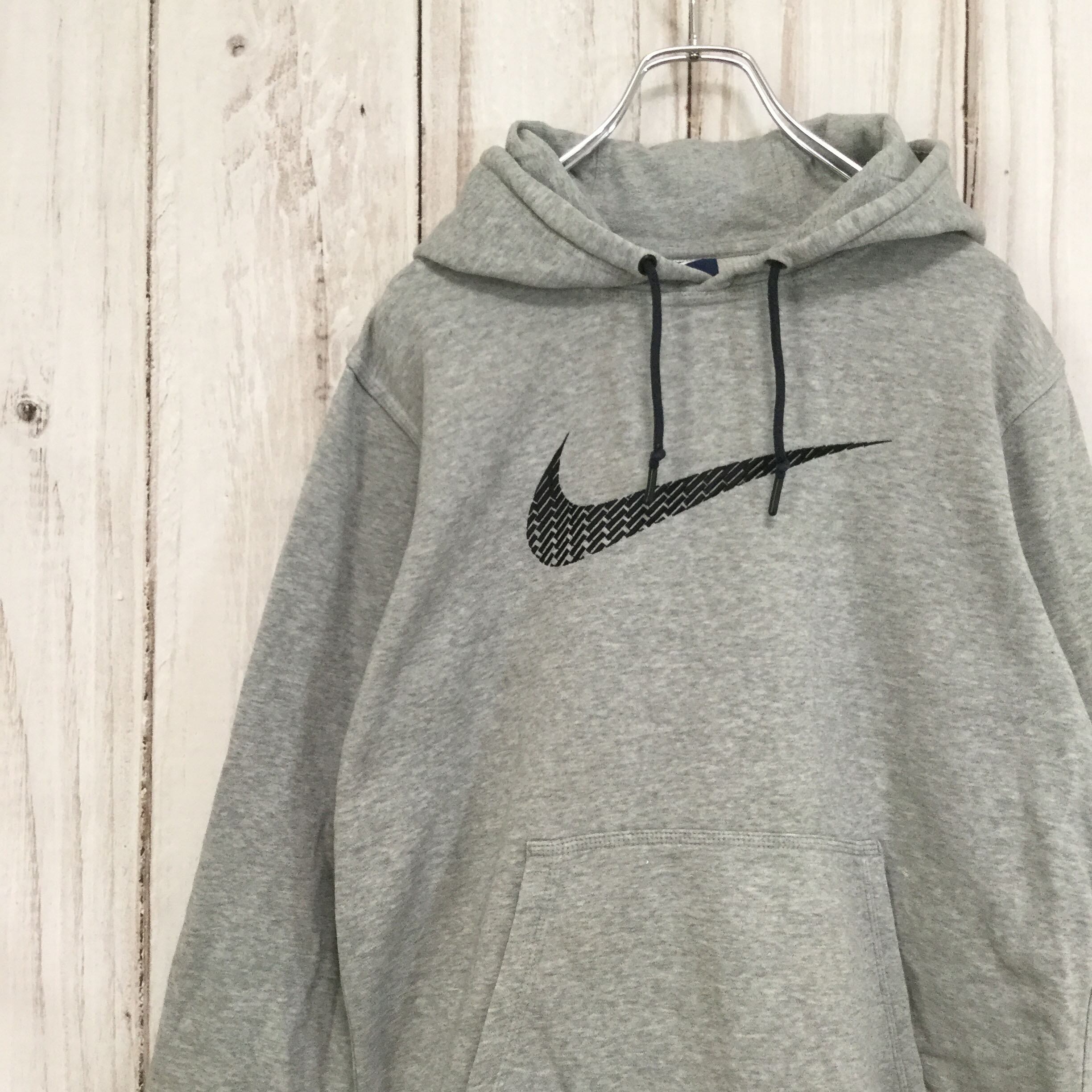 【ナイキ スウッシュロゴパーカー】 ビッグロゴ 青タグ スウェット プルオーパー M グレー NIKE 古着 [240104-006]