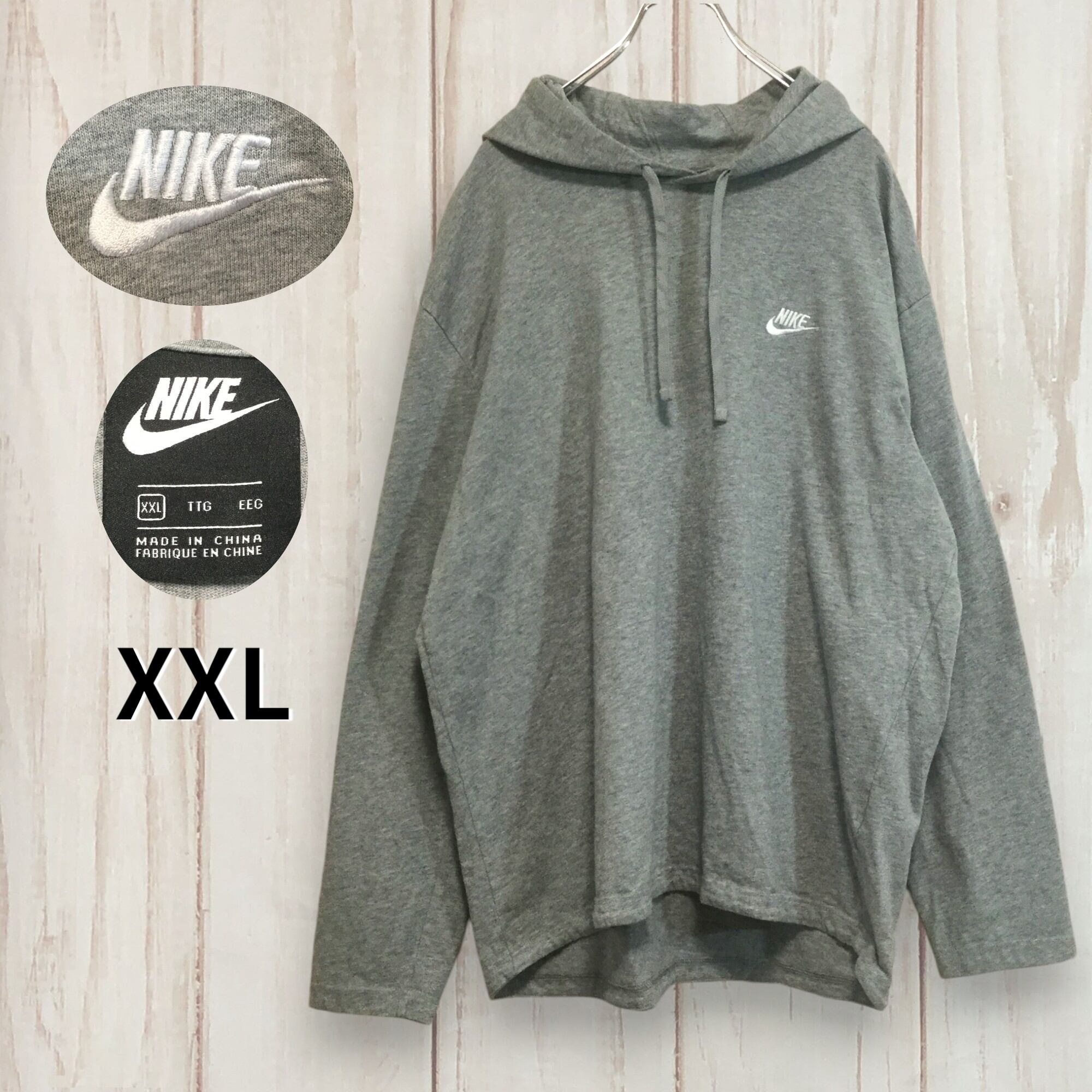 【ナイキ 長袖フード付プルオーバー】ロゴ刺繍 超ビッグサイズ 2XL グレー NIKE 古着 [250113-008]